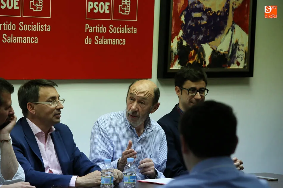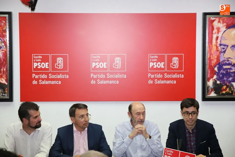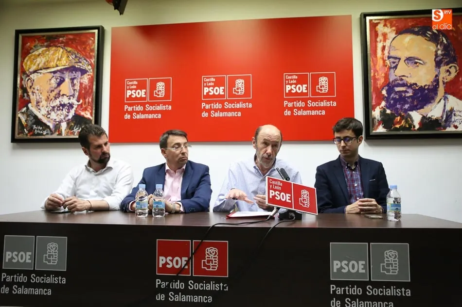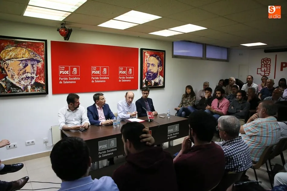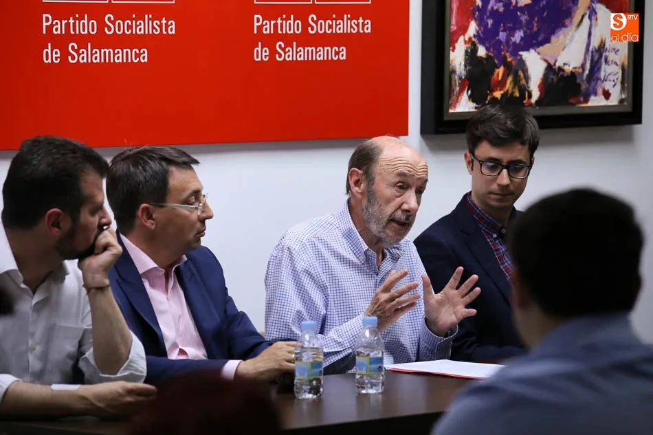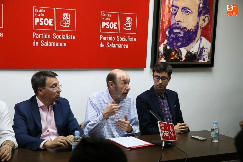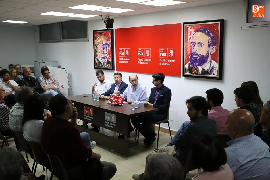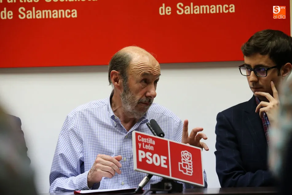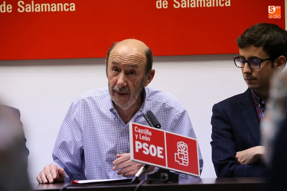 ?Lo que les debemos a la víctimas es la verdad, lo que no se podría tolerar es que después de haber perdido a los suyos encima tuvieron que soportar un relato que es falso, cuando ETA no tuvo otro remedio que dejarlo porque estaban derrotados?. Así lo ha subrayado Alfredo Pérez Rubalcaba, exvicepresidente del Gobierno, que este miércoles ha participado como ponente en la charla-coloquio sobre el final de ETA organizada por el PSOE de Salamanca y que ha contado con la presencia, entre otros, de Luis Tudanca, secretario del PSOE de Castilla y León, así como cargos públicos, afiliados y simpatizantes.