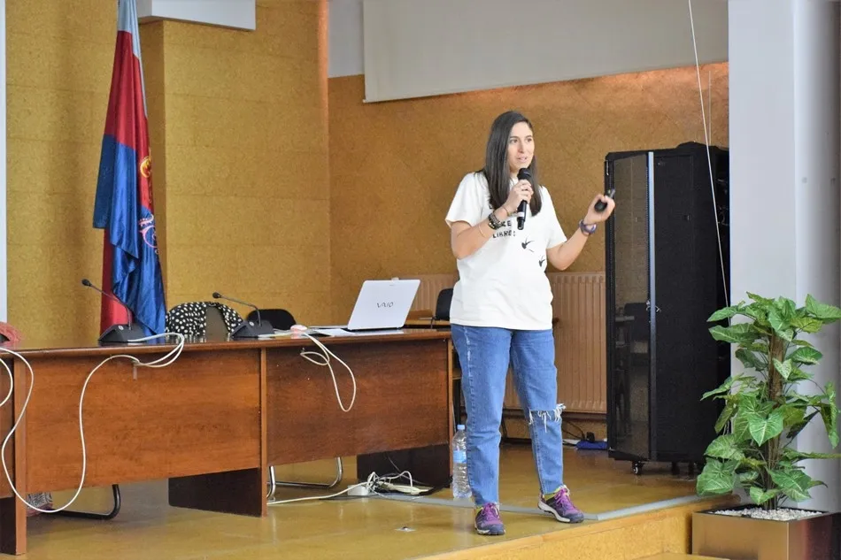 En su exposicion, seguida por numerosos alumnos de la Universidad de la Experiencia, estuvo acompañada por la periodista valenciana Lucía Hurtado, especialista en conflictos armados, paz y movimientos sociales.