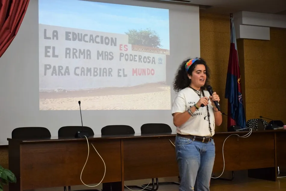 Sara Santos Álvarez impartió una conferencia este miércoles en el Salón de Actos de la Facultad de Educación. La alumna del último curso de Pedagogía de la Universidad de Salamanca explicó que estuvo viviendo en los campamentos de refugiados saharauis de Tindúnf (Argelia).