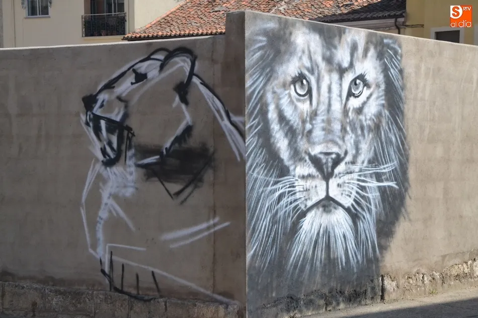 Sin que se sepa quién lo está haciendo, desde la semana pasada este muro está empezando a albergar grafitis muy cuidados de temática felina. Por un lado, en la parte del muro que da a la calle Caños ha sido dibujada una detallada cabeza de león, que ha sido completada en varios días. Por otro lado, en la parte del muro que da a la calle San Fernando se ha empezado a dibujar lo que parece una pantera.