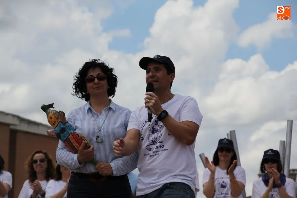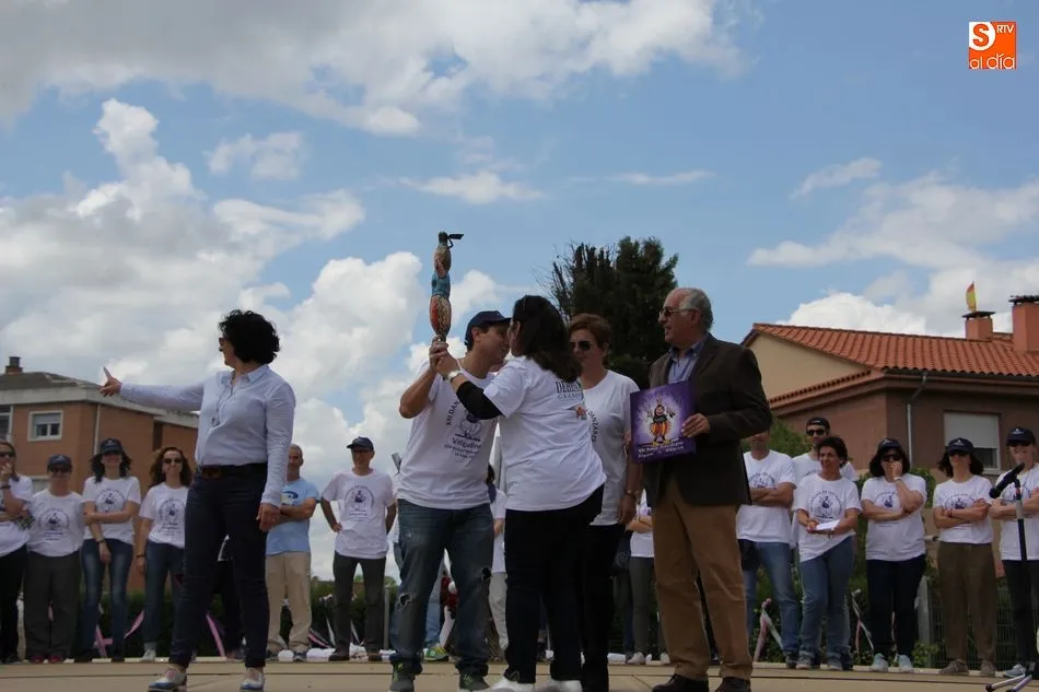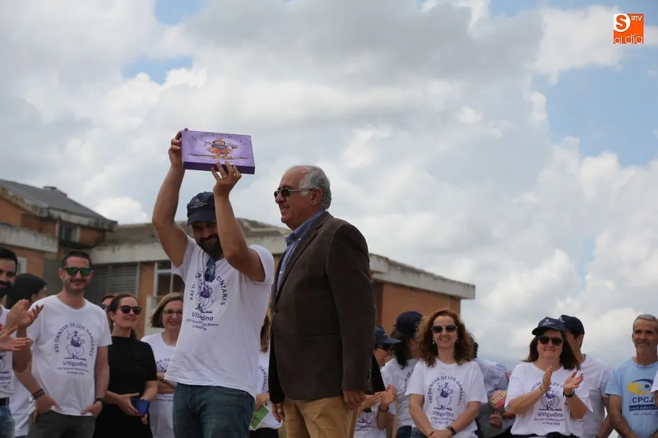 La intervención de Manoli se repetía al final de la mañana para despedir a escolares y profesores y anunciar la entrega del relevo a la ciudad de Peñaranda, que albergará el Danzar de los Danzares en 2019. También tuvo un emotivo recuerdo hacia Antonio Rodríguez, quien fuera profesor de música en el colegio hace dos años, y que ha fallecido recientemente.