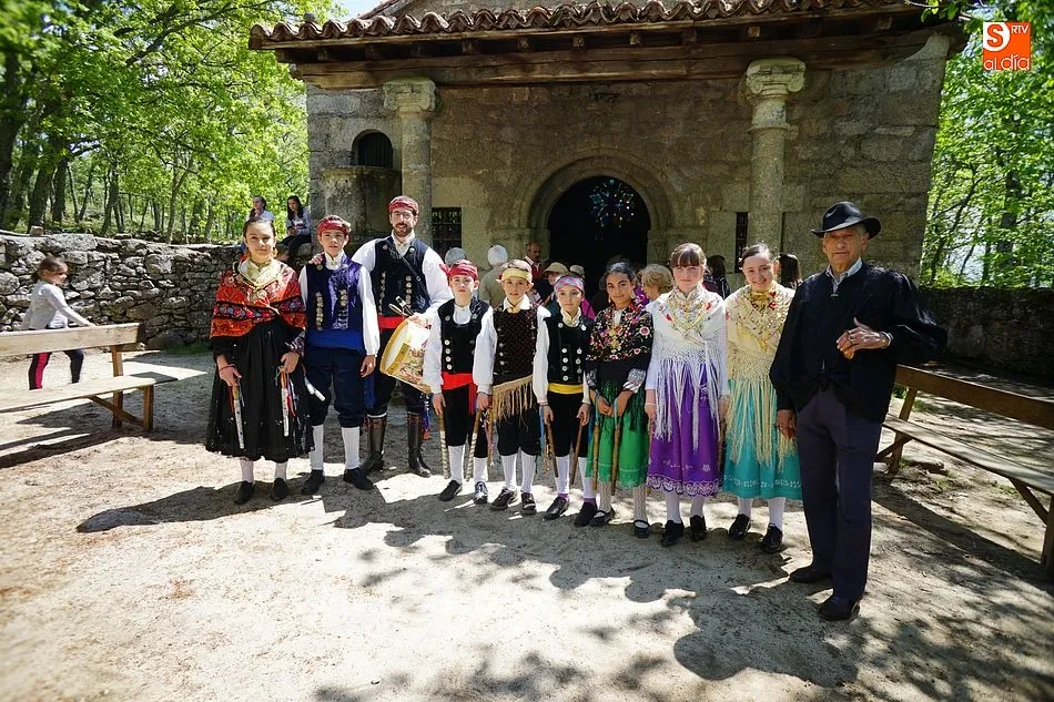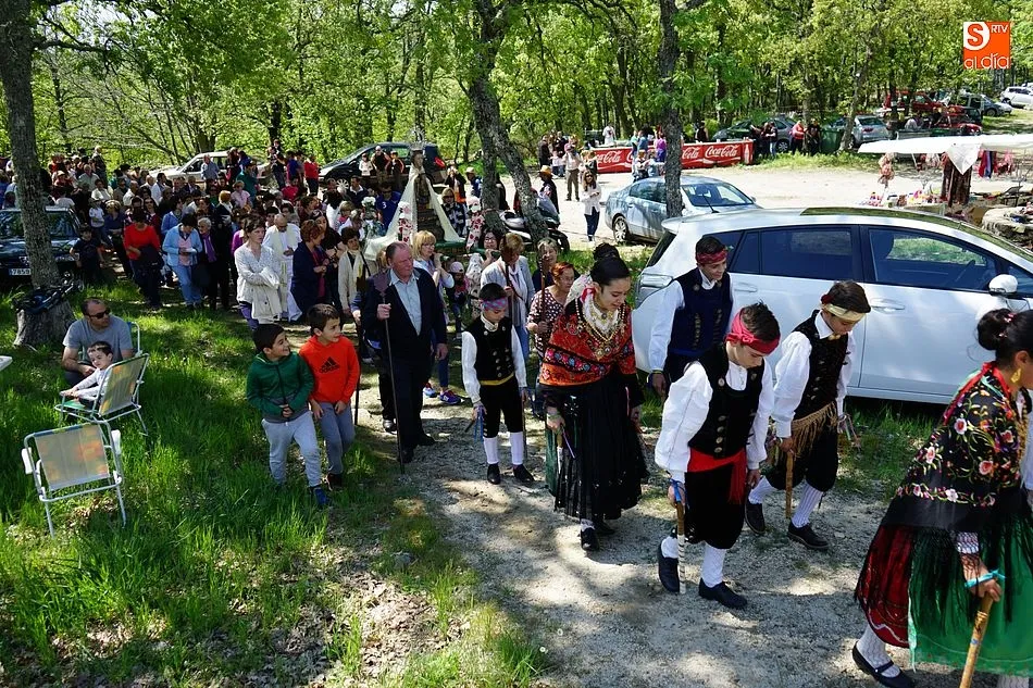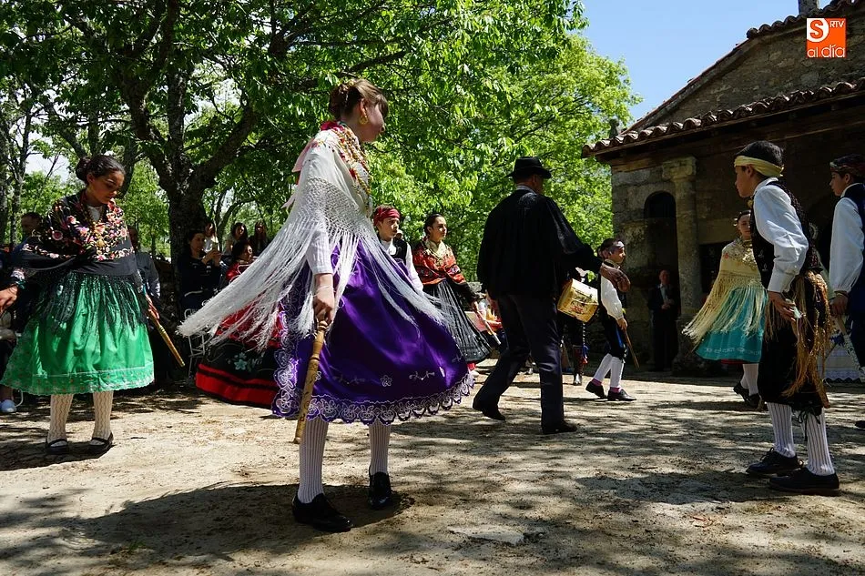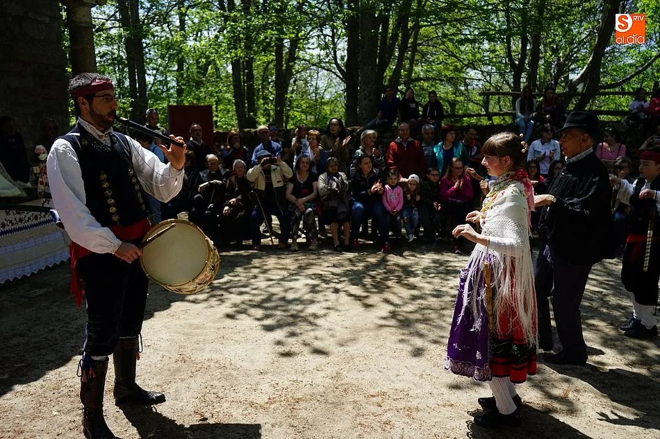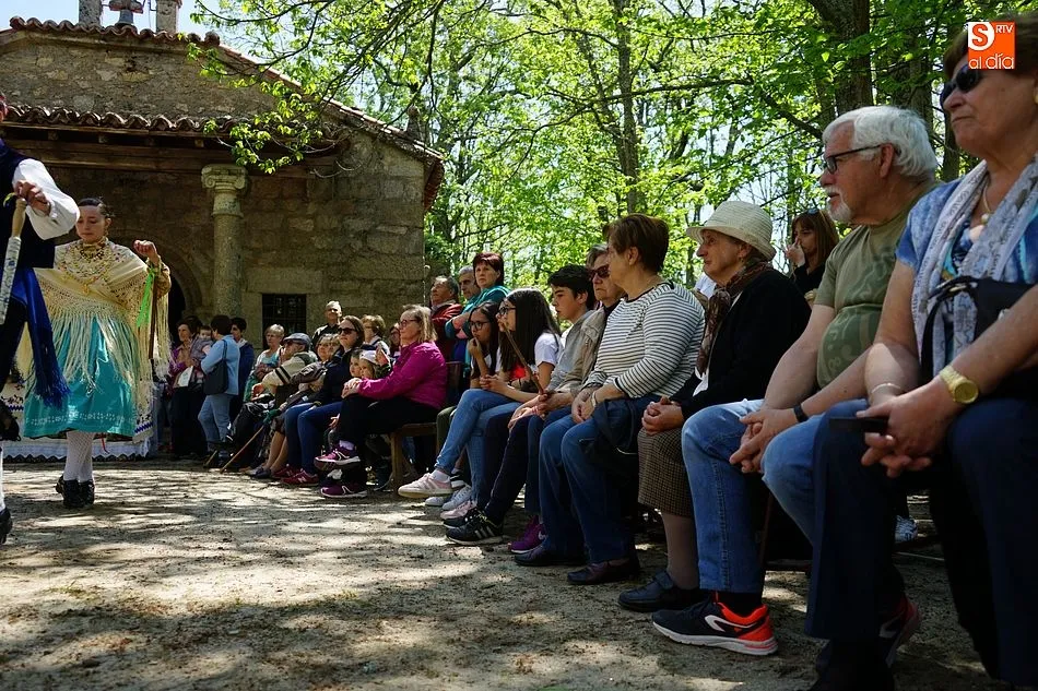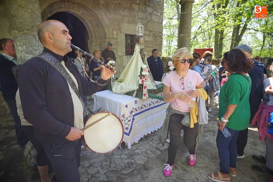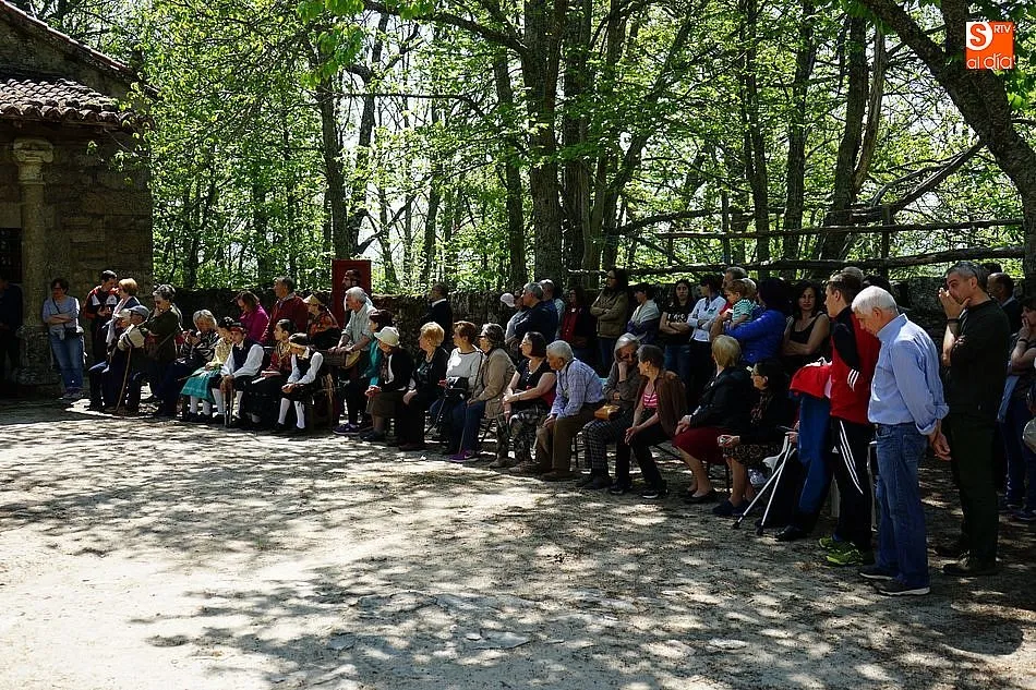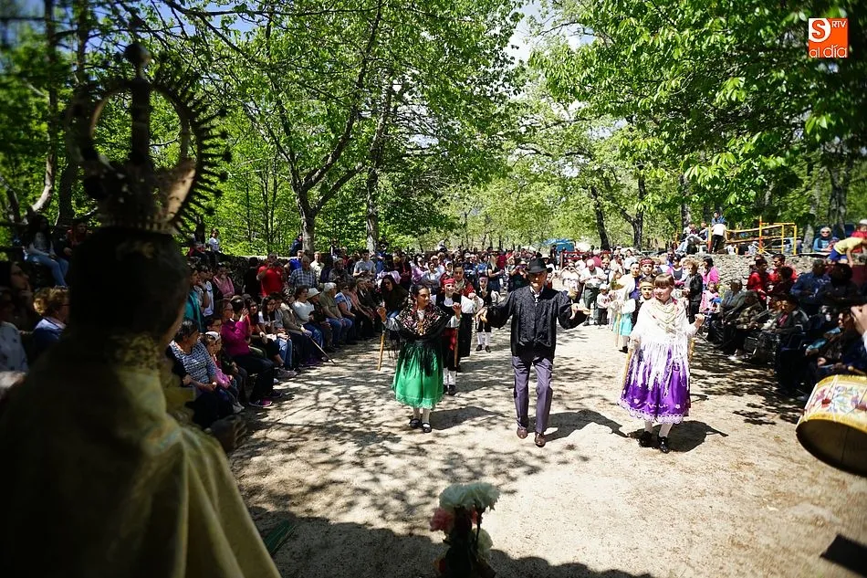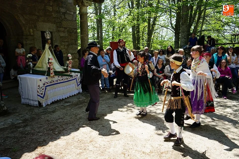 Una vez en el templo, se ofició la misa en la puerta, ya que las dimensiones de la ermita hacen imposible la asistencia de las cientos de personas que se dan cita cada año en el lugar. Público que hizo fila a continuación para el Ofertorio y posterior procesión por las cercanías. La música y los bailes tradicionales, protagonizados por los más pequeños del grupo folclórico local, llegaron tras la breve procesión. Al son de la gaita y el tamboril, los jóvenes bailarines ofrecieron sus mejores pasos ante la Virgen y un aplaudido paleo serrano.