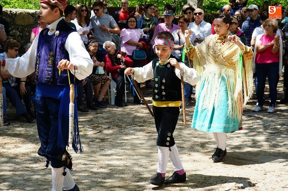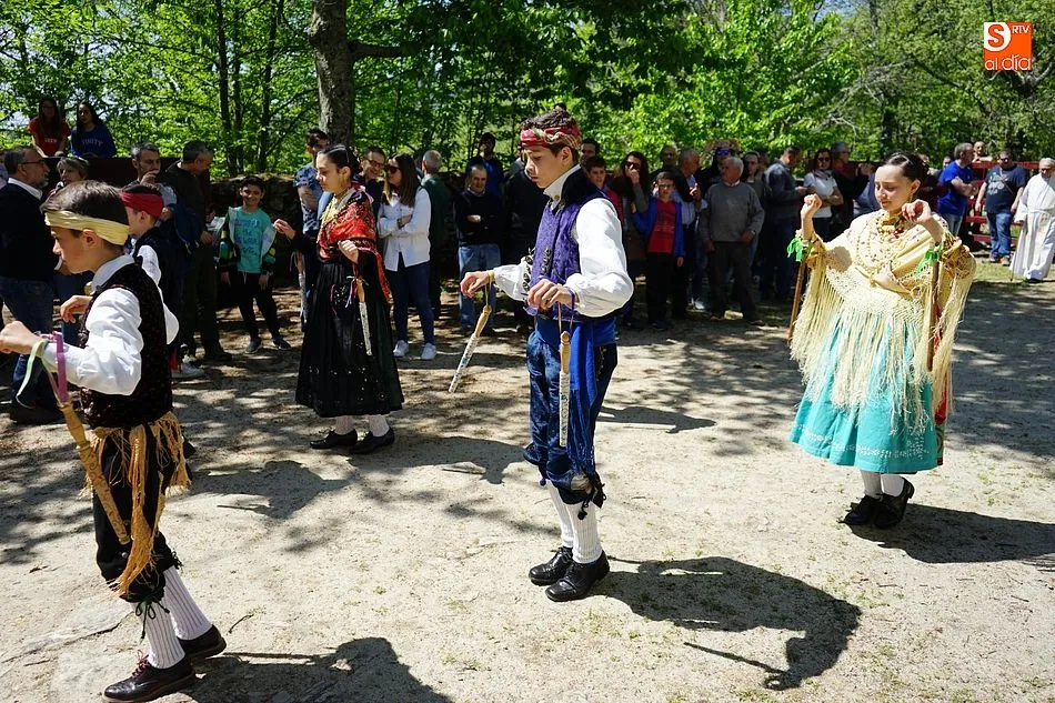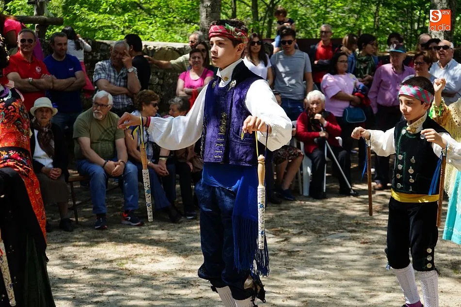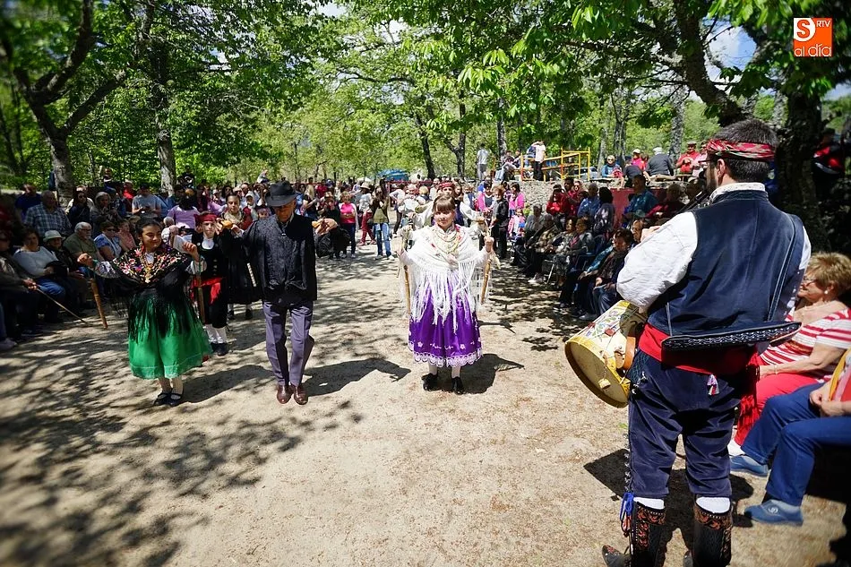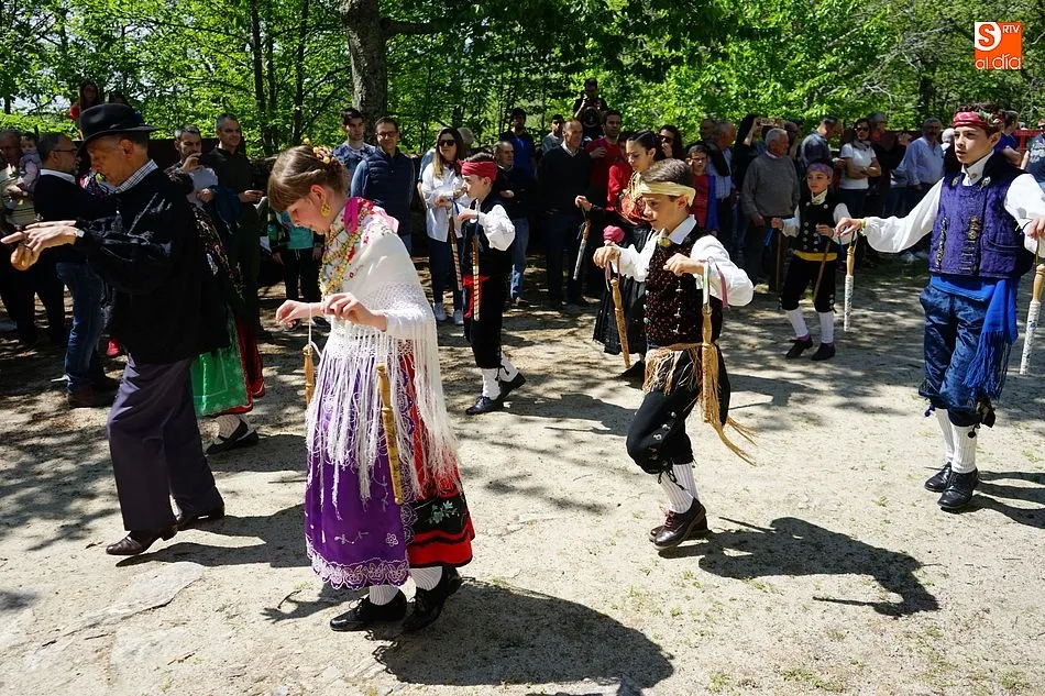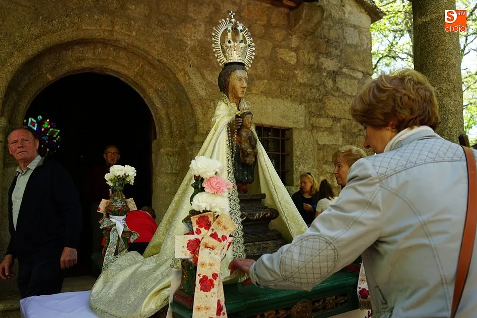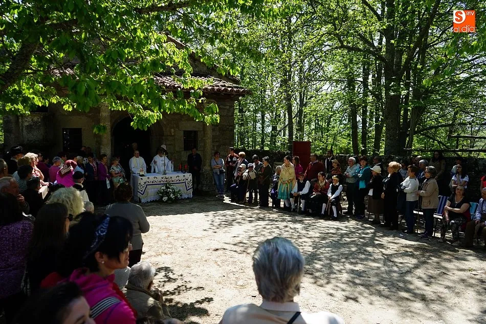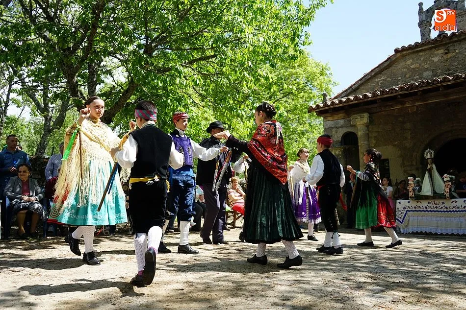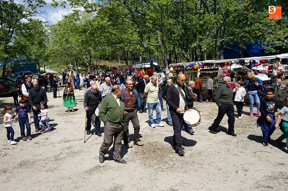 Una vez en el templo, se ofició la misa en la puerta, ya que las dimensiones de la ermita hacen imposible la asistencia de las cientos de personas que se dan cita cada año en el lugar. Público que hizo fila a continuación para el Ofertorio y posterior procesión por las cercanías. La música y los bailes tradicionales, protagonizados por los más pequeños del grupo folclórico local, llegaron tras la breve procesión. Al son de la gaita y el tamboril, los jóvenes bailarines ofrecieron sus mejores pasos ante la Virgen y un aplaudido paleo serrano.