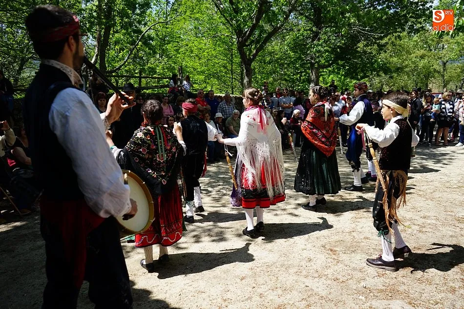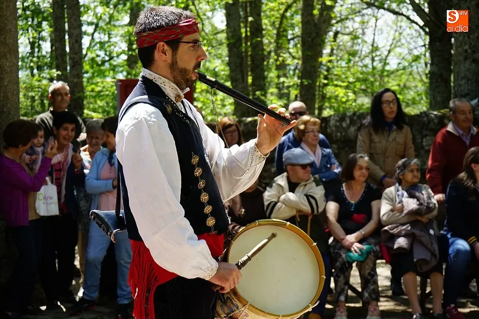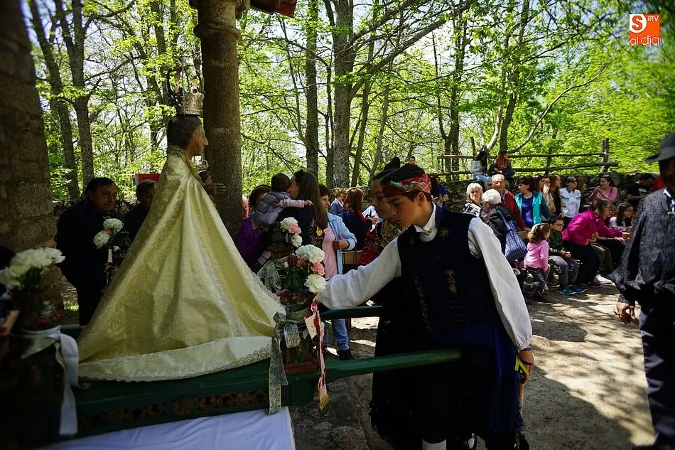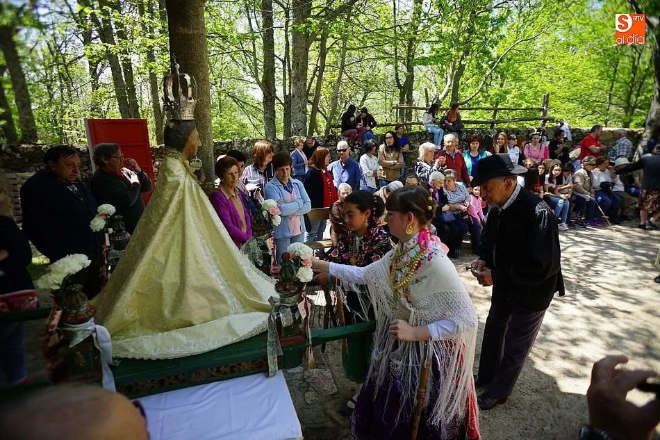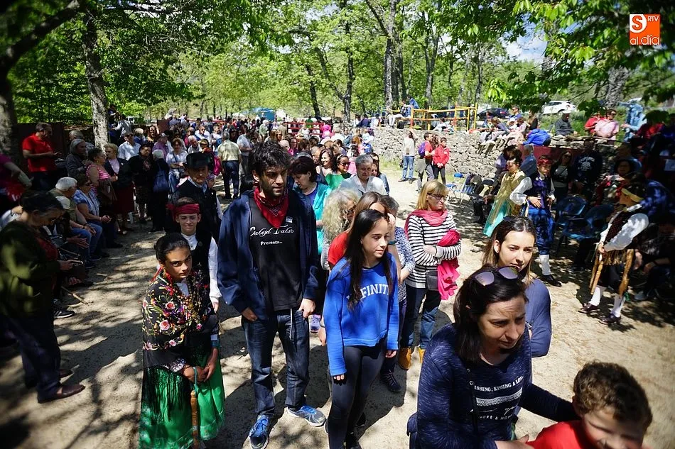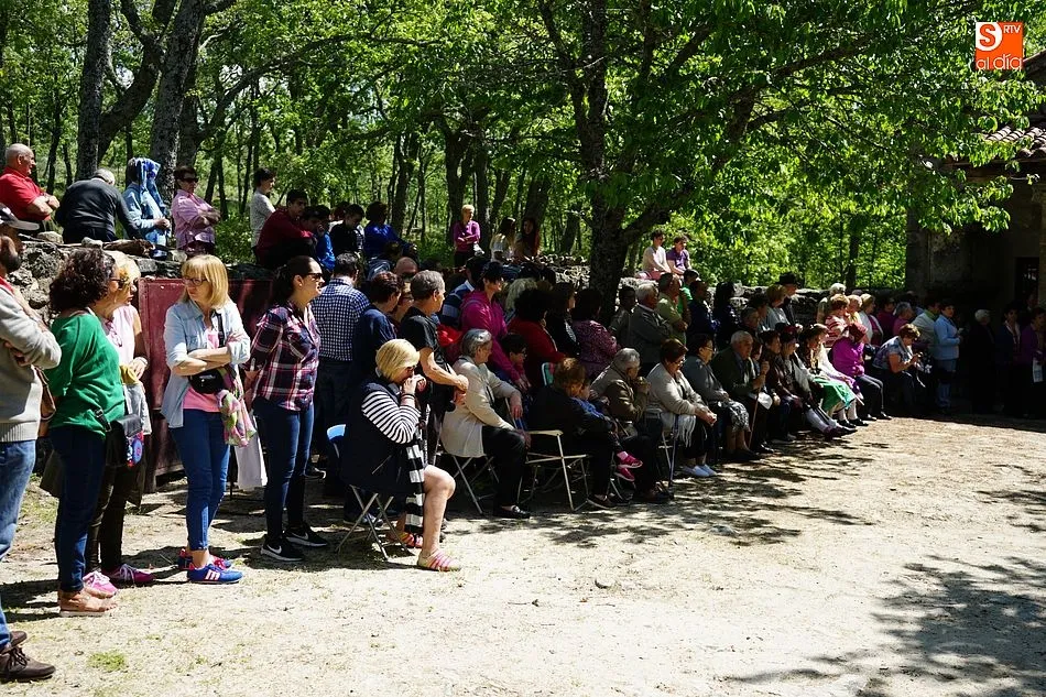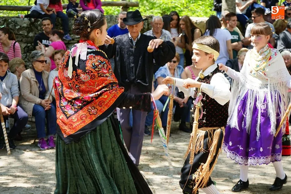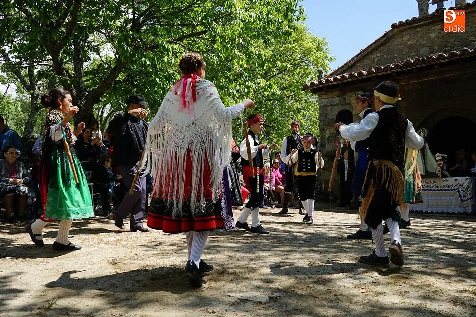 Una vez en el templo, se ofició la misa en la puerta, ya que las dimensiones de la ermita hacen imposible la asistencia de las cientos de personas que se dan cita cada año en el lugar. Público que hizo fila a continuación para el Ofertorio y posterior procesión por las cercanías. La música y los bailes tradicionales, protagonizados por los más pequeños del grupo folclórico local, llegaron tras la breve procesión. Al son de la gaita y el tamboril, los jóvenes bailarines ofrecieron sus mejores pasos ante la Virgen y un aplaudido paleo serrano.