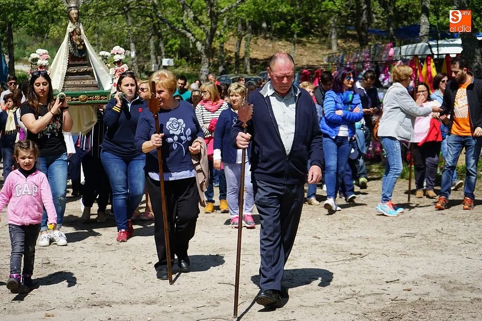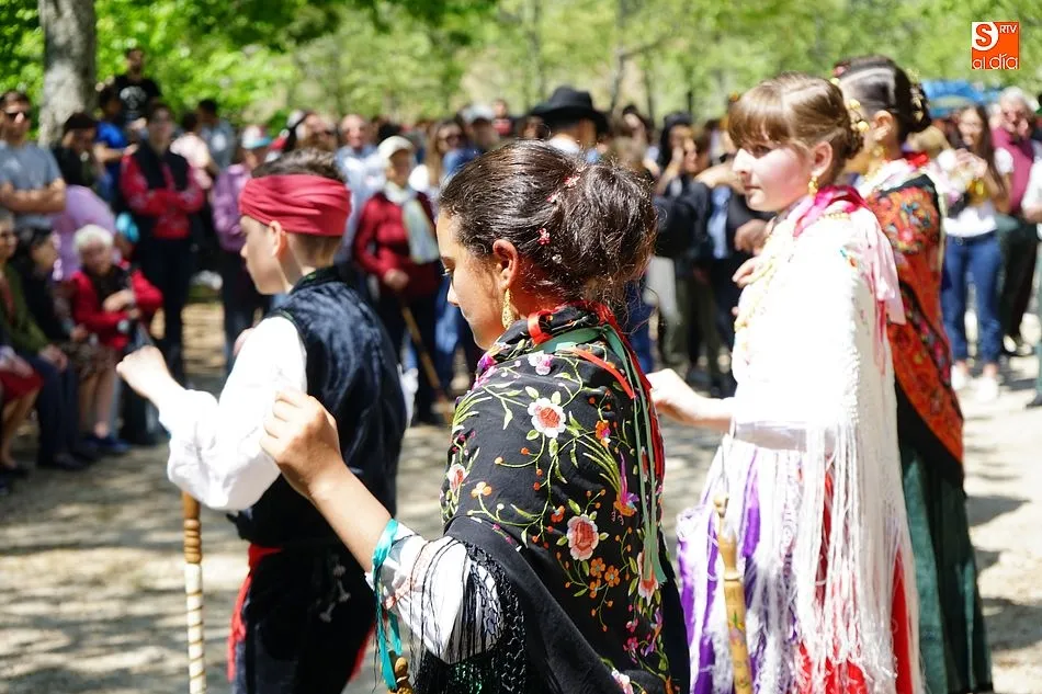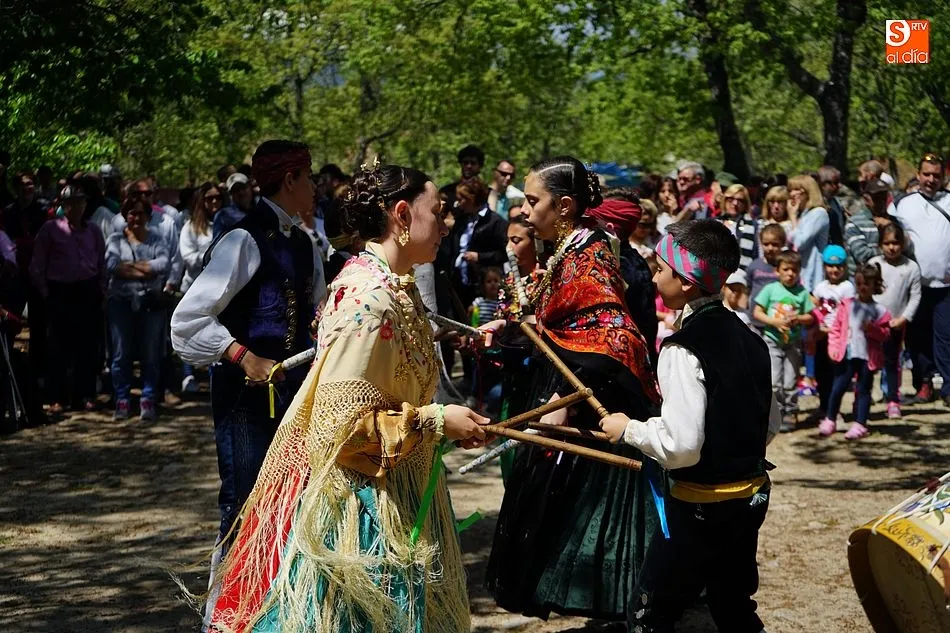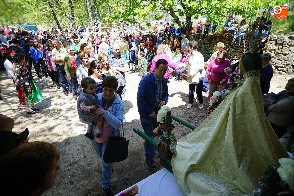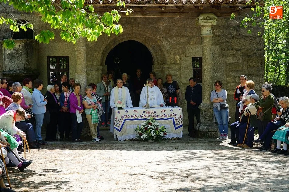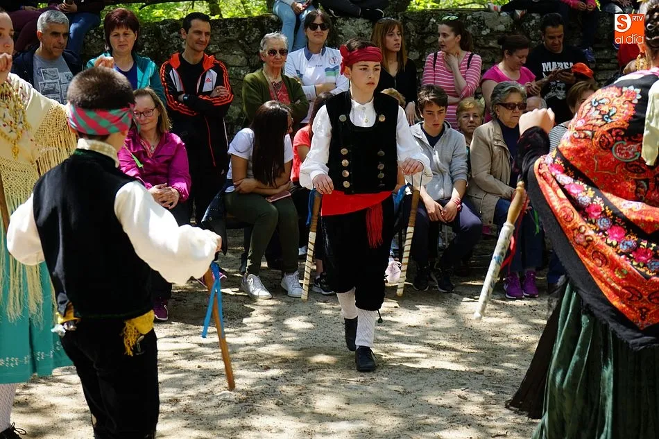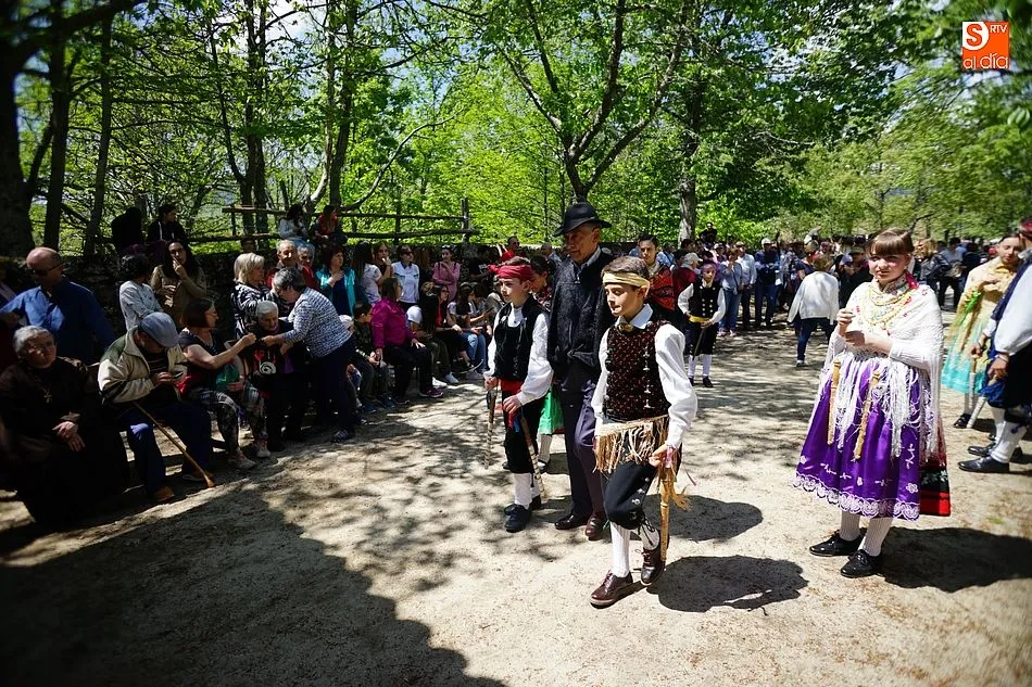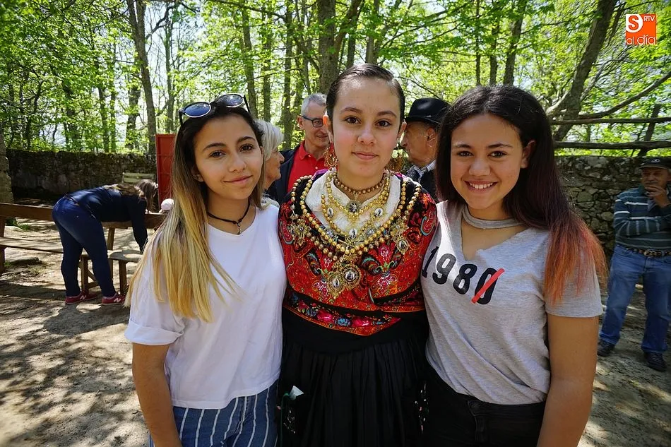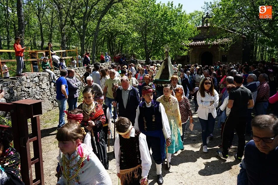 Una vez en el templo, se ofició la misa en la puerta, ya que las dimensiones de la ermita hacen imposible la asistencia de las cientos de personas que se dan cita cada año en el lugar. Público que hizo fila a continuación para el Ofertorio y posterior procesión por las cercanías. La música y los bailes tradicionales, protagonizados por los más pequeños del grupo folclórico local, llegaron tras la breve procesión. Al son de la gaita y el tamboril, los jóvenes bailarines ofrecieron sus mejores pasos ante la Virgen y un aplaudido paleo serrano.