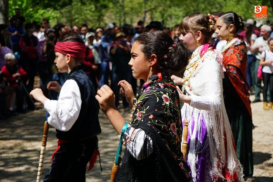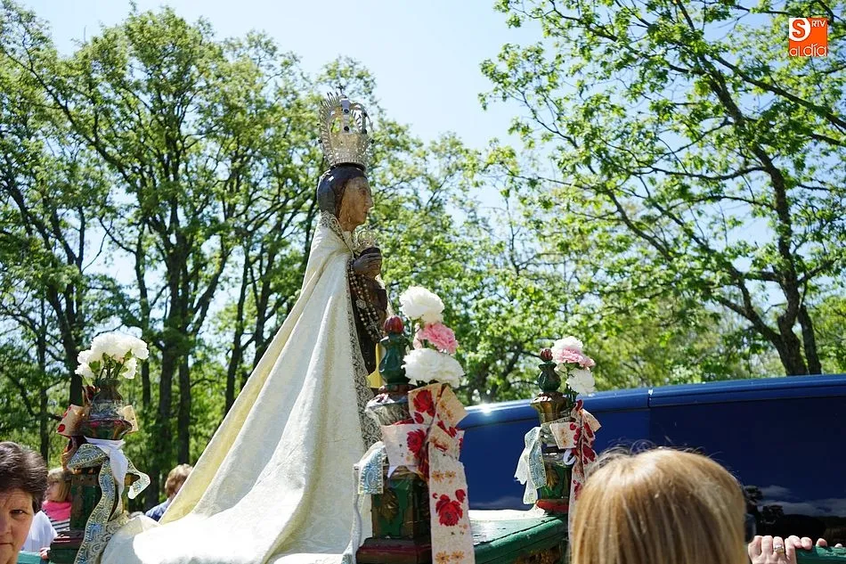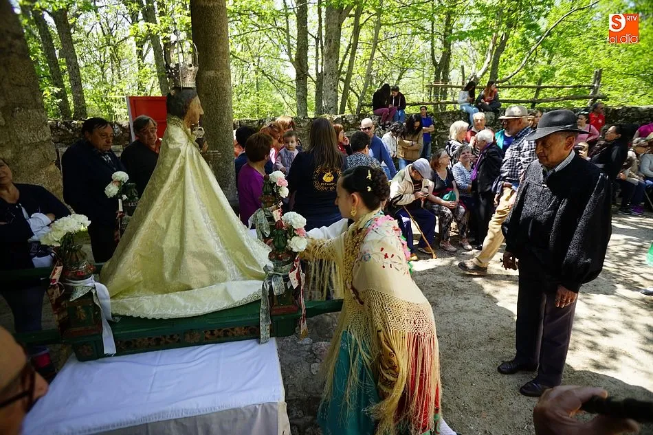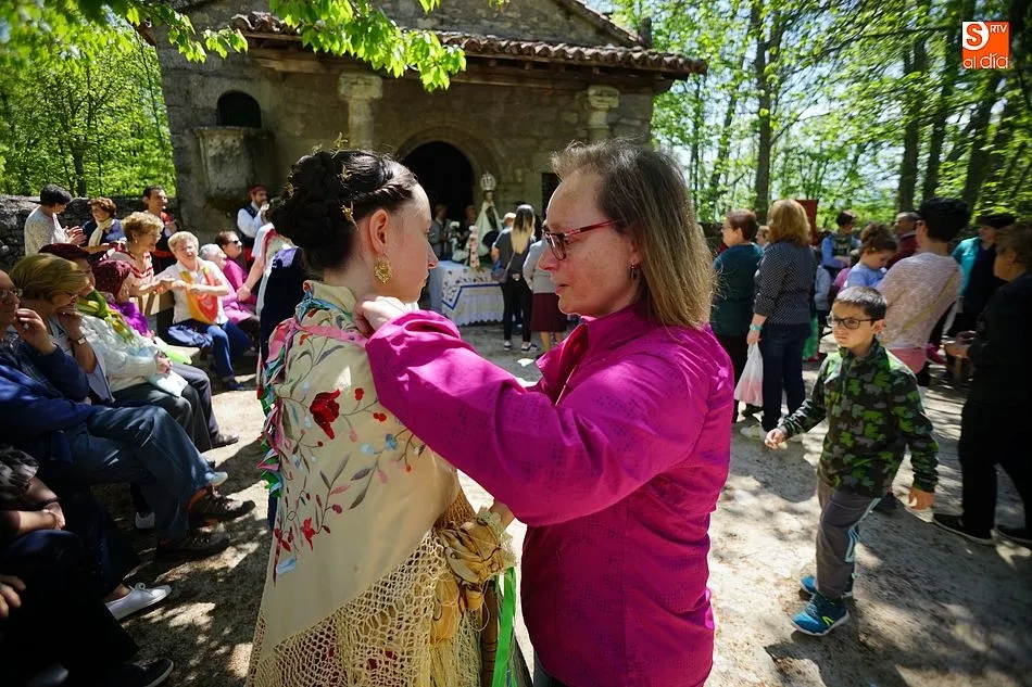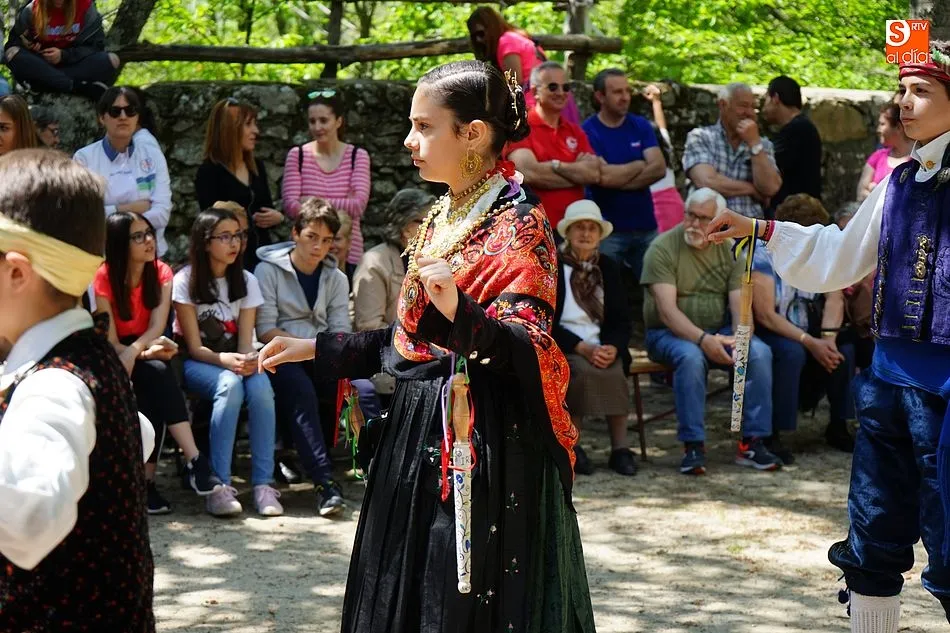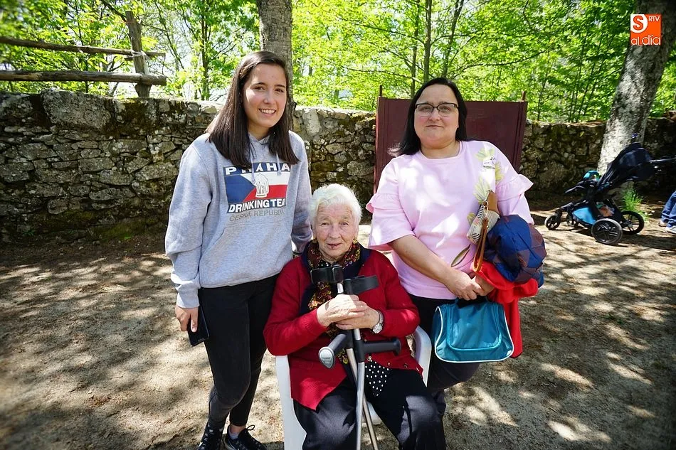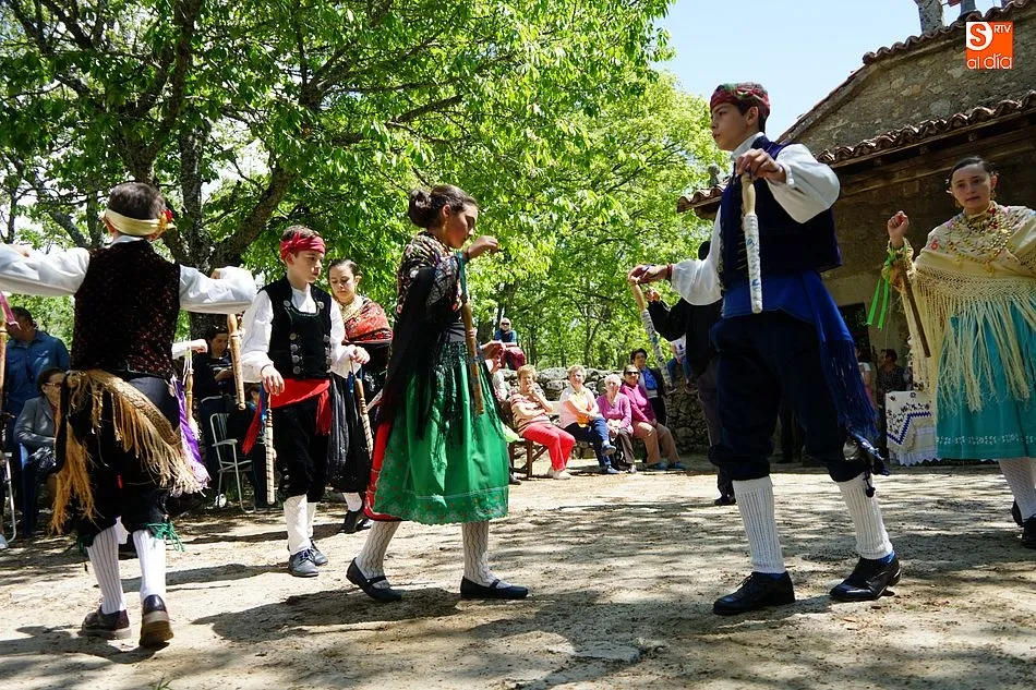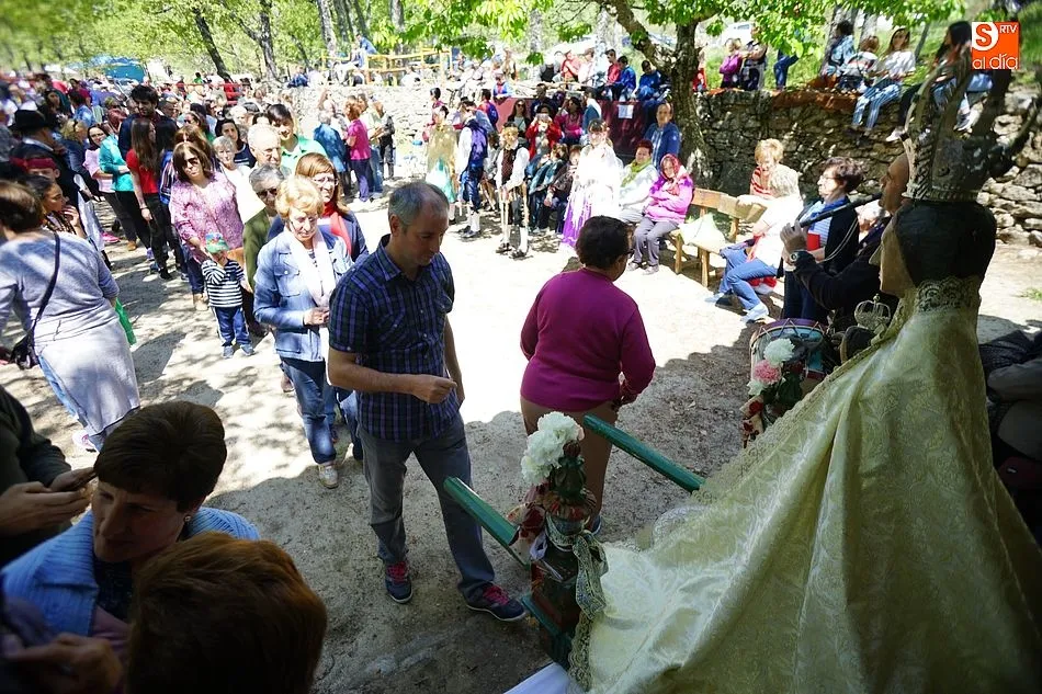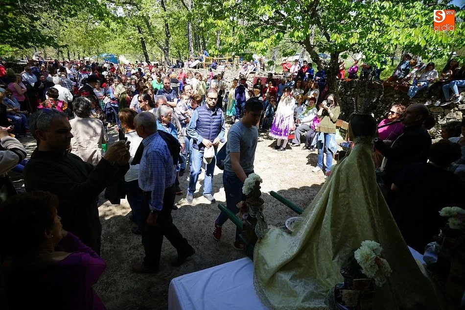 Una vez en el templo, se ofició la misa en la puerta, ya que las dimensiones de la ermita hacen imposible la asistencia de las cientos de personas que se dan cita cada año en el lugar. Público que hizo fila a continuación para el Ofertorio y posterior procesión por las cercanías. La música y los bailes tradicionales, protagonizados por los más pequeños del grupo folclórico local, llegaron tras la breve procesión. Al son de la gaita y el tamboril, los jóvenes bailarines ofrecieron sus mejores pasos ante la Virgen y un aplaudido paleo serrano.