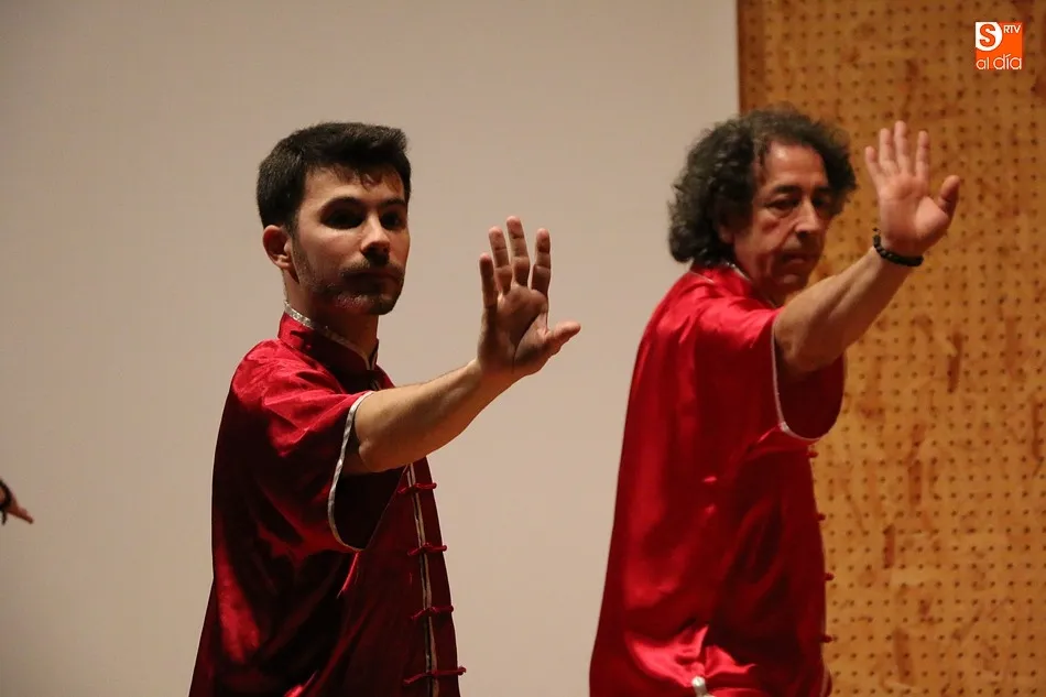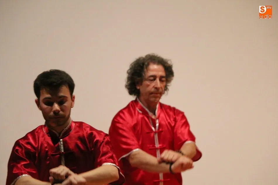 Tras unas palabras de agradecimiento del presidente de la Asociación Pyfano, organización a la que este evento ha dedicado varias ediciones, Luisra y Víctor pasaron a ocupar los primeros papeles sobre el escenario entre actuación y actuación de los alumnos de la escuela de taichí que promueve la Asociación Taiping.