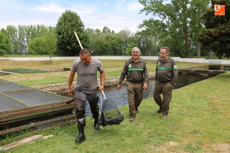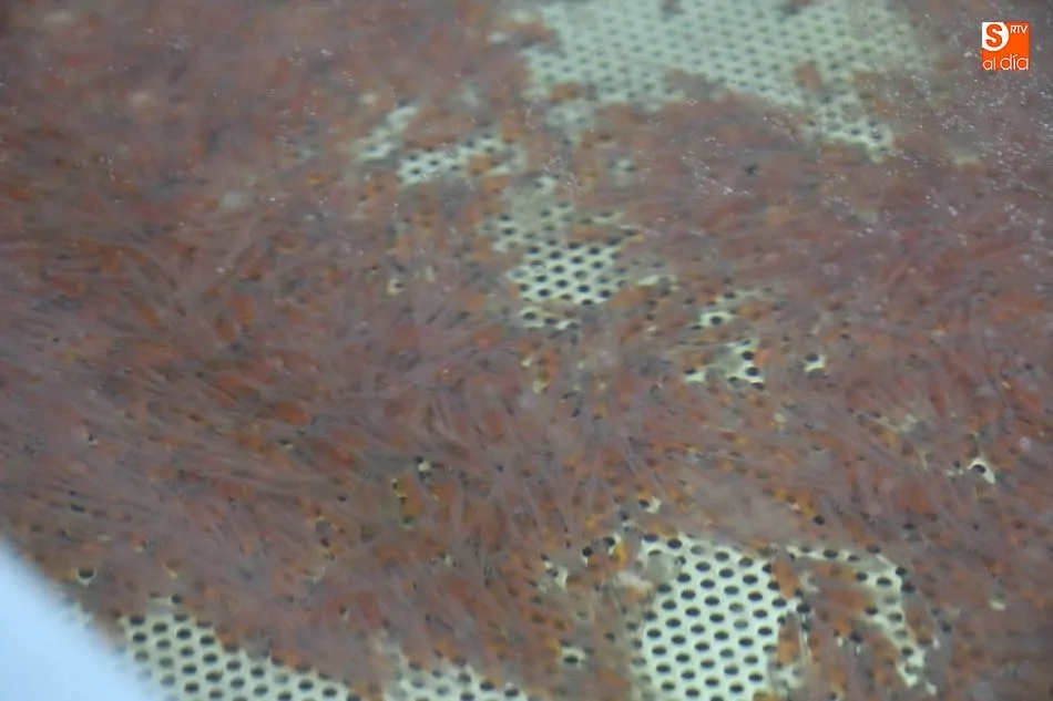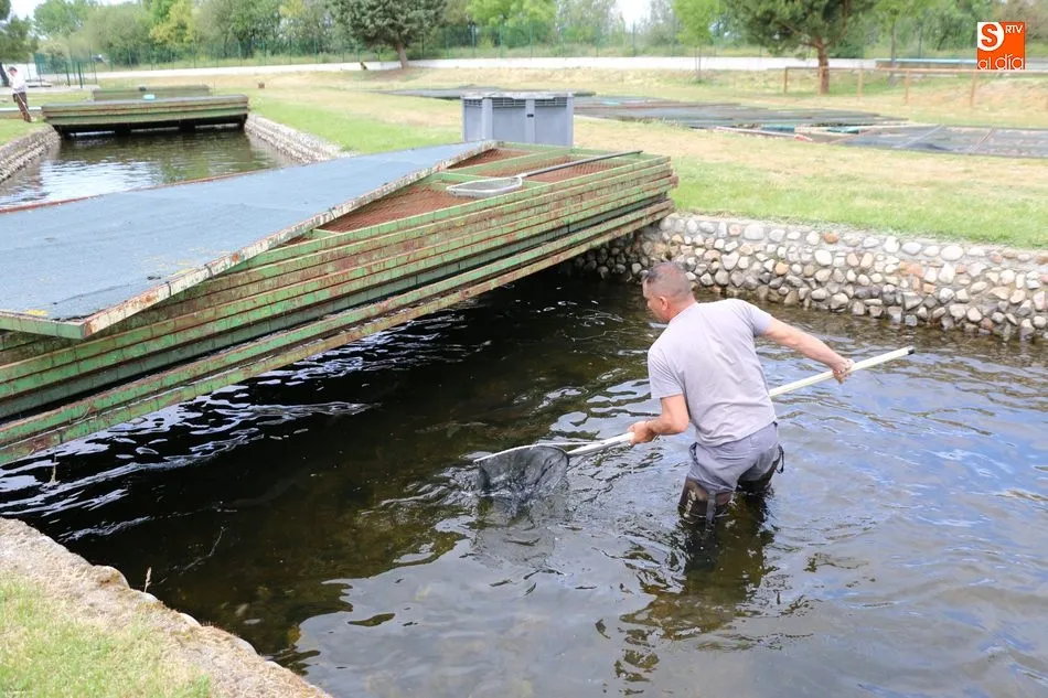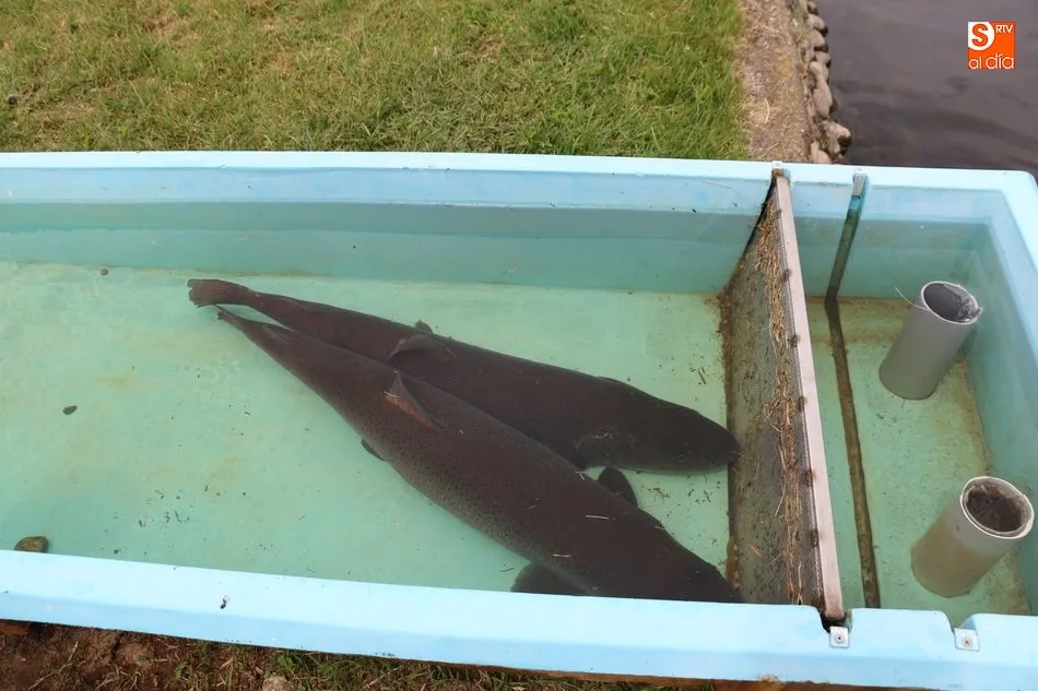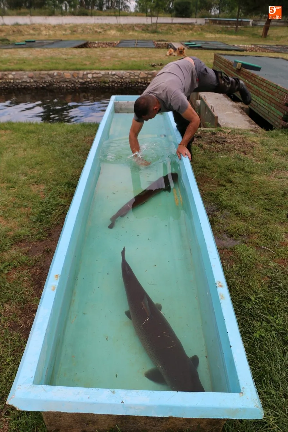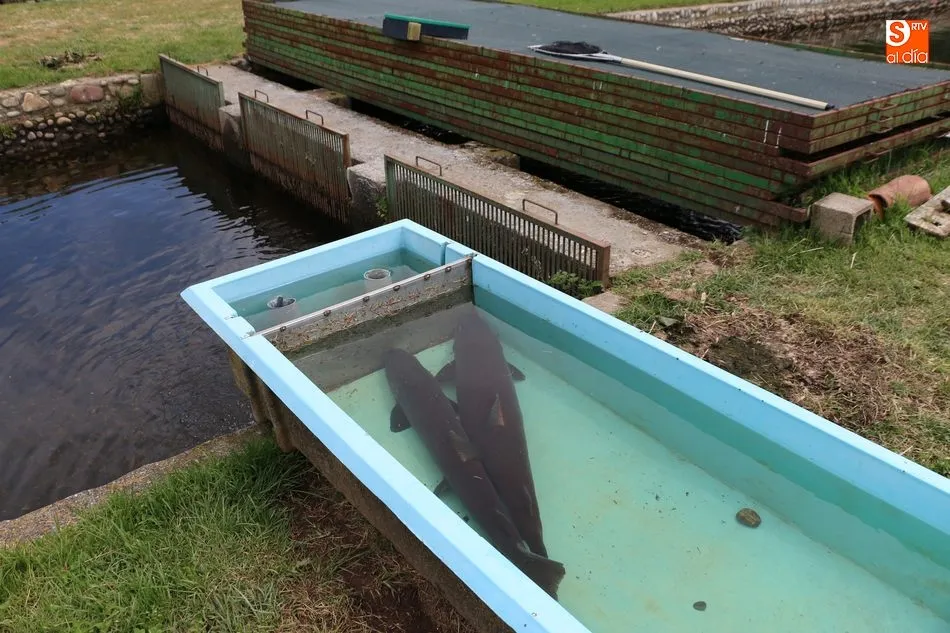 Como explicó a SALAMANCArtv AL DÍA Juan Carlos Velasco, en estas instalaciones se cría el hucho, pero también la boga del Duero, calandino, sarda, bermejuela, colmilleja y colmilleja del Alagón, y hasta este año trucha común, especie de la que solo puede verse una muestra. La suelta de huchos ronda los 1.100 ejemplares al año de más de 70 centímetros de longitud, ?pueden soltarse muchos más pero no del tamaño de pesca. Este año tenemos casi 10.000 para soltar, pero son de un año, de unos 25 centímetros?.
