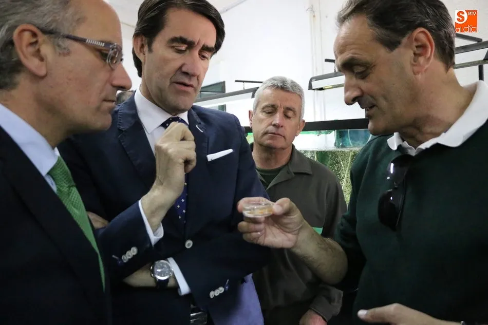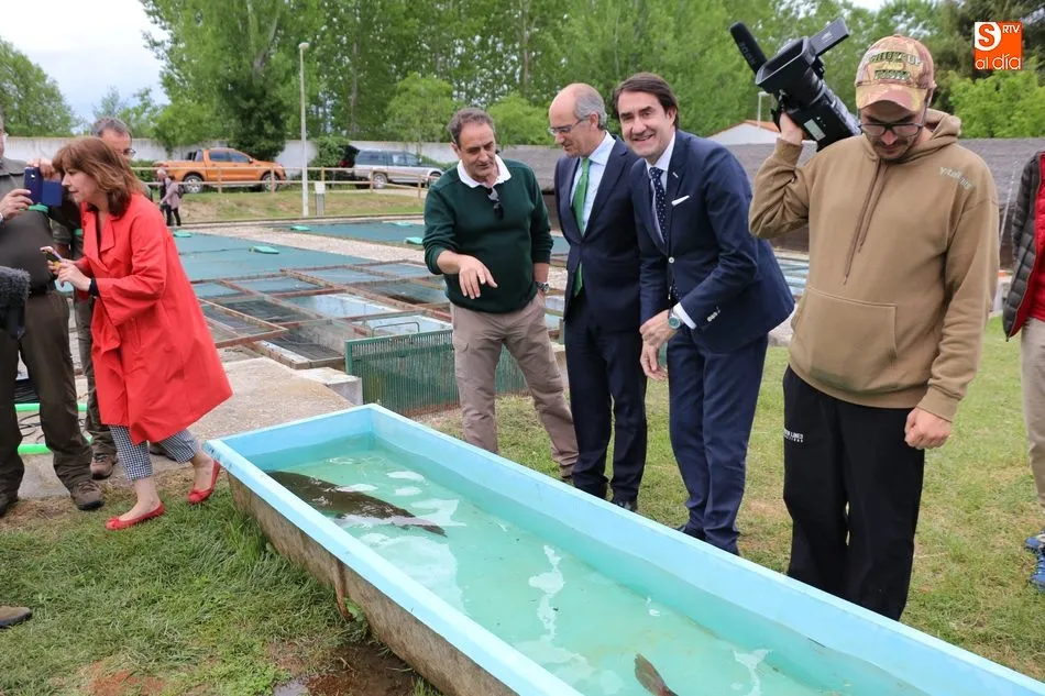 Por ello, el consejero de Fomento y Medio Ambiente, Juan Carlos Suárez-Quiñones, realizóaba este viernes una visita al Centro Ictiogénico de Galisancho, instalaciones en las que se cría en cautividad el hucho y que sirve de apoyo a su reproducción natural. En esta visita, Suárez-Quiñones se hizo acompañar del presidente de la Diputación de Salamanca, Javier Iglesias, ambos muy atentos a las explicaciones de Juan Carlos Velasco, técnico responsable de estas instalaciones en las que, además del hucho, se lleva a cabo la reproducción de otras especies en peligro de extinción.