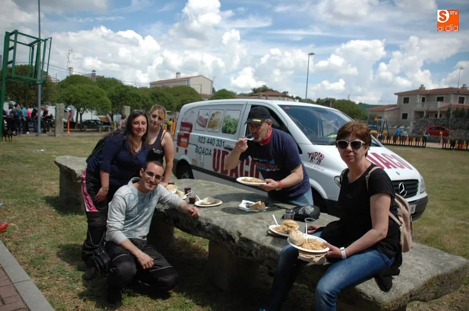 La II ?Kedada? Motera ?Las Brujas ha congregado este sábado en Cipérez a 185 moteros con ?cabalgaduras? de todas las cilindradas imaginables. Organizada por la Asociación Motera Brujos Cipereños, en colaboración con el Ayuntamiento así como empresas de Cipérez y de la comarca de Vitigudino, la jornada de esta ?Kedada? comenzaba a las 11.00 horas con una ruta motera que tomaba la salida desde la Plaza Mayor en dirección a Vitigudino. Tras pasar por las localidades de Barruecopardo, Guadramiro, Cerralbo y Villavieja, hacían una breve parada en Boada, para concluir de nuevo en Cipérez, donde les esperaba una sabrosa paella para 250 comensales, regada con sangría.