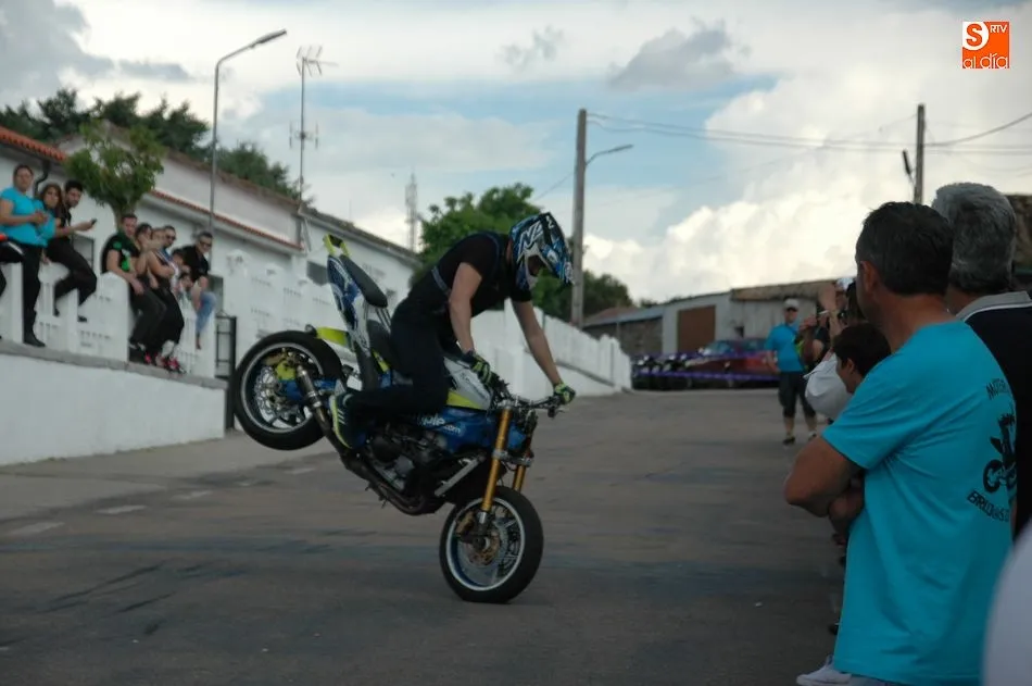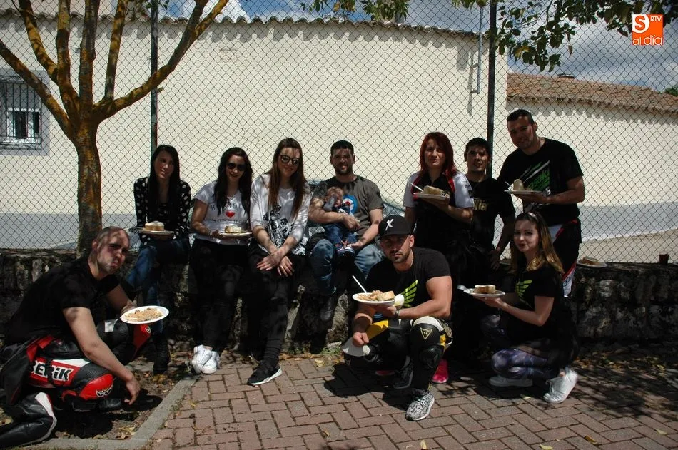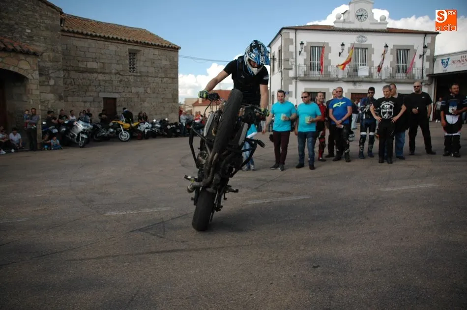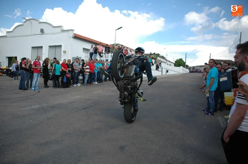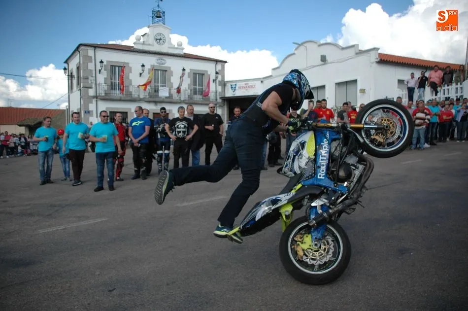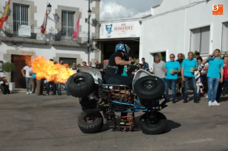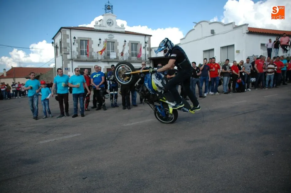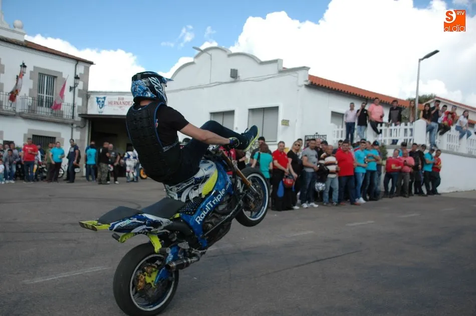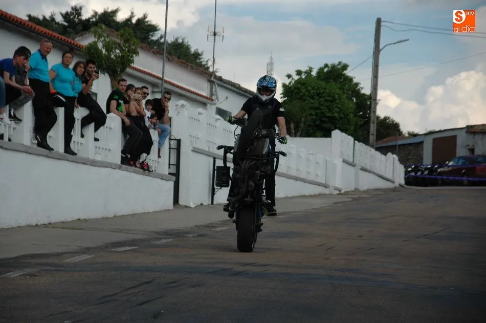 Tras el sorteo de regalos de artículos y complementos para la moto y de embutidos, como evento estelar, a las 18.00 horas, discurría un espectáculo acrobático a cargo de Raúl Triple. Finalizada la exhibición del acróbata zamorano sobre dos y cuatro ruedas, motoristas y vecinos de Cipérez se reunieron en el parque para dar cuenta de una exquisita parrillada en la que no faltaron los asados de carne de cerdo y una fresca limonada.