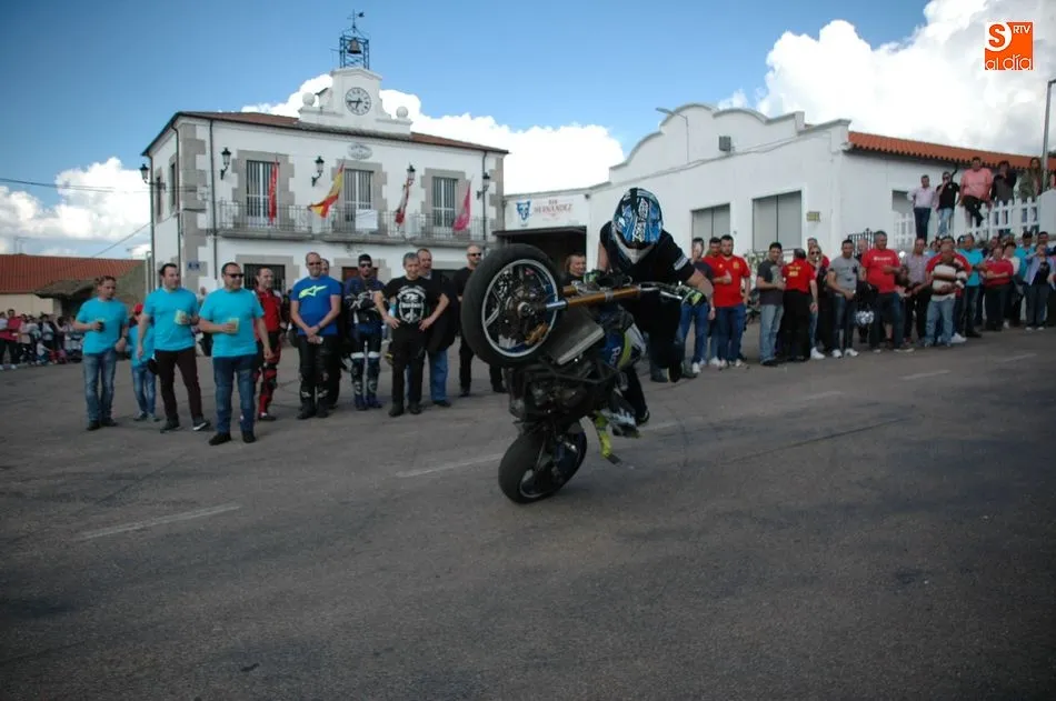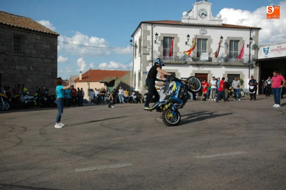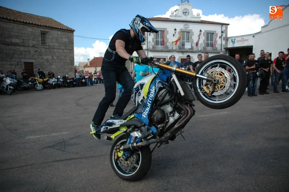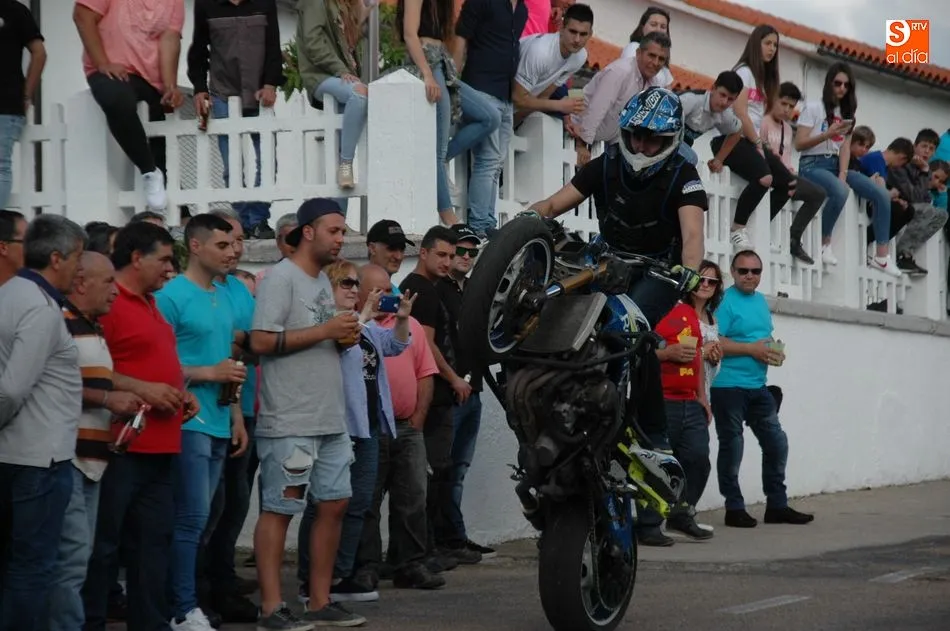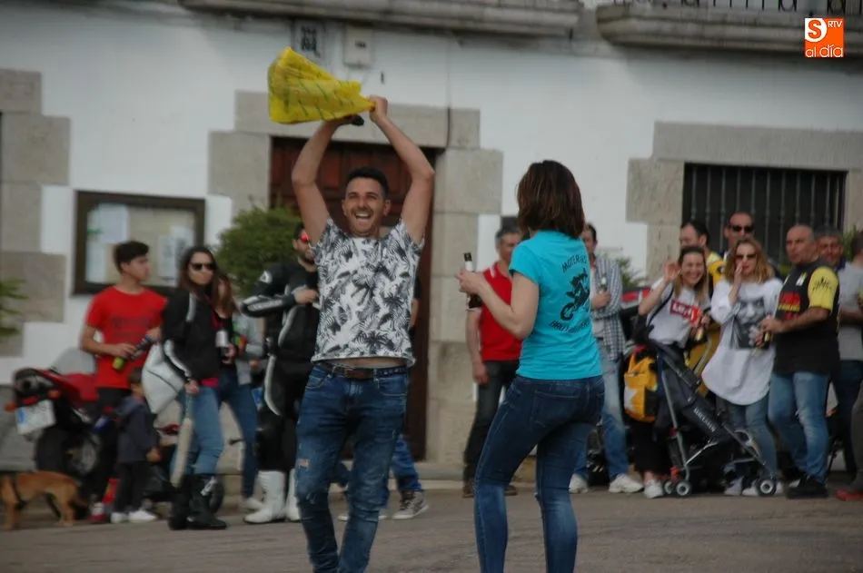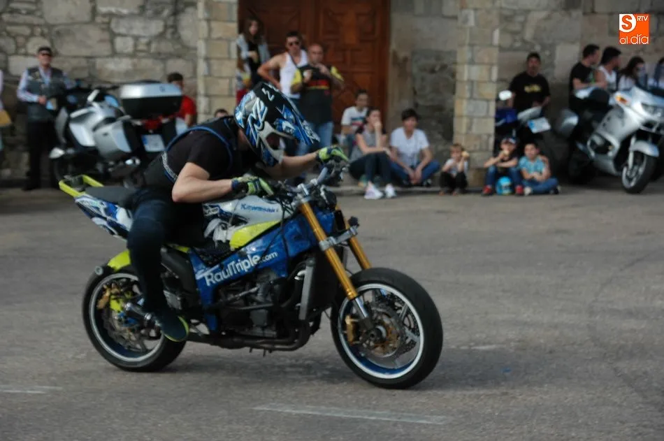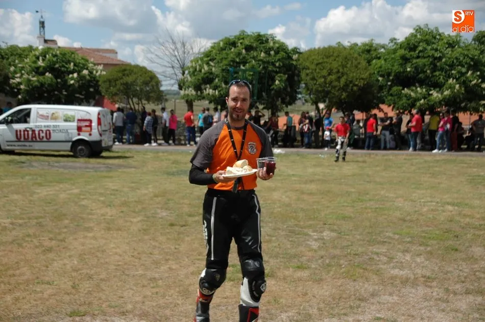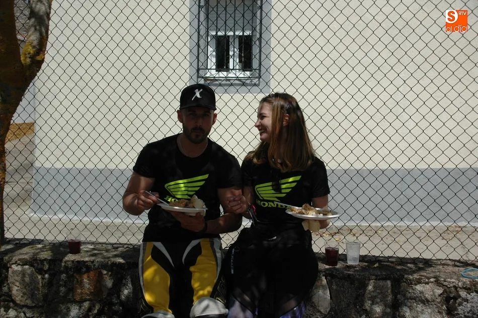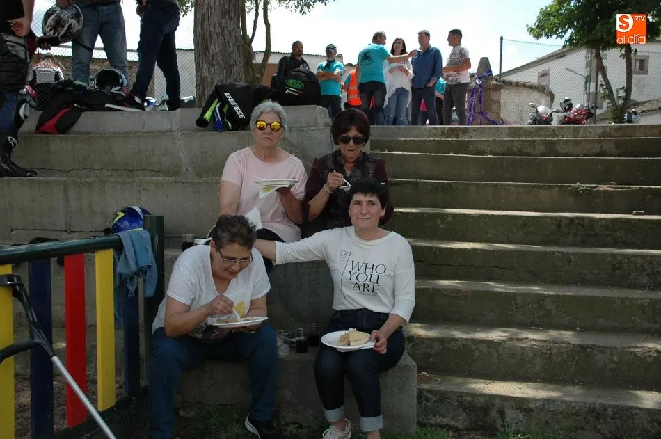 Tras el sorteo de regalos de artículos y complementos para la moto y de embutidos, como evento estelar, a las 18.00 horas, discurría un espectáculo acrobático a cargo de Raúl Triple. Finalizada la exhibición del acróbata zamorano sobre dos y cuatro ruedas, motoristas y vecinos de Cipérez se reunieron en el parque para dar cuenta de una exquisita parrillada en la que no faltaron los asados de carne de cerdo y una fresca limonada.