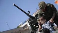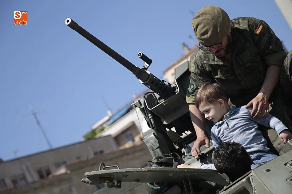 Los Ejércitos de Tierra y de Aire, junto con la Guardia Civil han celebrado este sábado el Día de las Fuerzas Armadas con una vistosa exposición de vehículos, armamento y material en la plaza de la Concordia.