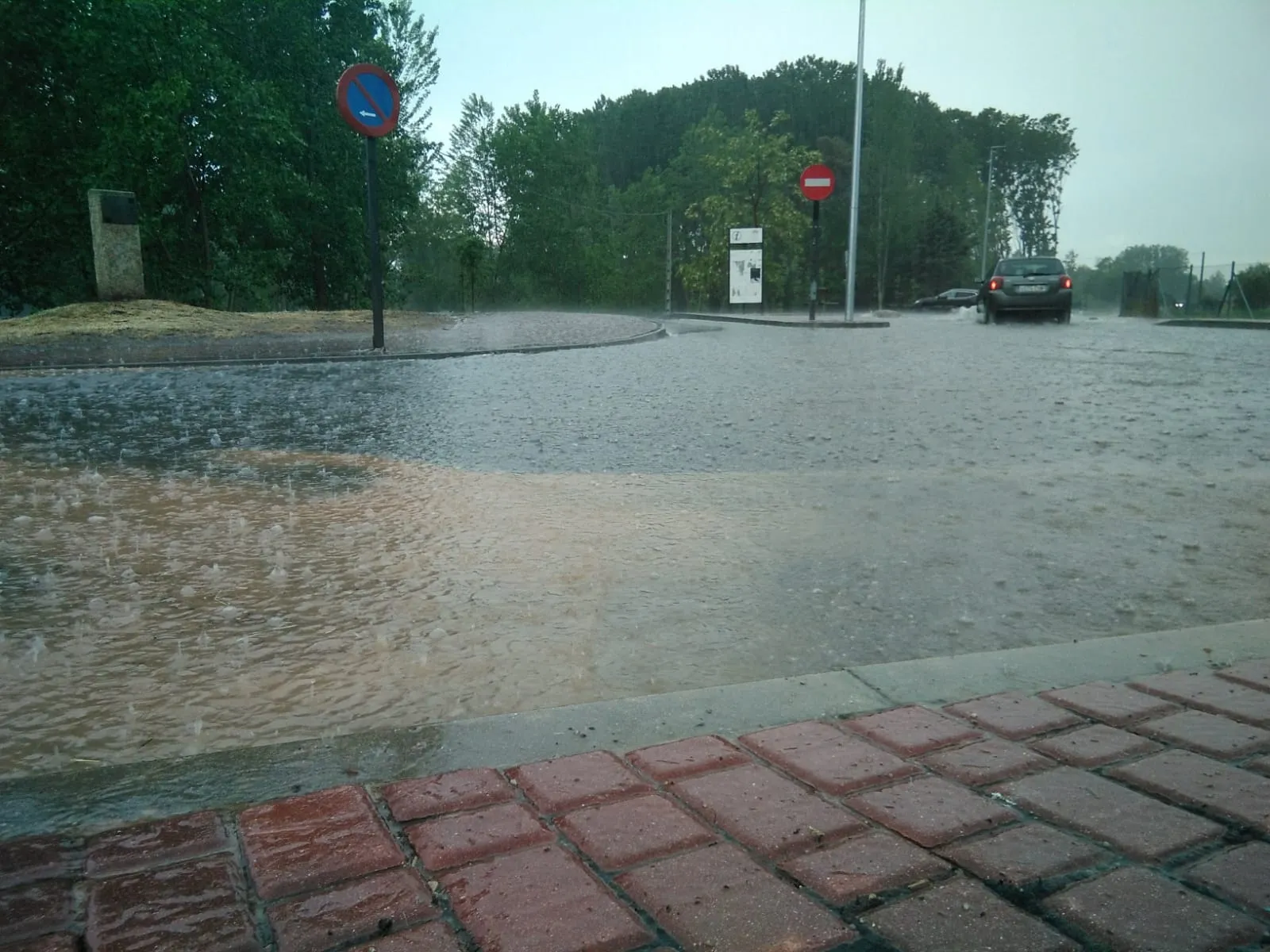 Un fortísimo aguacero provoca numerosos problemas en Ciudad Rodrigo   | Imagen 1Como se puede ver en las imágenes remitidas por un lector tomadas en la zona de Las Barcas, las calles de Ciudad Rodrigo se convirtieron en pocos minutos ?en ríos?, incluso de color blanco producto del granizo caído. En ese punto de confluencia entre la calle Iberia y la Avenida de La Concha, el agua llegó a levantar las tapas de alcantarilla, cortándose el tráfico en ese punto para evitar problemas.