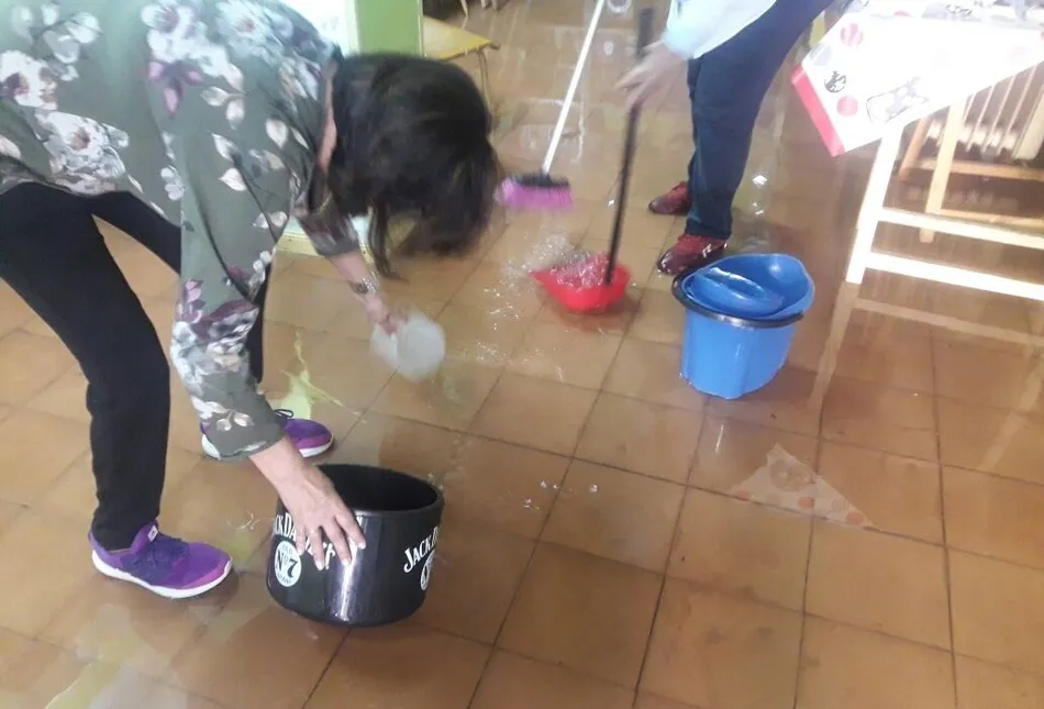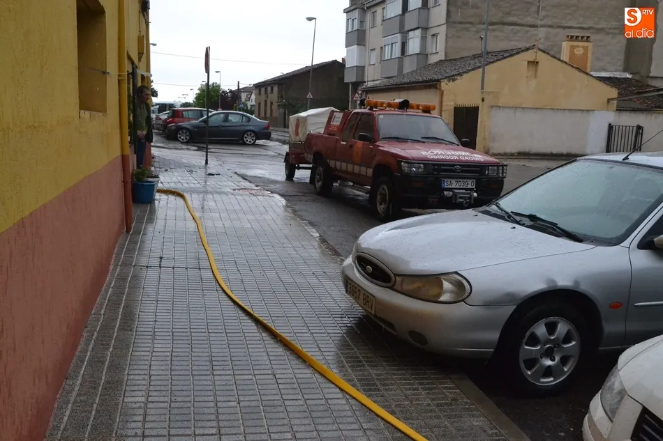 Otro de los lugares donde el agua causó grandes estragos fue la calle Libertad, que quedó anegada, afectando como es lógico a las viviendas de la vía. Hasta allí se acercó uno de los 4 vehículos de los Bomberos (con un total de 12 efectivos) que a lo largo de la tarde fueron resolviendo las continuas incidencias que se fueron presentando en todo tipo de inmuebles, tanto particulares como públicos, mientras que las calles quedaban bastante sucias.