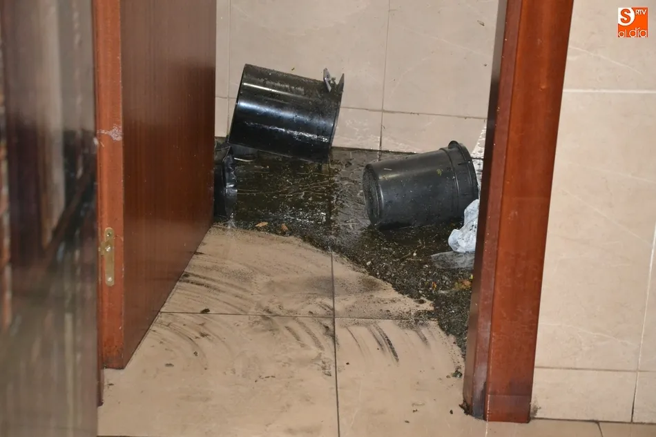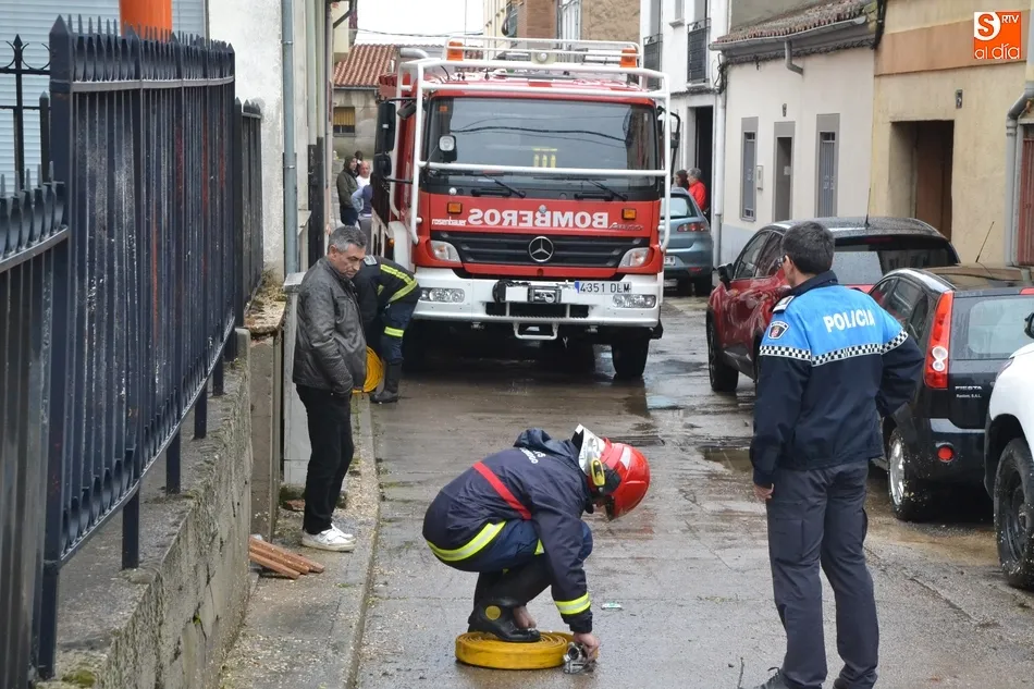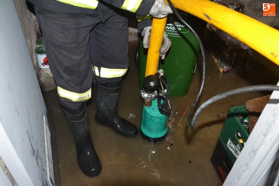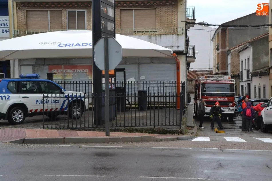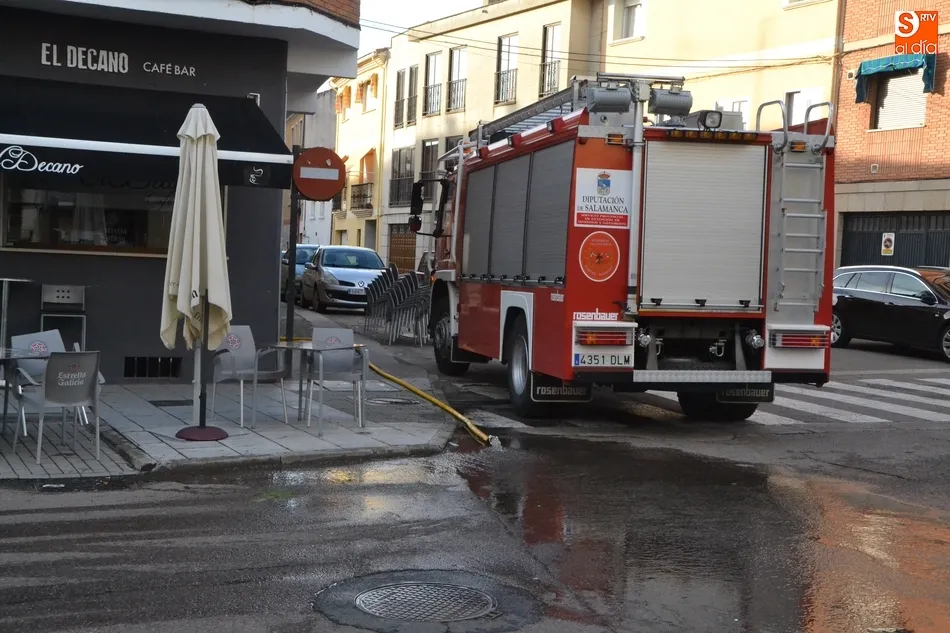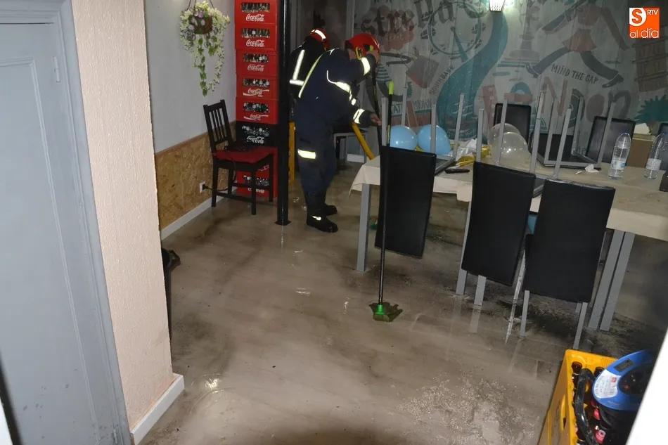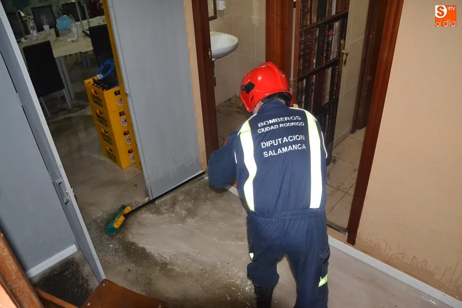 Un fortísimo aguacero provoca numerosos problemas en Ciudad Rodrigo   | Imagen 2A última hora de la tarde del domingo, los Bomberos todavía seguían realizando intervenciones, por ejemplo en el café-bar El Decano, en la esquina de las calles Lorenza Iglesias y Rastrillo, que había sufrido una importante inundación, tras llegar a salir el agua por los lavabos y wáteres de la planta sótano tras tupirse la alcantarilla que hay a pie de calle.