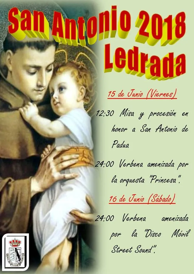 LEDRADA | Una breve programación festiva servirá de homenaje a San Antonio de Padua incluyendo la tradicional procesión