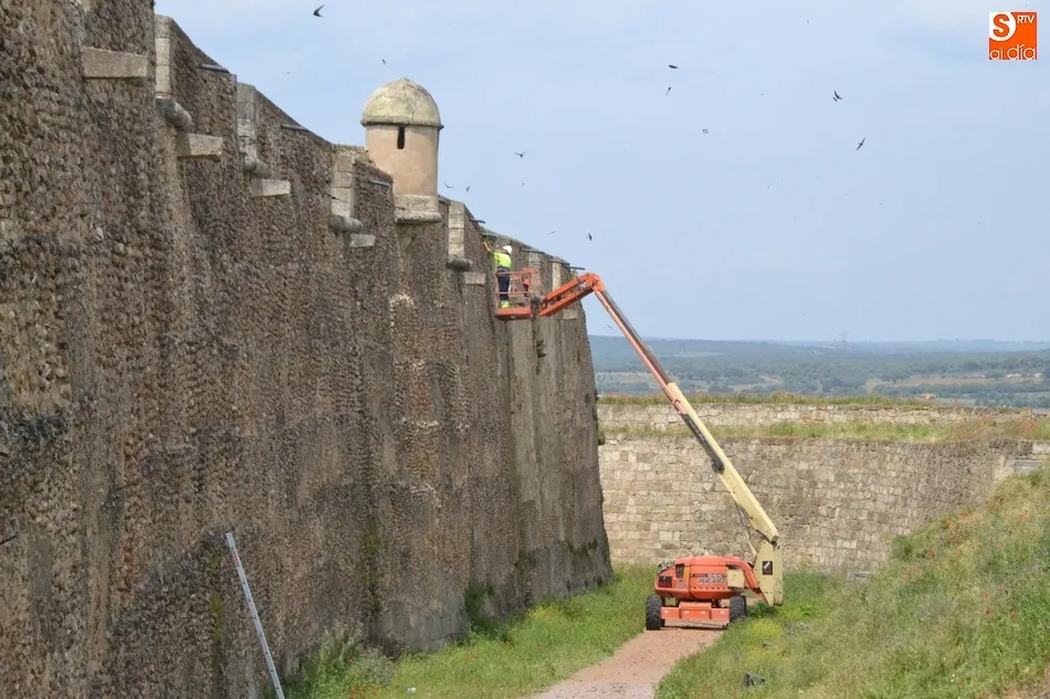 La muralla se pone guapa con una nueva operación de retirada de la vegetación   | Imagen 1Según explicó en la tarde del miércoles el alcalde Juan Tomás Muñoz a Ciudad Rodrigo Al Día, esta operación de limpieza llegará a ?todo lo que se pueda? de la muralla, es decir, a todos los paramentos donde se pueda actuar con la citada plataforma elevadora. A mayores, está previsto actuar en algunos otros puntos de la fortificación accesibles con la plataforma, como por ejemplo en zonas de los fosos donde también se ha acumulado bastante vegetación.