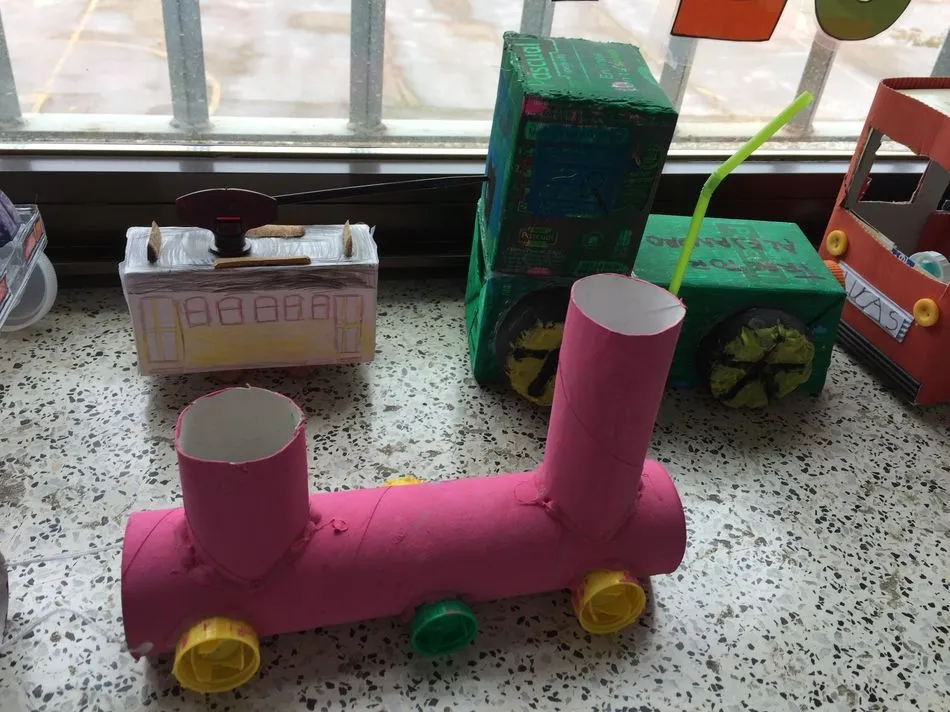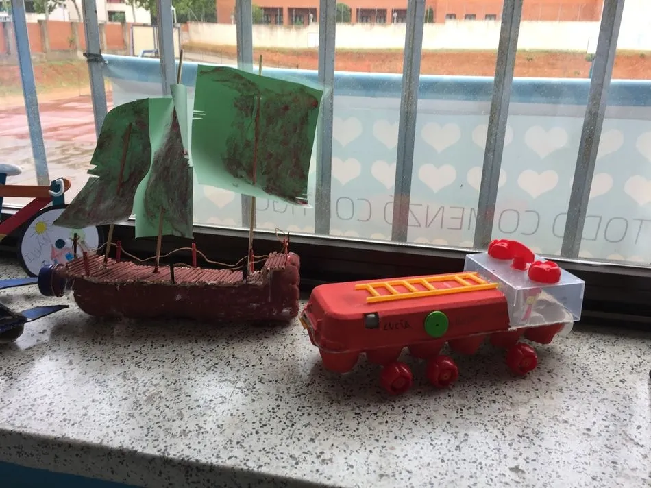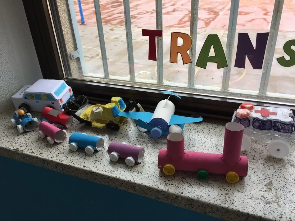 El proyecto ha contado con numerosas actividades, pero desde aquí queremos dar las gracias a los familiares por su colaboración en la realización con materiales de reciclaje de distintos medios de transporte como se observa en las fotografías que acompañan el texto. Cada uno de ellos es especial, se ha realizado con mucho cariño.