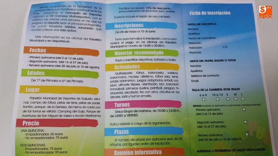 El campus fue presentado por el concejal de Deportes, Carlos Arasa, el coordinador del área, Melchor Herráez y el monitor de la actividad, Pedro Martín. La mayor novedad es la inclusión de varias modalidades deportivas que se suman al gran número ya disponible. Este año destacan el 'Tchoukball' que es una modalidad de balonmano sin contacto. El 'balonkorf' y una nueva versión del baloncesto sin tablero. Además, se potencia el carácter didáctico del campus incluyendo un taller de primeros auxilios, en el que los más pequeños aprenderán qué hacer ante las urgencias más básicas.