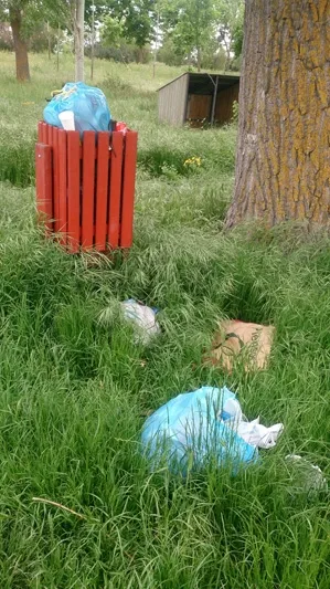 La altura de las hierbas, explican en un comunicado, ?impiden el acceso por no saber por dónde pisas, el camino central del Parque, adosado de piedra , va cubriéndose de vegetación ofreciendo una imagen de total abandono, las papeleras rebosan de basuras, a la entrada del Parque nos recibe un montón de ramas secas y residuos que van depositándose en un lugar que no es el adecuado, esta situación contrasta con el cartel de la entrada donde se lee ?Cuida el Parque? .