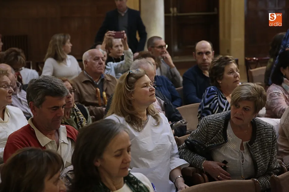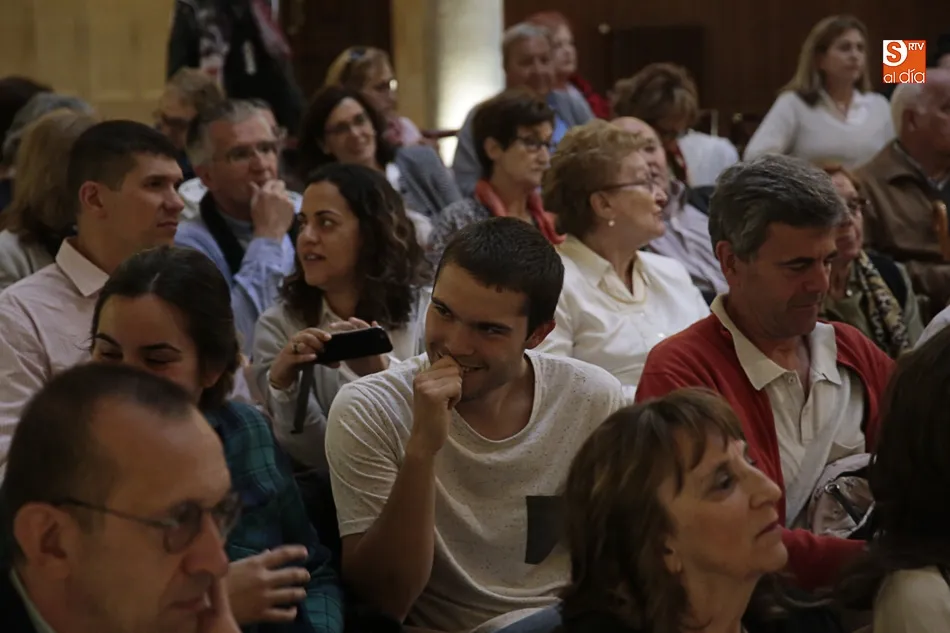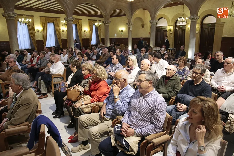 El autor de Saelices el Chico estuvo respaldado por el editor Juan Antonio Hernández, por el vicerrector Enrique Cabero y por Luisa Vicente, presidenta de la Asociación Salamnaca Memoria y Justicia