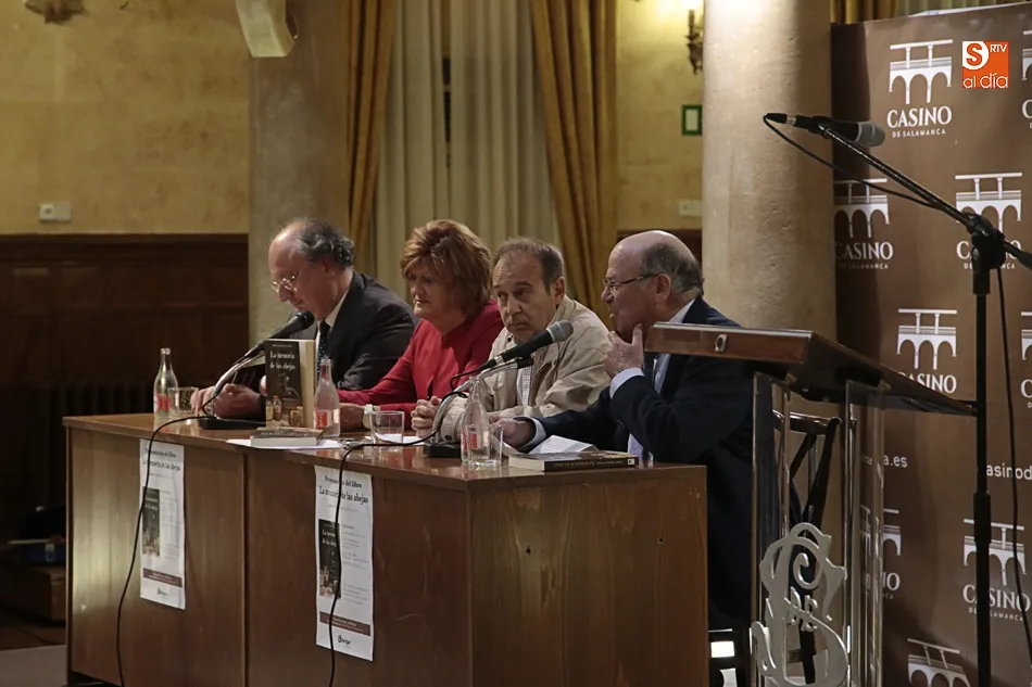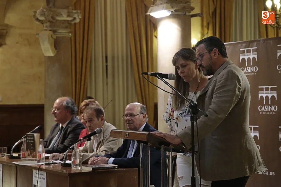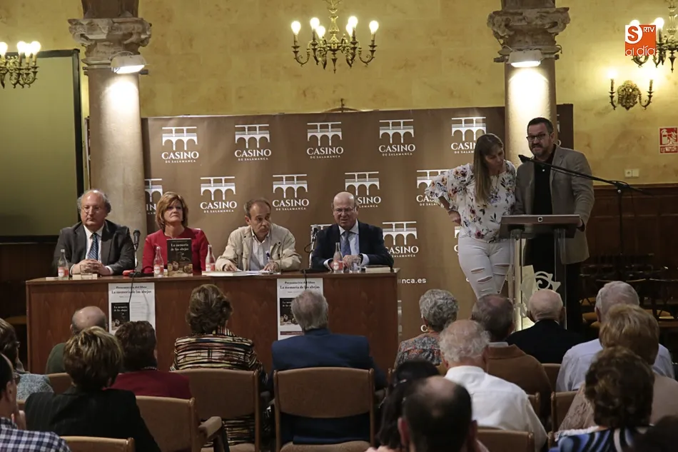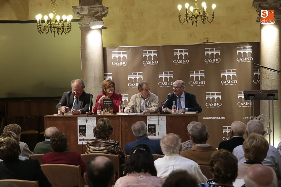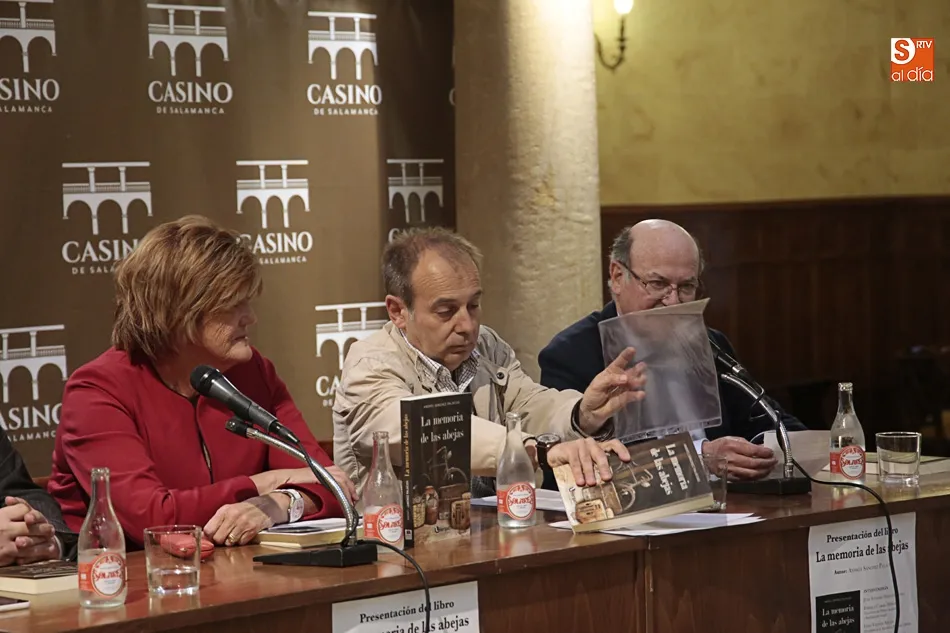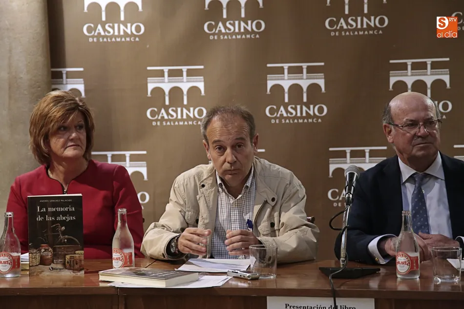 El Casino de Salamanca acogía este jueves la presentación del libro ?La memoria de las abejas?, de Andrés Sánchez Palacios y editado por Juan Antonio Hernández. Ambos estuvieron acompañados por el vicerrector de Política Académica y Participación Social de la USAL, Enrique Cabero, y la presidenta de la Asociación Salamanca Memoria y Justicia, Luisa Vicente. El libro está centrado en la Guerra Civil Española. Andrés Sánchez Palacios, que ha tardado más de cuatro años en elaborar este volumen, es natural de Saelices el Chico, trabajando en la actualidad como profesor de Economía en un Instituto de Educación Secundaria en Zamora.