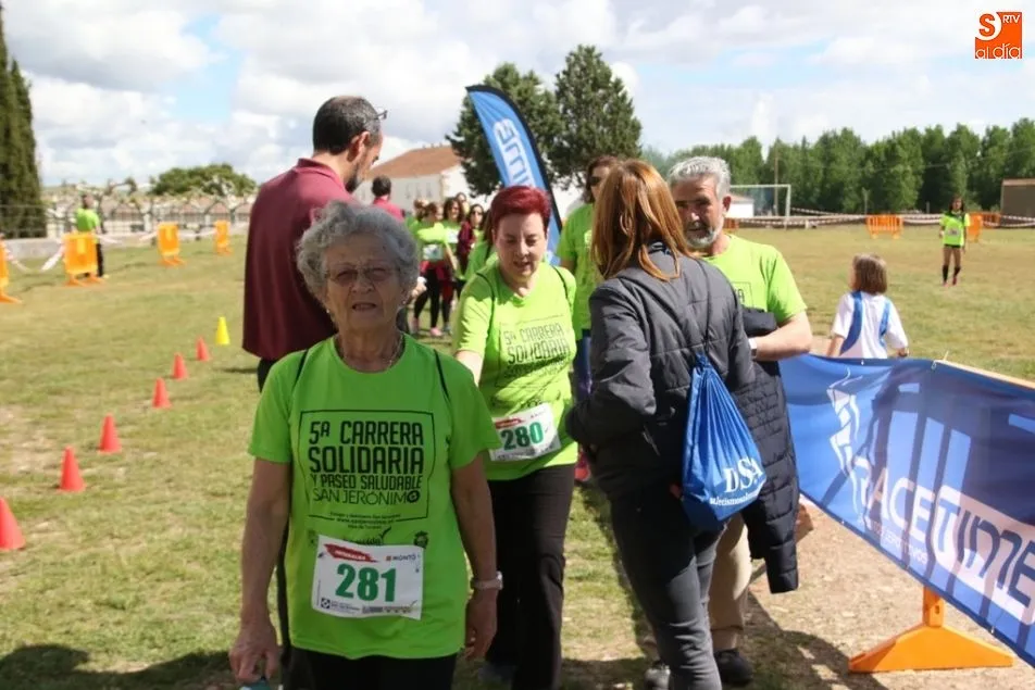 Esta mañana se ha disputado la quinta edición de la carrera solidaria San Jerónimo que ha contado con la participación de 61 corredores, gran cantidad de caminantes solidarios y media centena de niños participantes en carreras de menores.