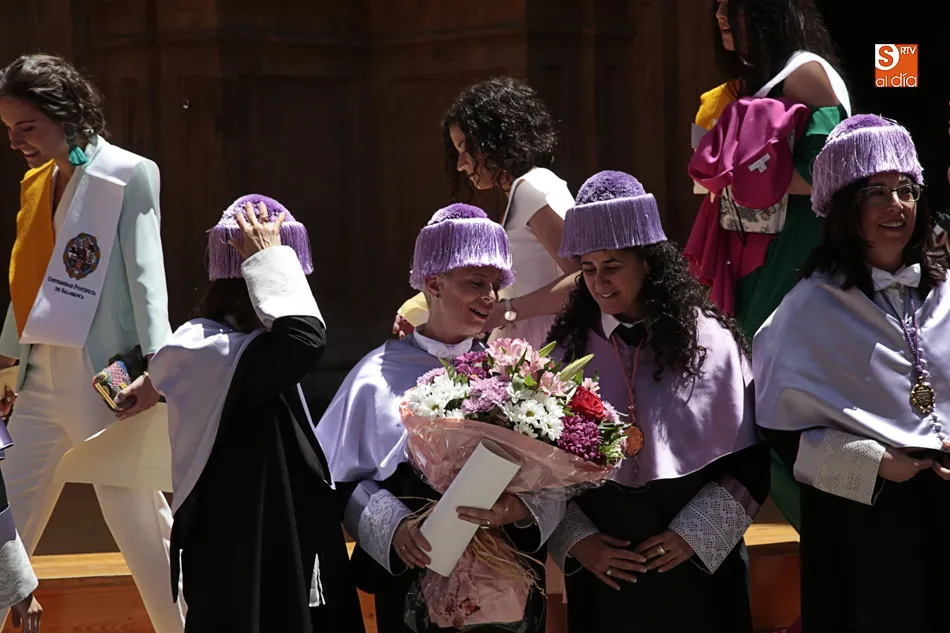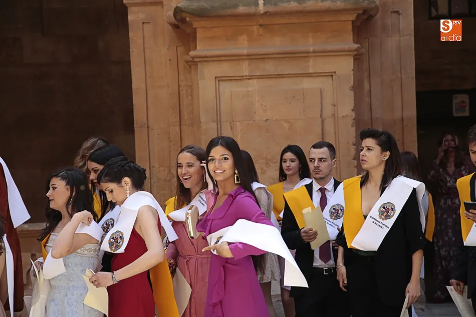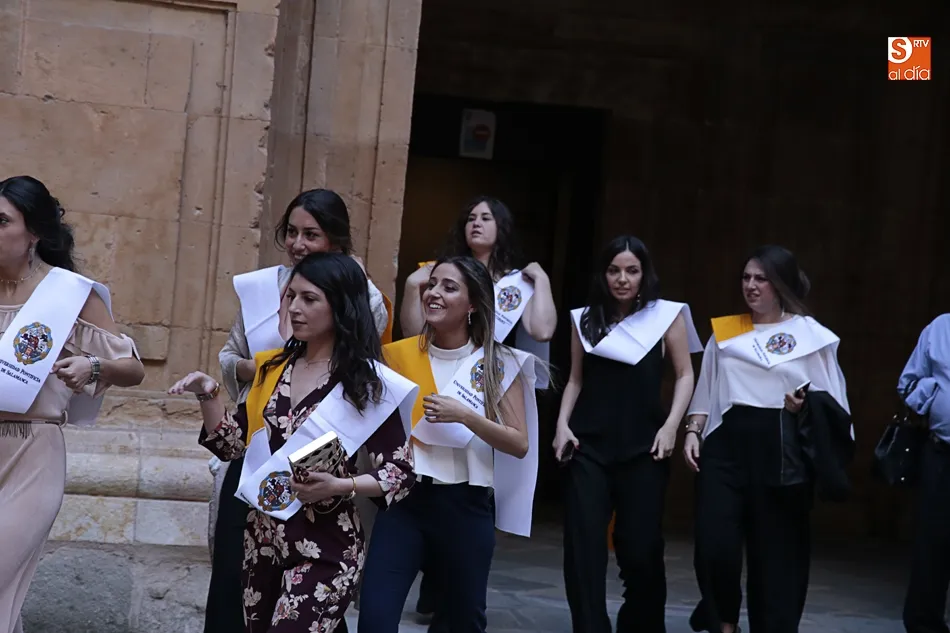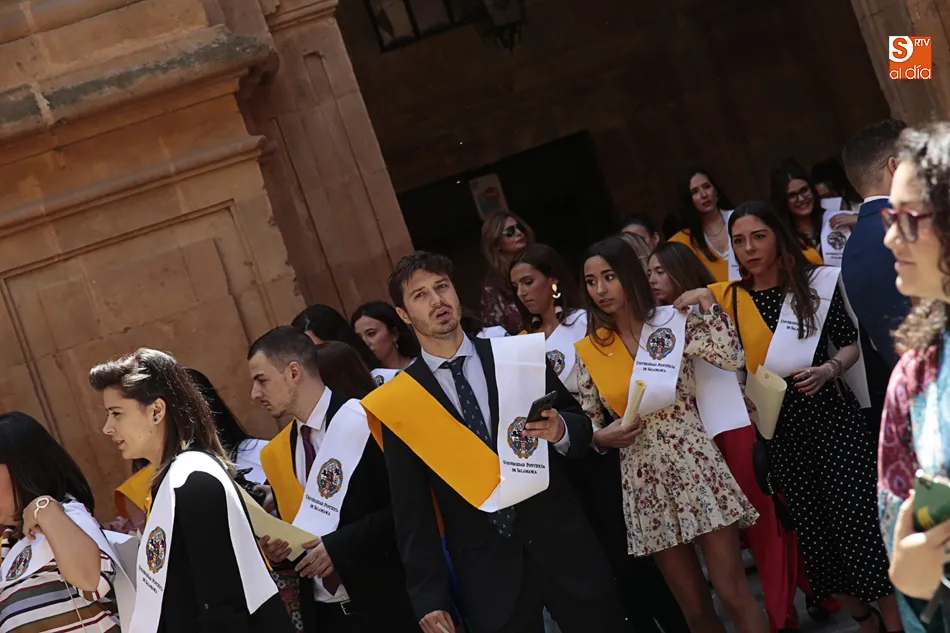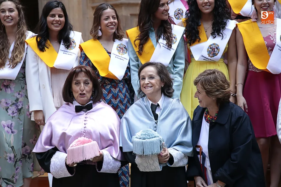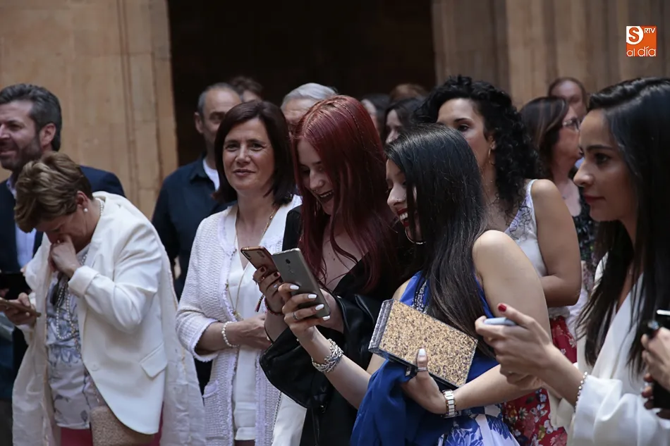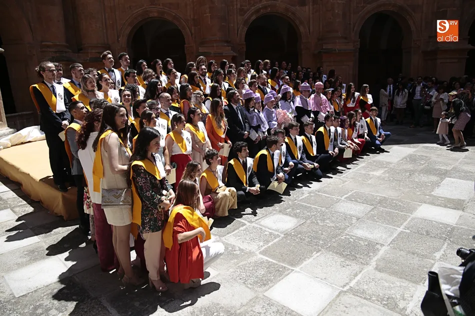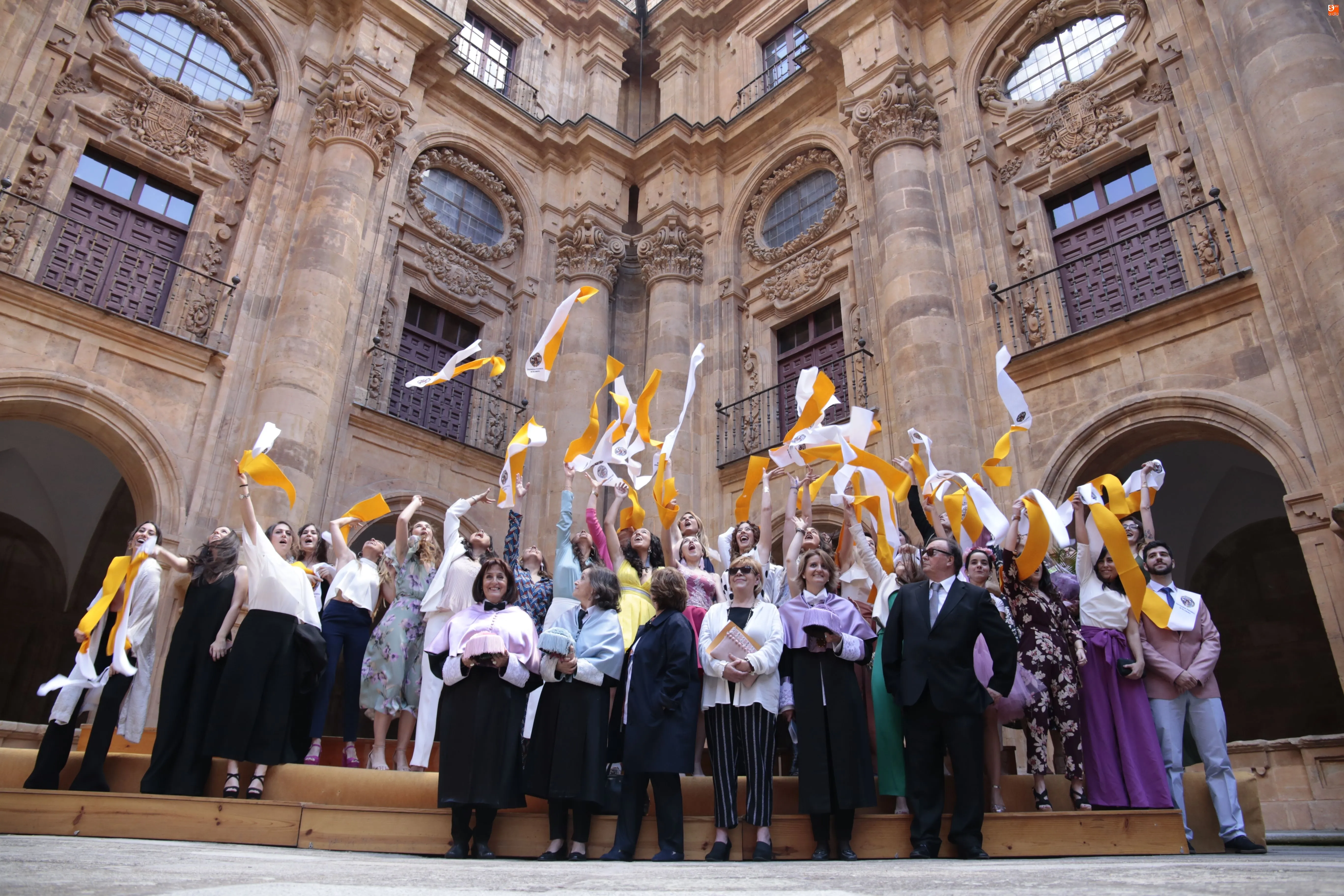 La ceremonia de fin de grado de Logopedia ha reunido hoy en el Aula Francisco Suárez de la Universidad Pontificia a los alumnos y alumnas que finalizan sus estudios y que han estado arropados por profesores y familiares en un emotivo acto que ha finalizado con la fotografía de grupo en el Patio Barroco de la Pontificia.