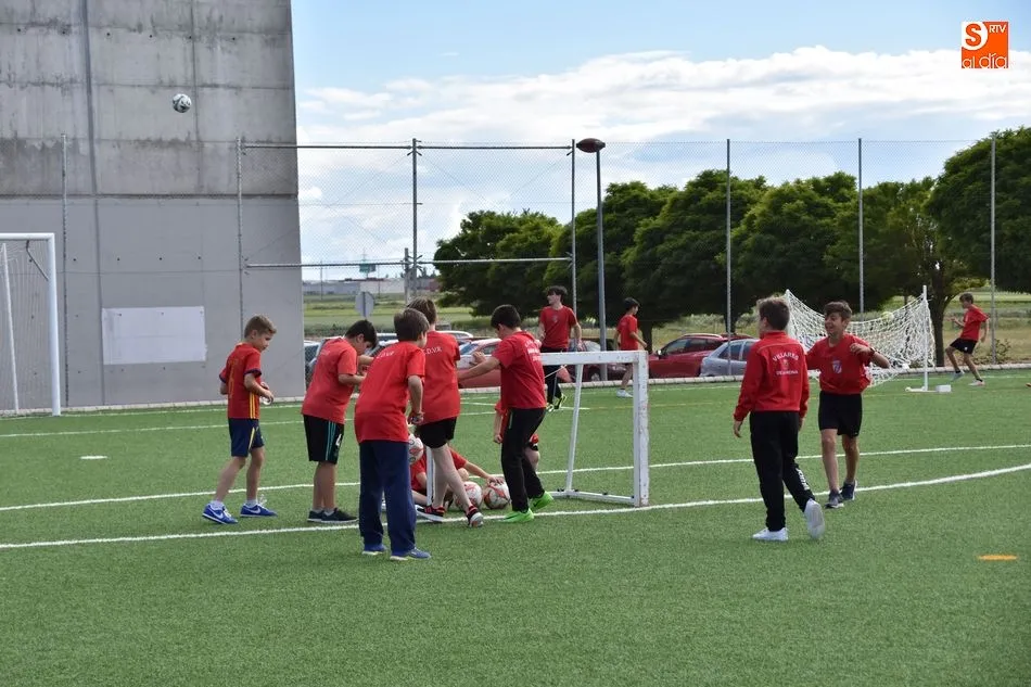 Este sábado se ha celebrado en el CD Villares una fiesta que reunió a los jugadores y padres de todo el club para pasar una agradable tarde juntos con hinchables y diferentes torneos que se celebraron en el campo de fútbol de la localidad armuñesa. Aprovechando el evento se despidió a Iñaki, uno de los entrenadores que llevan en el club desde incluso antes de que se fundara como tal. A continuación, todos los jugadores disfrutaron de un tentempié y para concluir la tarde se presentó la equipación del club para la siguiente temporada que fue del agrado de todos los presentes por apostar por una nueva imagen del club.