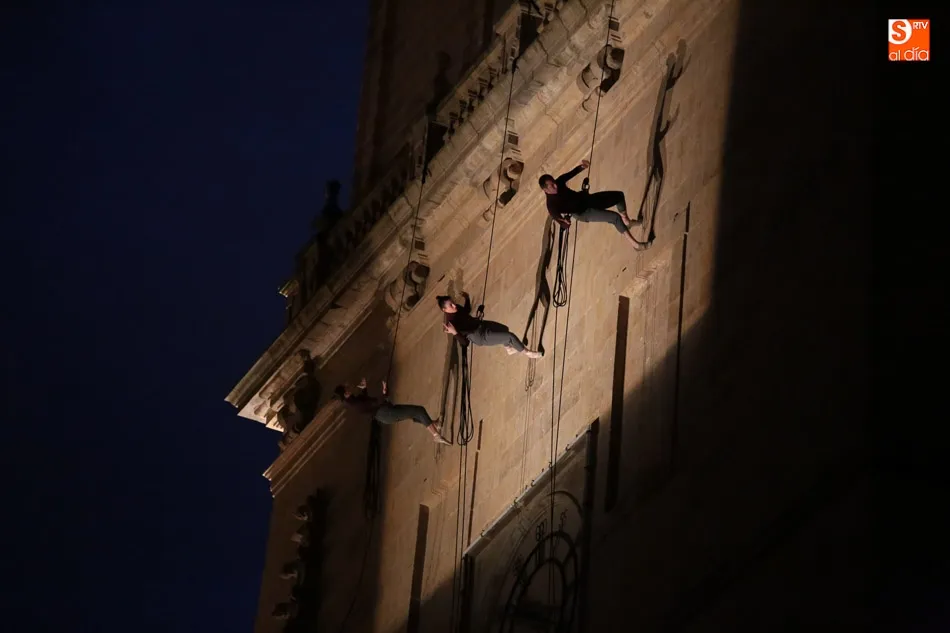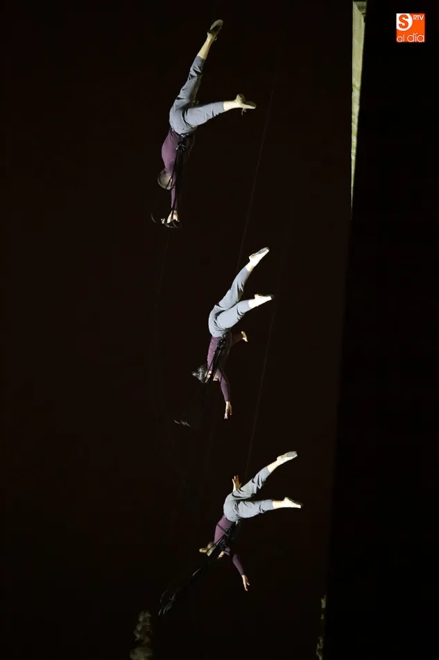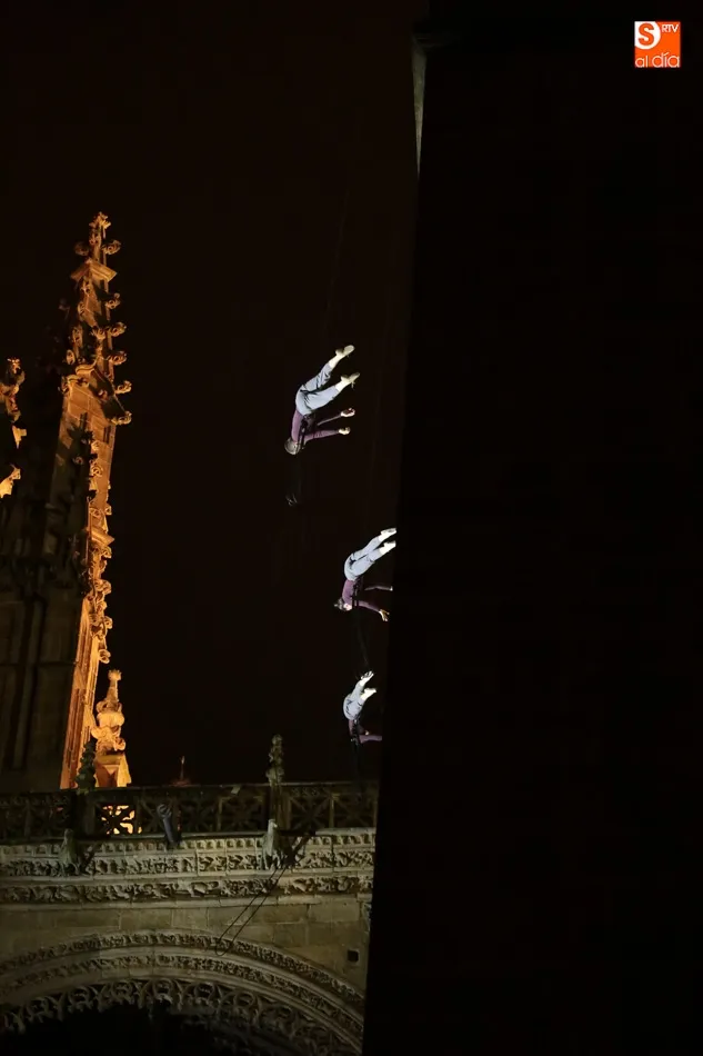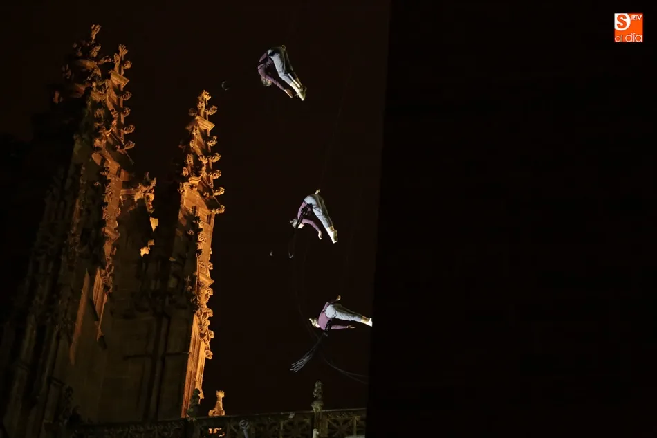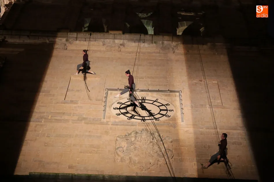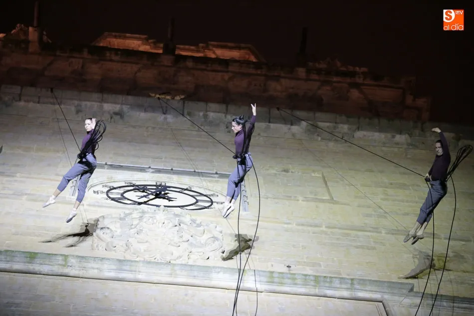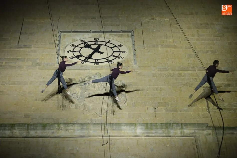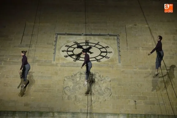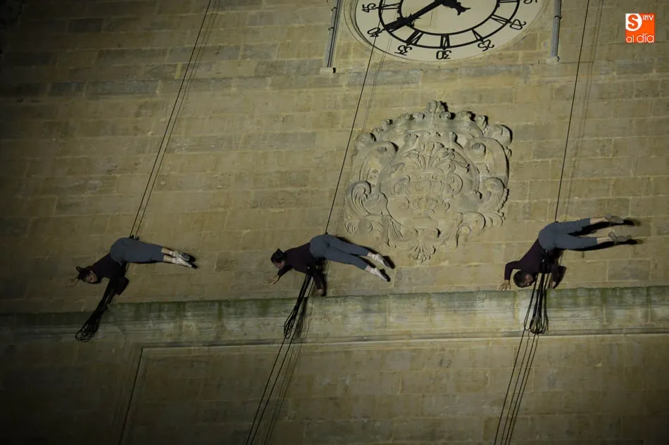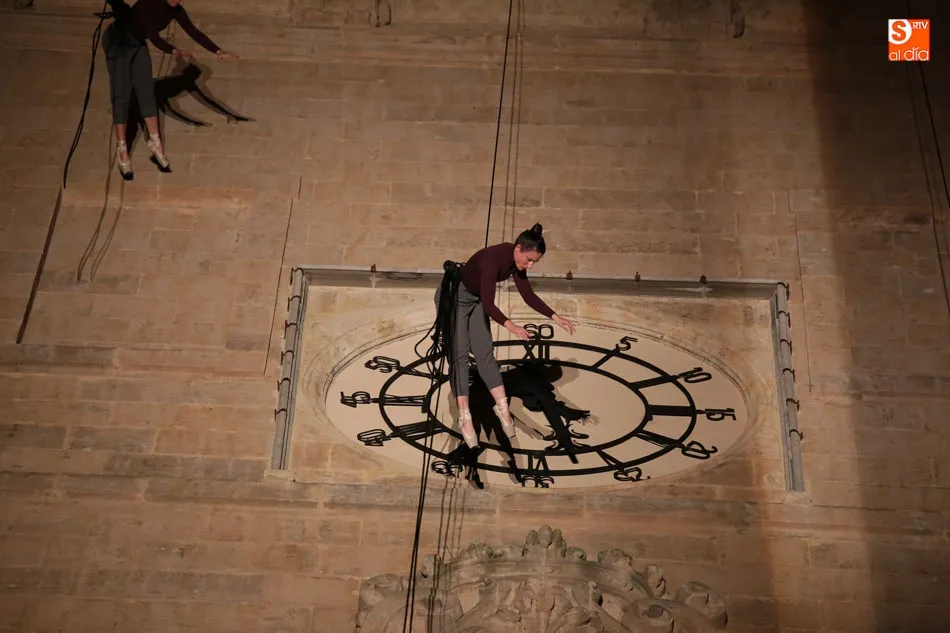 La actuación de la compañía catalana ?Delrevés? ha puesto el broche final a la XIV edición, del festival FÀCYL, con una actuación llevada a cabo en la Torre de la Catedral y que ha sido una fusión del lenguaje físico personal y la danza clásica.