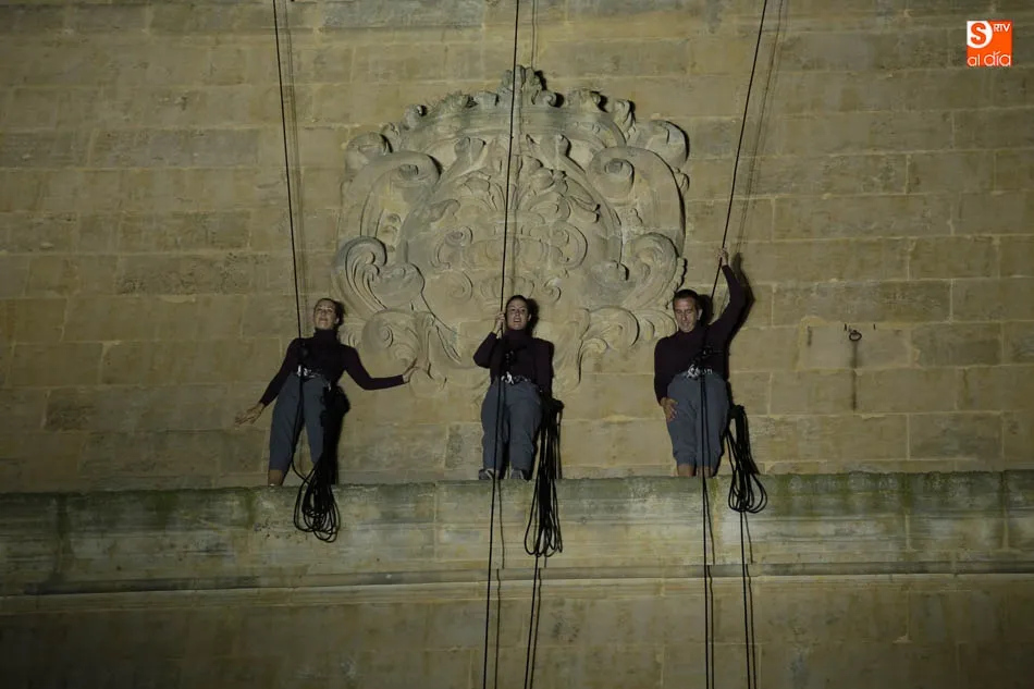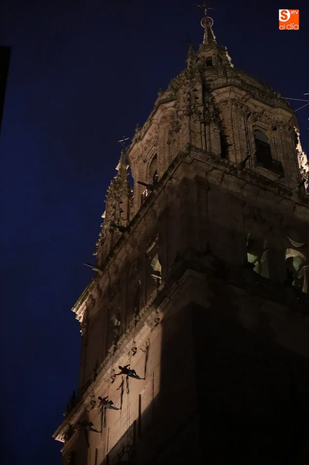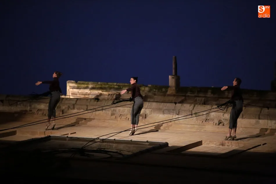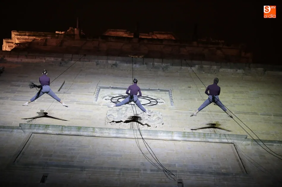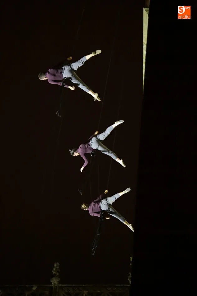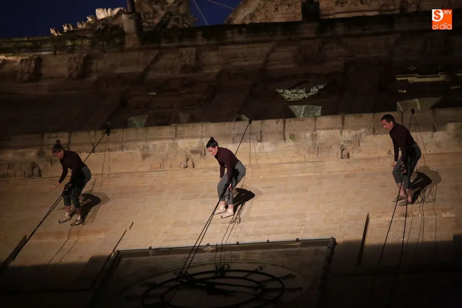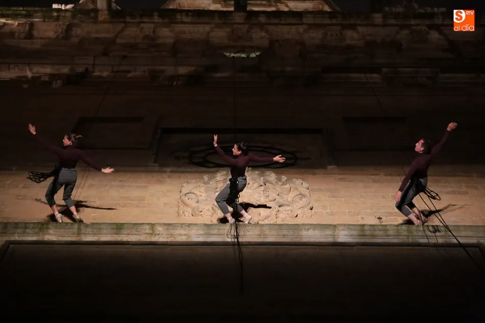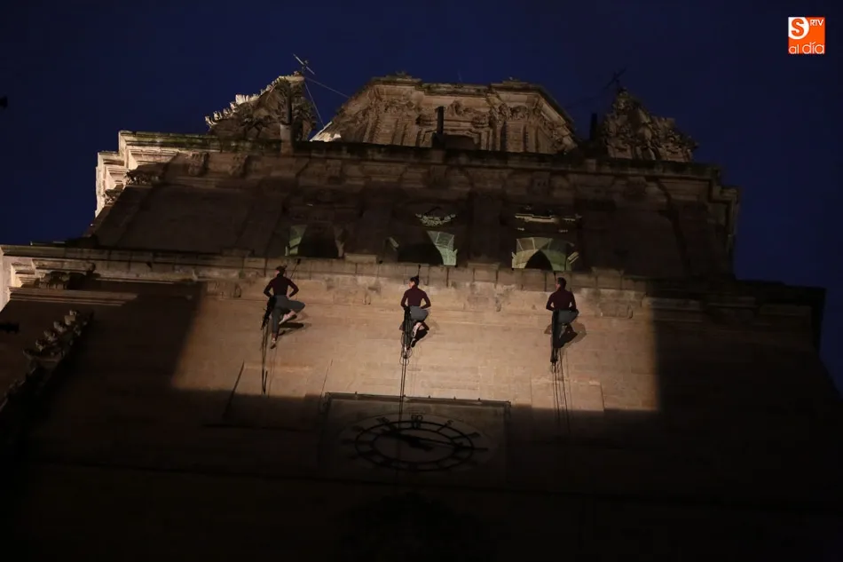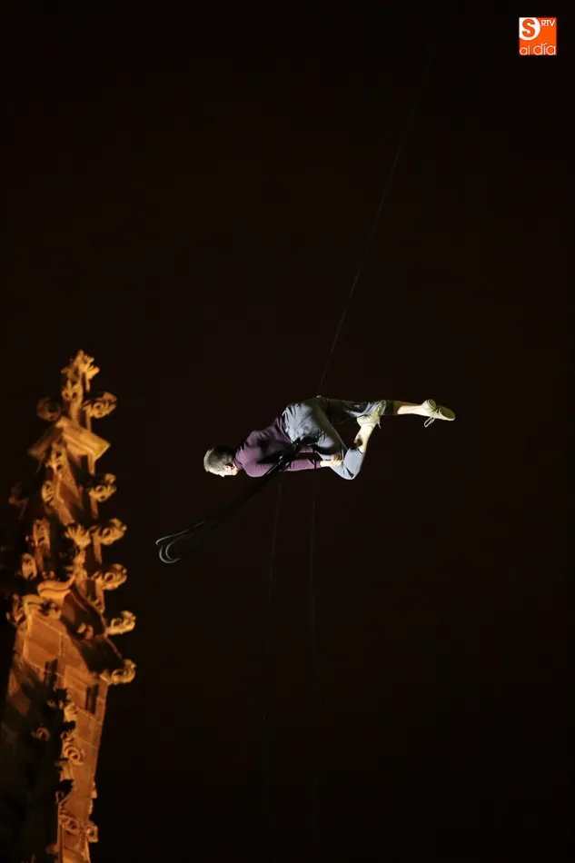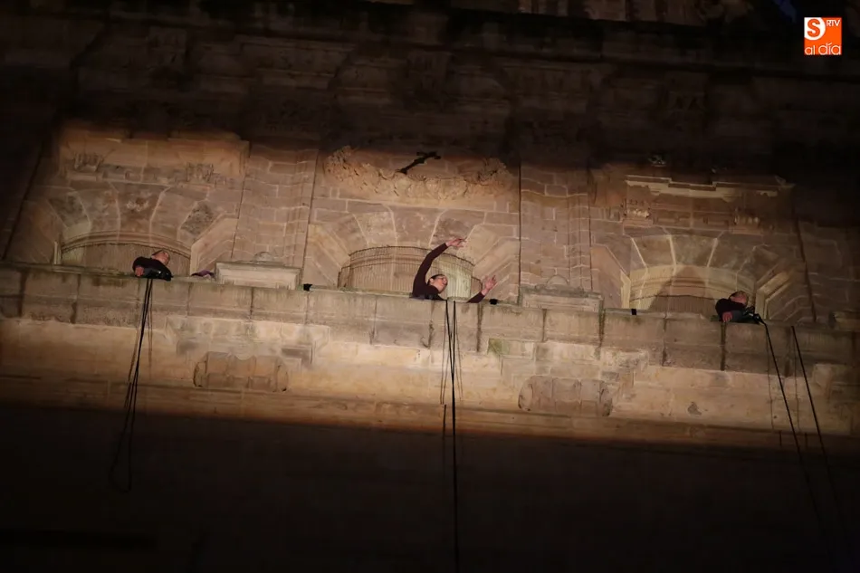 La actuación de la compañía catalana ?Delrevés? ha puesto el broche final a la XIV edición, del festival FÀCYL, con una actuación llevada a cabo en la Torre de la Catedral y que ha sido una fusión del lenguaje físico personal y la danza clásica.