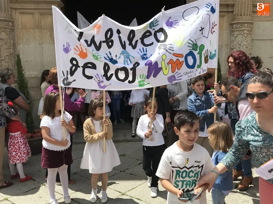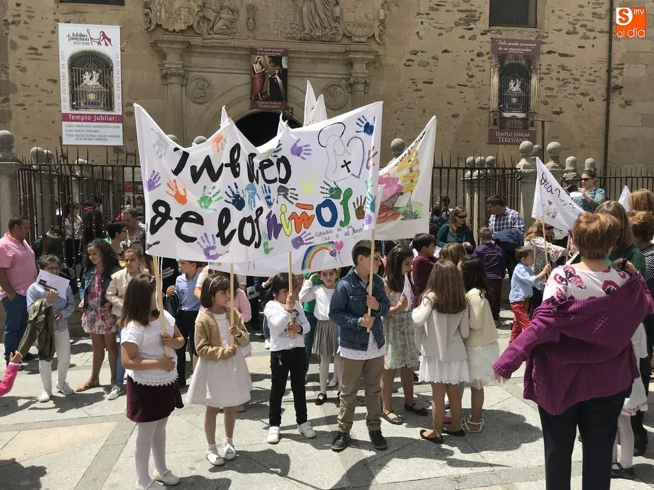 Casi doscientos niños y niñas han participado esta mañana en el ?Jubileo de los Niños? organizado por los Carmelitas Descalzos de Alba de Tormes. Una mañana intensa que comenzó con el encuentro de los más pequeños en el Colegio Santa Isabel, continuó con una visita a los mayores de la Residencia de Santiago y otra visita a la imagen de Santa Teresa en la Plaza del Peregrino.