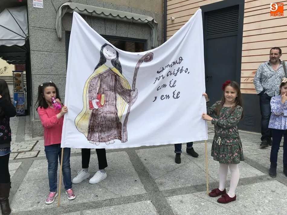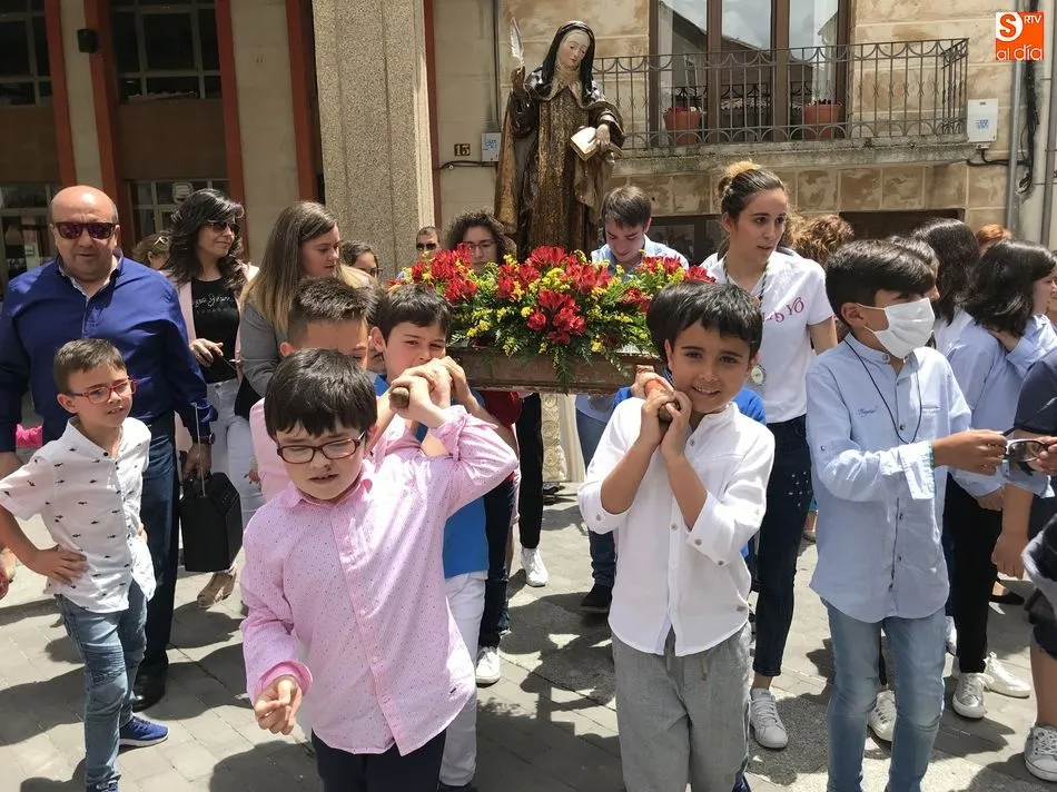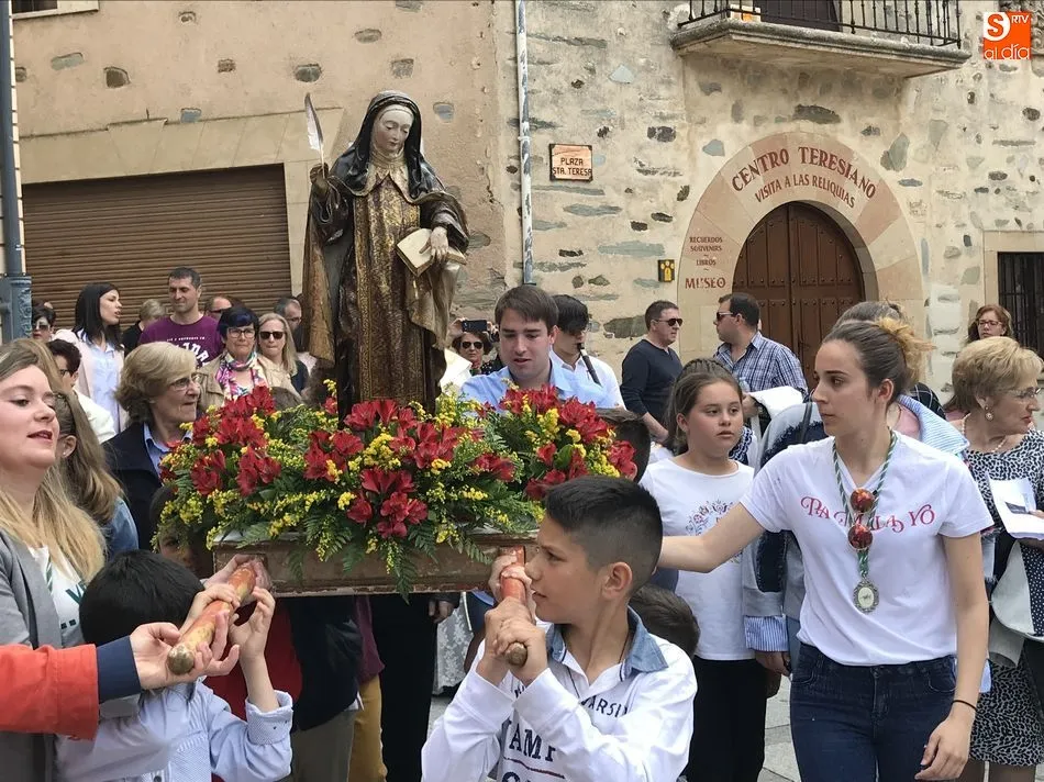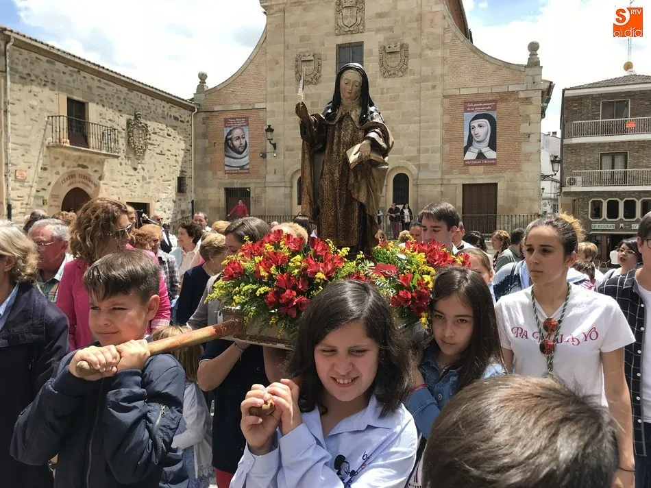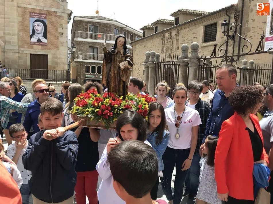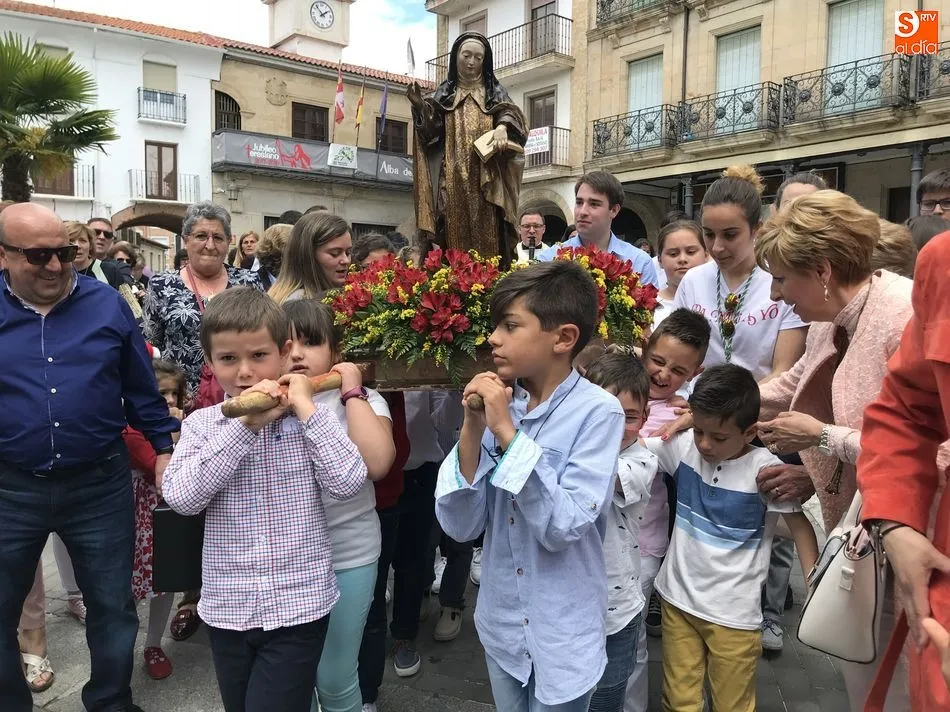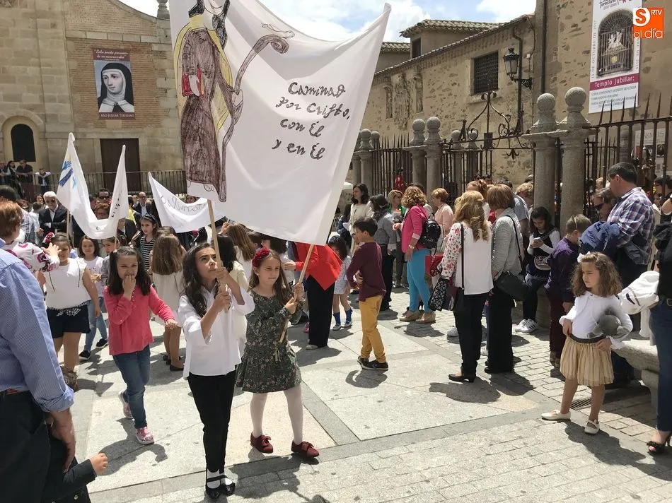 A la una del mediodía, la iglesia de la Anunciación se llenó de peregrinos, niños y padres que participaron activamente en la Misa Jubilar, para posteriormente participar en una procesión con una imagen de Santa Teresa perteneciente a la Escuela Castellana del siglo XVII.