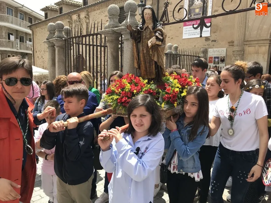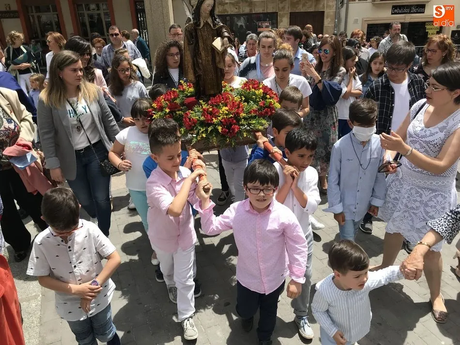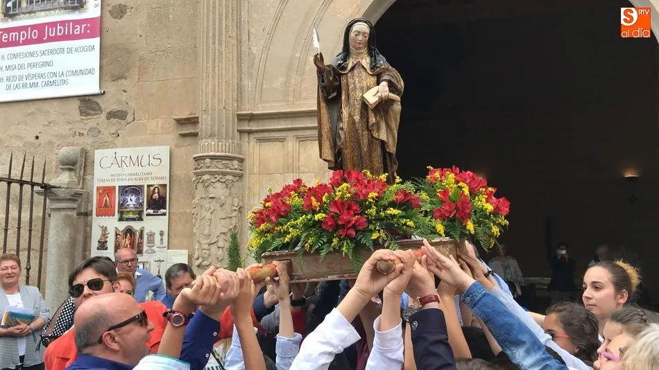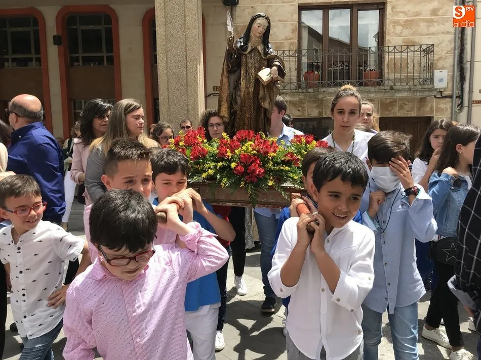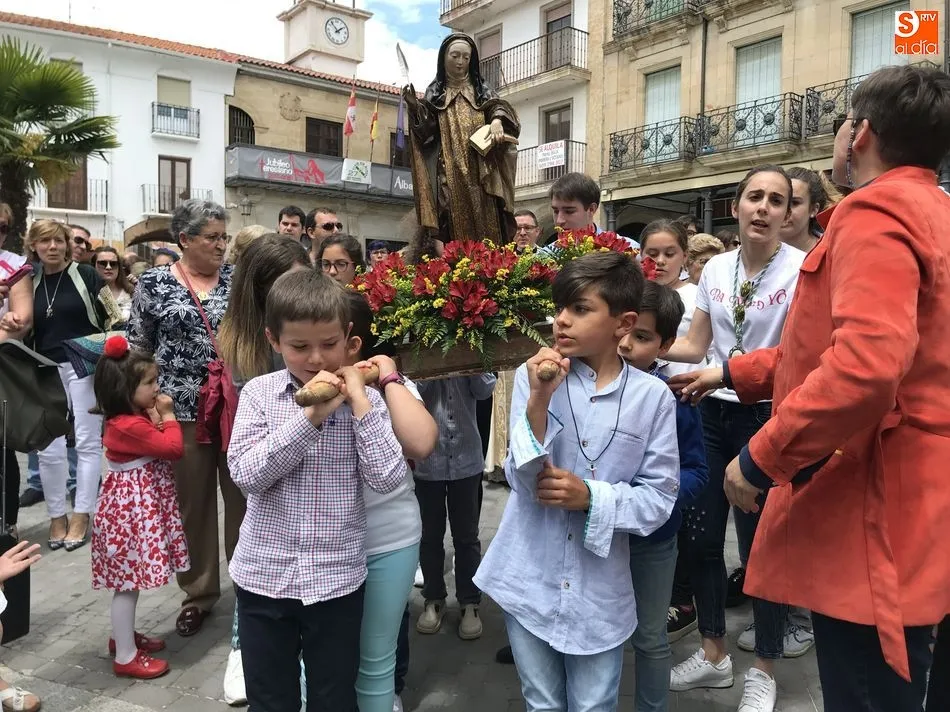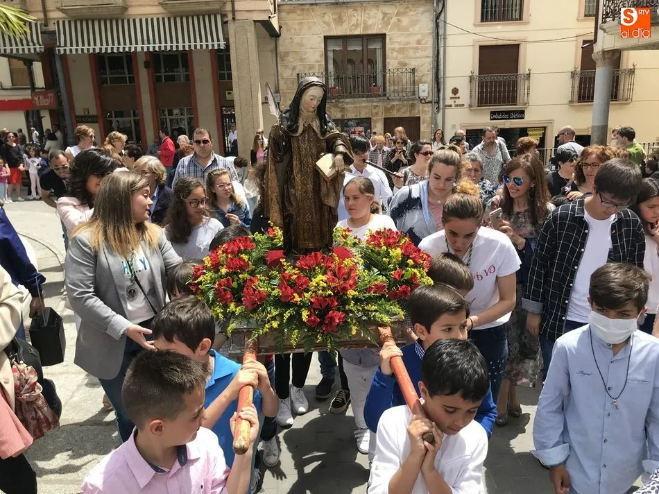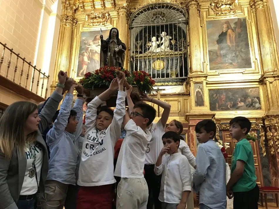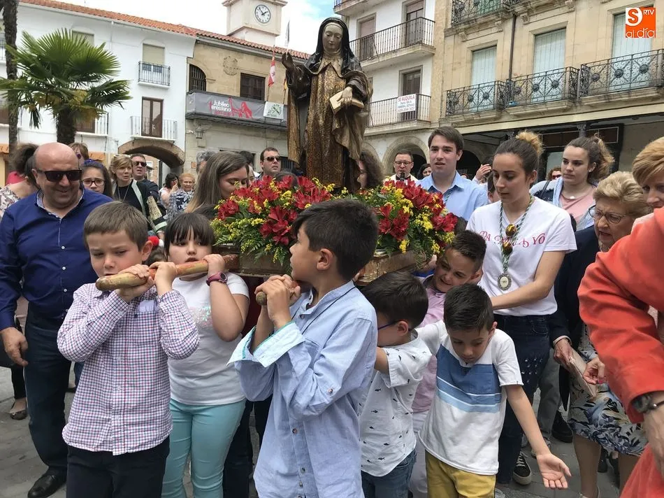 A la una del mediodía, la iglesia de la Anunciación se llenó de peregrinos, niños y padres que participaron activamente en la Misa Jubilar, para posteriormente participar en una procesión con una imagen de Santa Teresa perteneciente a la Escuela Castellana del siglo XVII.