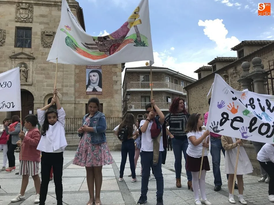 Al finalizar, el prior de los Carmelitas Descalzos en Alba de Tormes, Miguel Ángel González, entregó un azulejo de cerámica con la imagen de la santa andariega a todos los niños y niñas, en total 175.