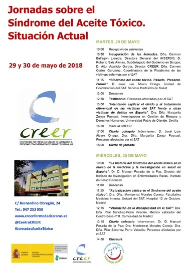 La Plataforma se encuentra ultimando los detalles para su siguiente gran cita, que tendrá lugar los días 29 y 30 de mayo con la celebración de las Jornadas sobre el Síndrome del Aceite Tóxico y su situación actual, que se desarrollaran en Burgos con un importante programa de ponencias y actos dedicados a clarificar el modelo de atención que se mantiene y hacia donde debe encaminarse la administración.