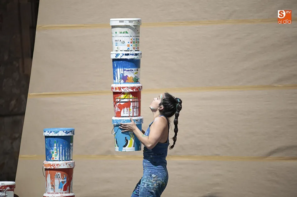 La compañía ha sorprendido al público con destrezas como pintar con los pies, hacer equilibrios imposibles y cantar en posturas muy raras que nos hacen ver que al fin y al cabo la brocha está en nuestras manos y podemos pintar la realidad que más nos guste, porque todos tenemos derecho a decidir los colores que queremos que nos rodeen. Un espectáculo de contorsión, acrobacia, danza y teatro que ha llegado a Salamanca de la mano del Festival Fácyl.