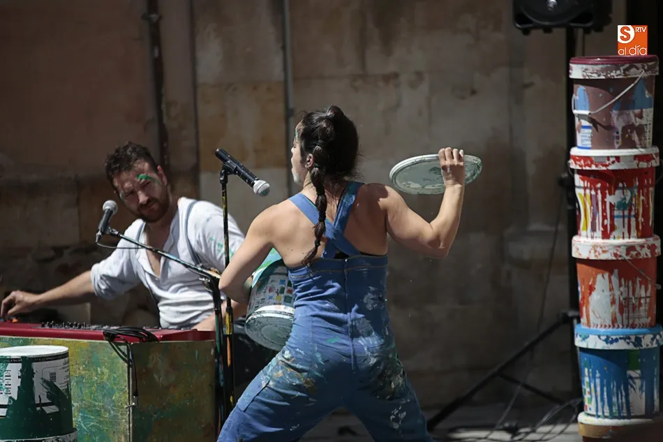 Los dos tiernos personajes han ofrecido al público una combinación de circo, teatro, música y pintura en la calle
