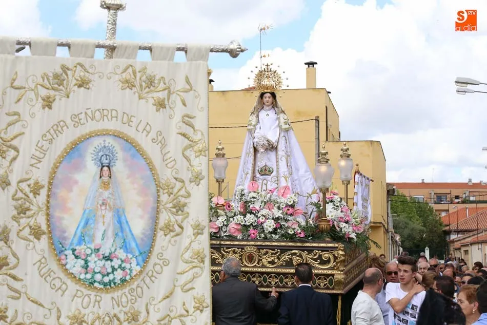 Fiel a la tradición, el barrio de Tejares ha celebrado este domingo la fiesta de Nuestra Señora de la Salud. Tras el solemne novenario en su honor que tuvo lugar días pasados, los vecinos del barrio y numerosos devotos salmantinos han tenido la oportunidad de acompañar a su venerada imagen en la procesión que se ha iniciado tras la eucaristía celebrada en el Parque de la Salud.