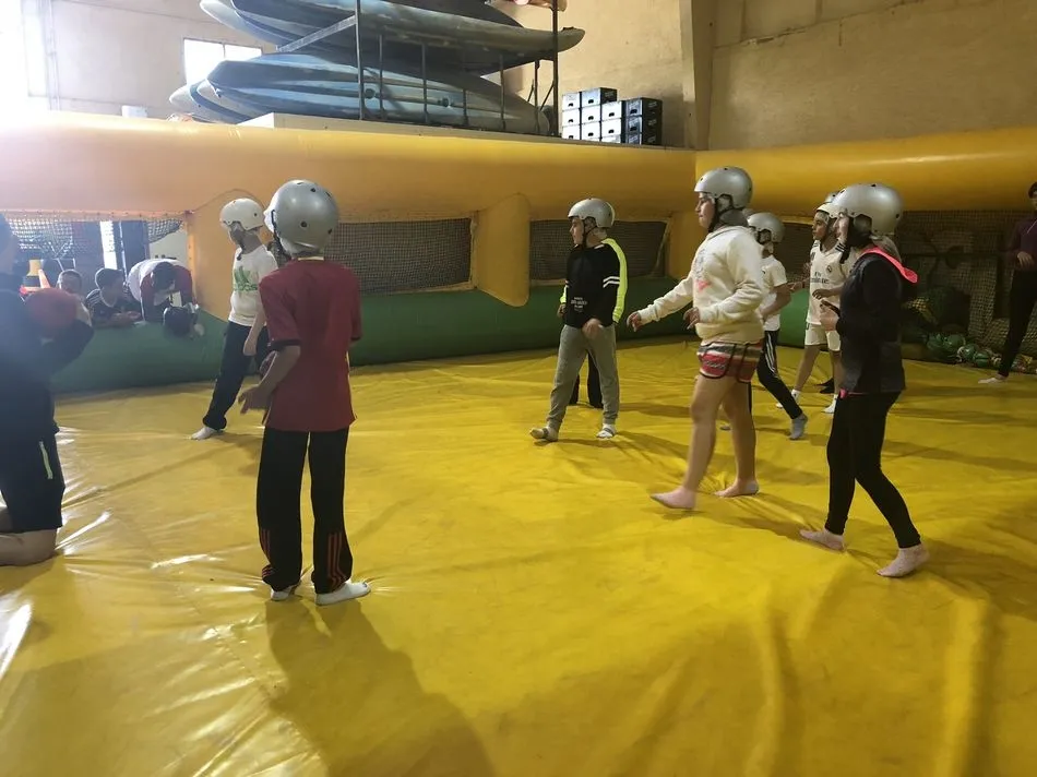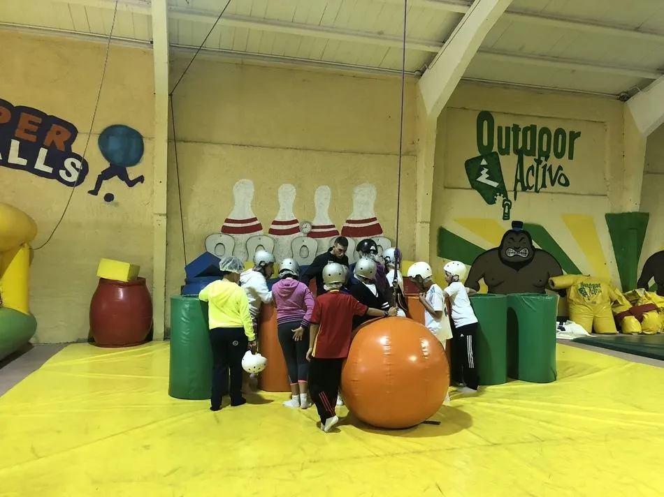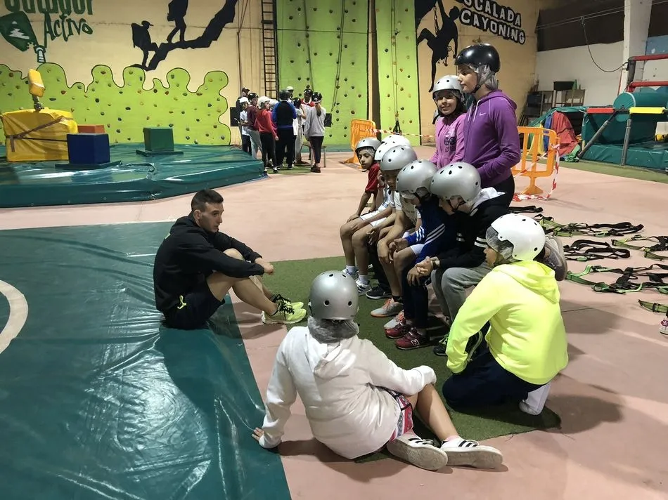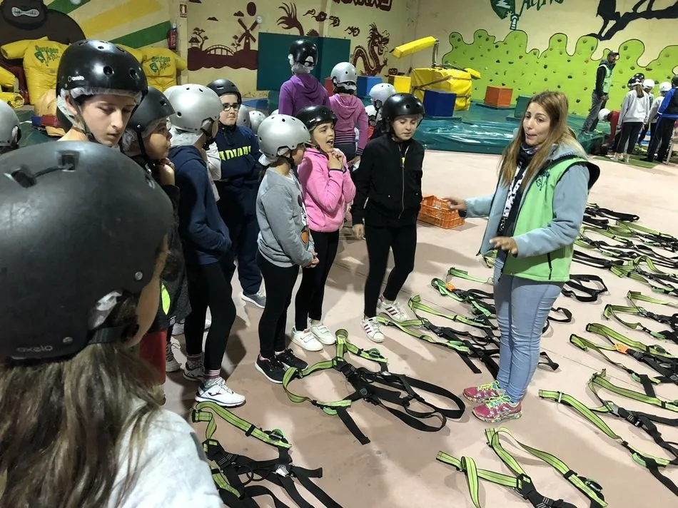 Los alumnos de 5º y 6º de Primaria se desplazaron a Huerta para disfrutar de un día de multiaventura. Los colegiados realizaron distintas pruebas y variedad de juegos como: tirolina, tiro con arco, futbolín hinchable, humor amarillo, rodillos, escalada en rocódromo, lucha en altura y bolos entre otras muchas. También estaban planificadas piraguas, pero no pudo llevarse a cabo por la fuerza con la que bajaba el río Tormes.