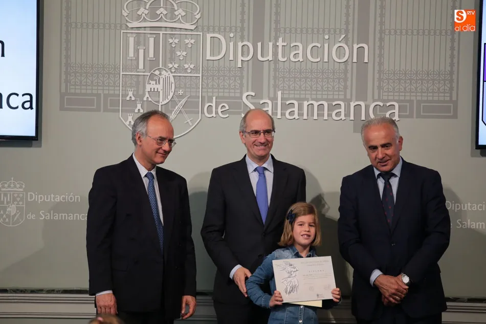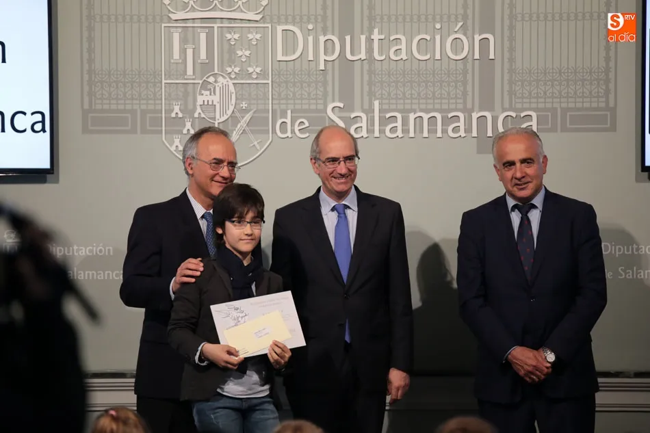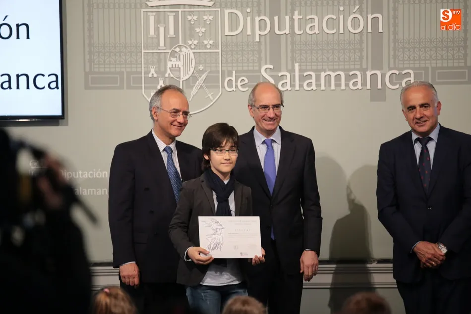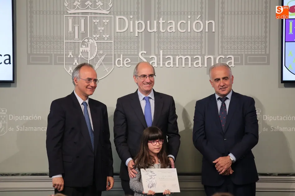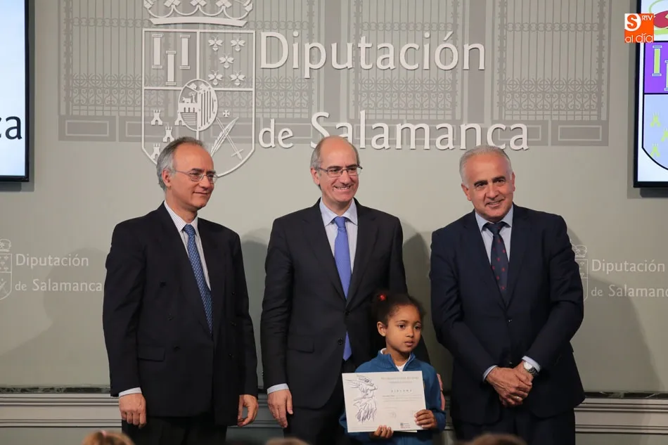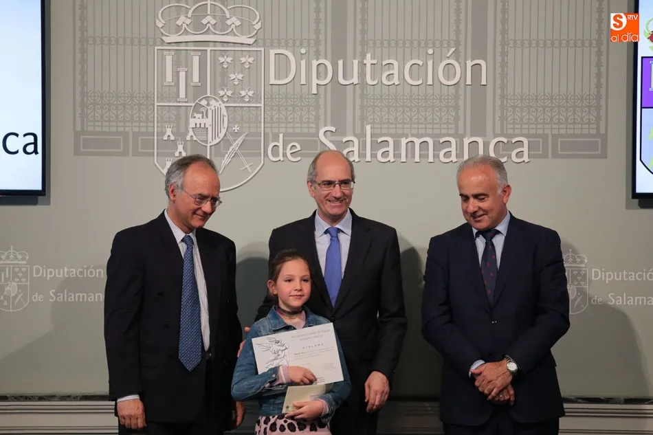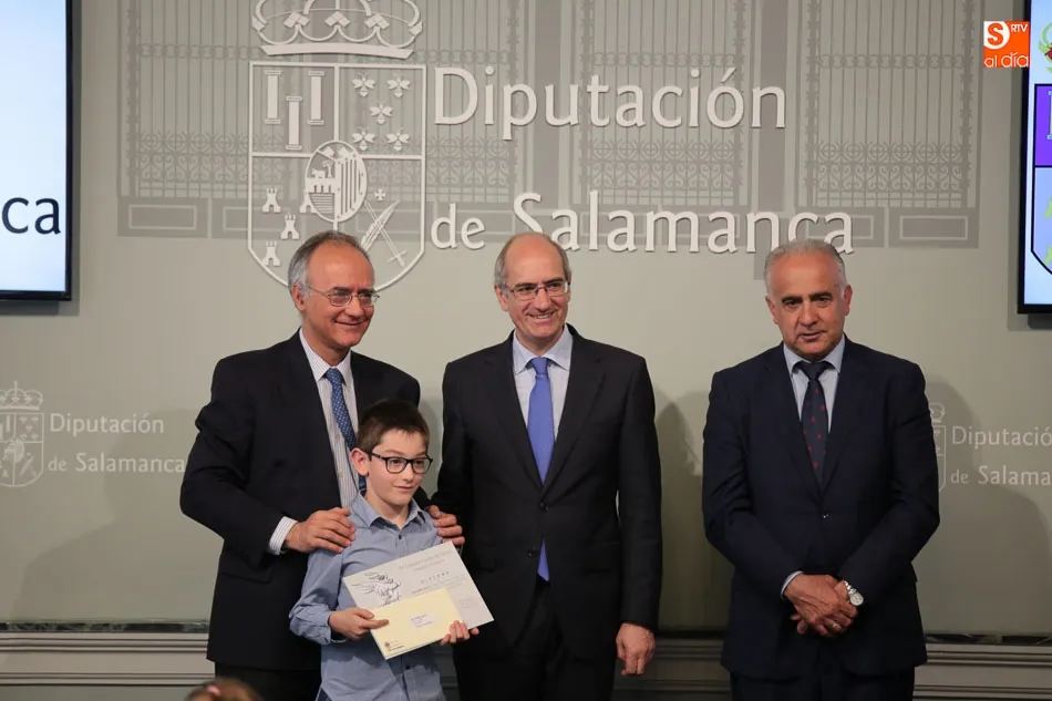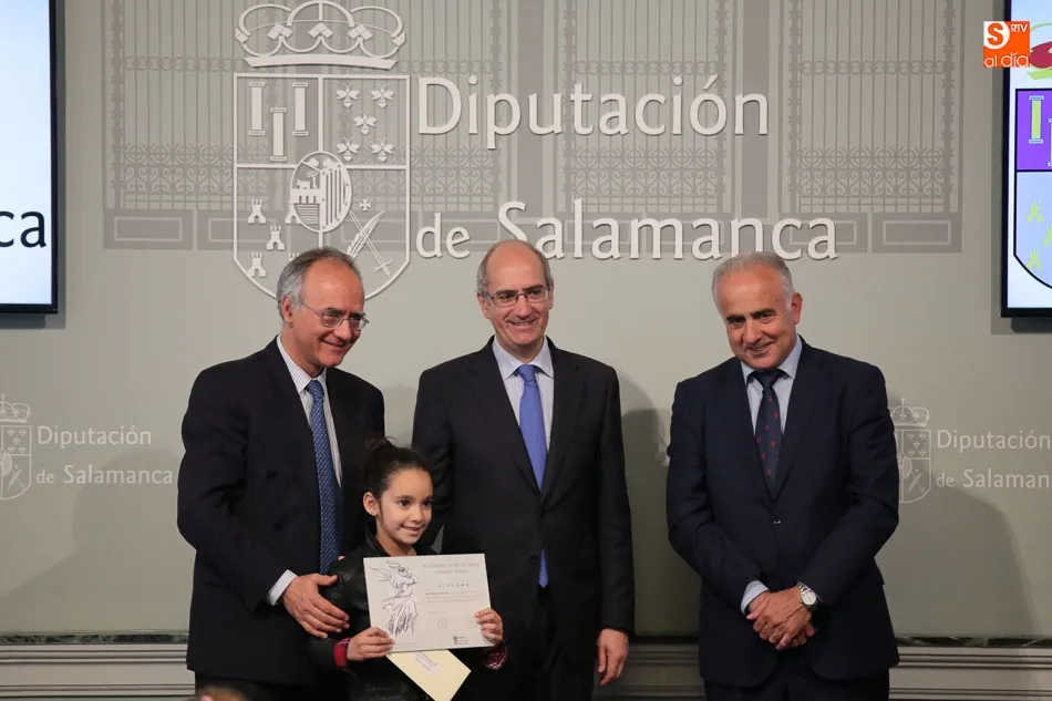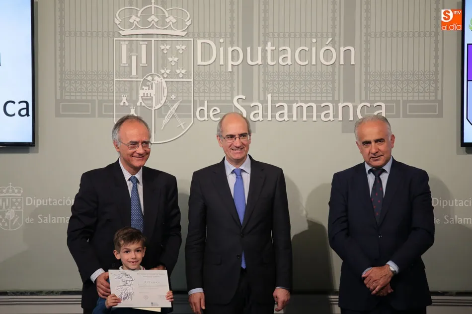 El presidente de la Diputación de Salamanca, Javier Iglesias, junto a Francisco Blanco, en representación de la Fundación Venancio Blanco, han entregado este martes, en el Patio de La Salina los premios del XVI Concurso de Dibujo Escolar ?Venancio Blanco?.