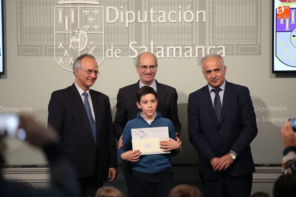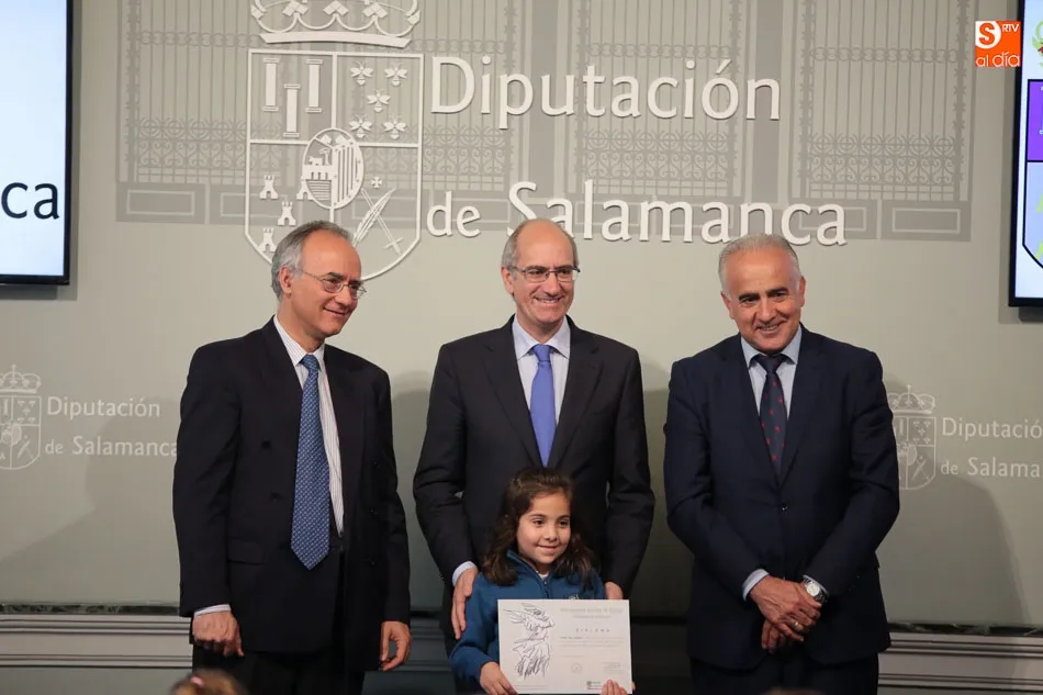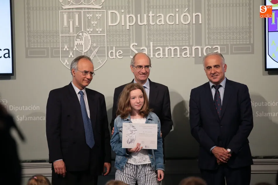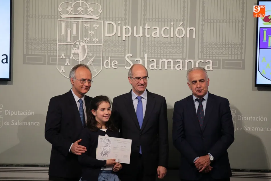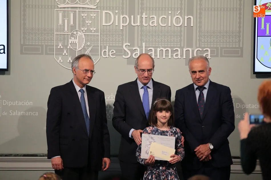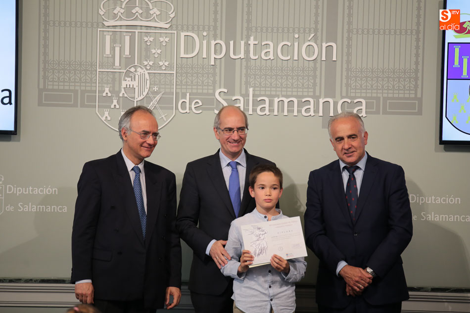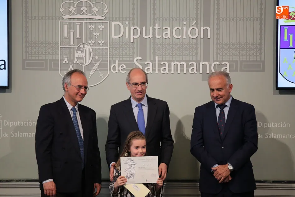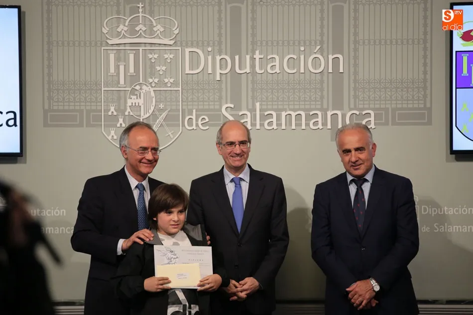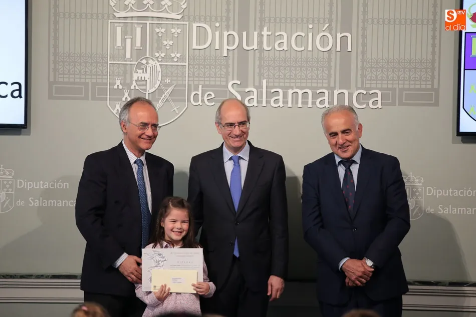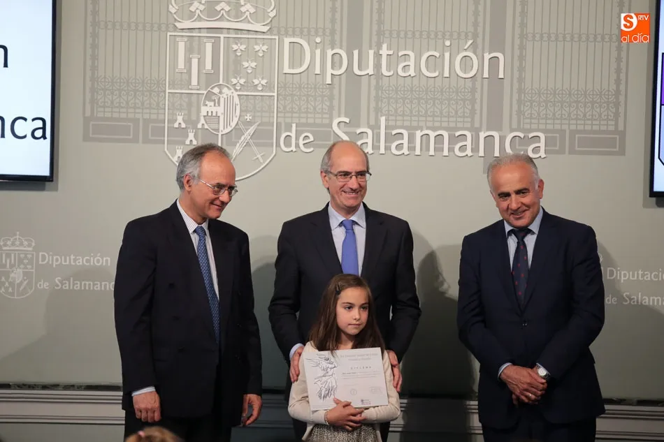 El presidente de la Diputación de Salamanca, Javier Iglesias, junto a Francisco Blanco, en representación de la Fundación Venancio Blanco, han entregado este martes, en el Patio de La Salina los premios del XVI Concurso de Dibujo Escolar ?Venancio Blanco?.