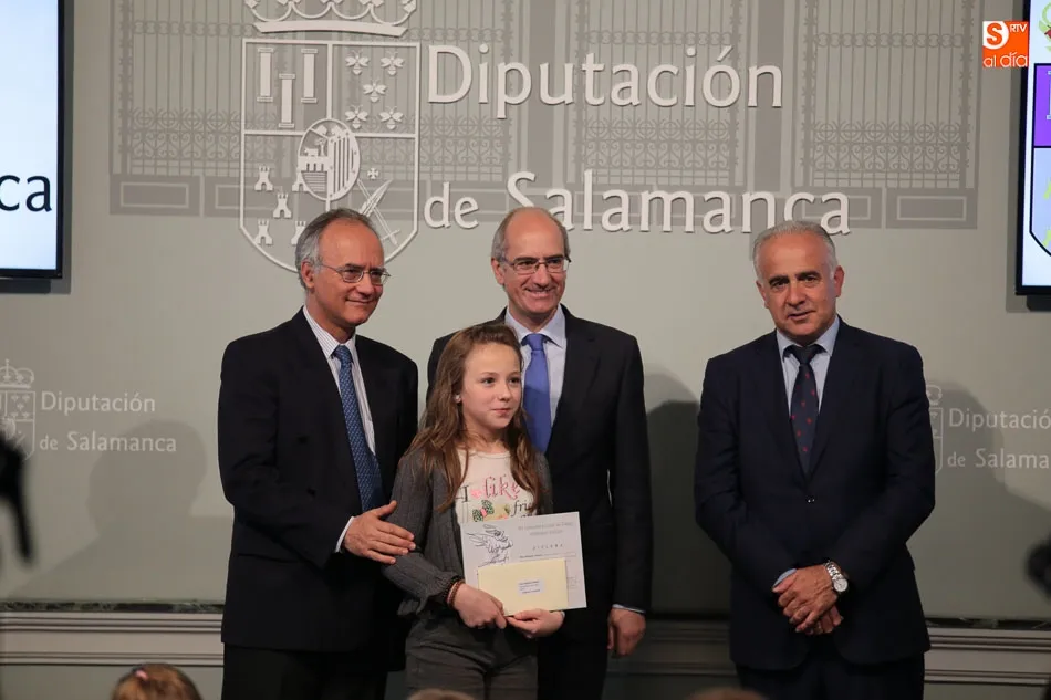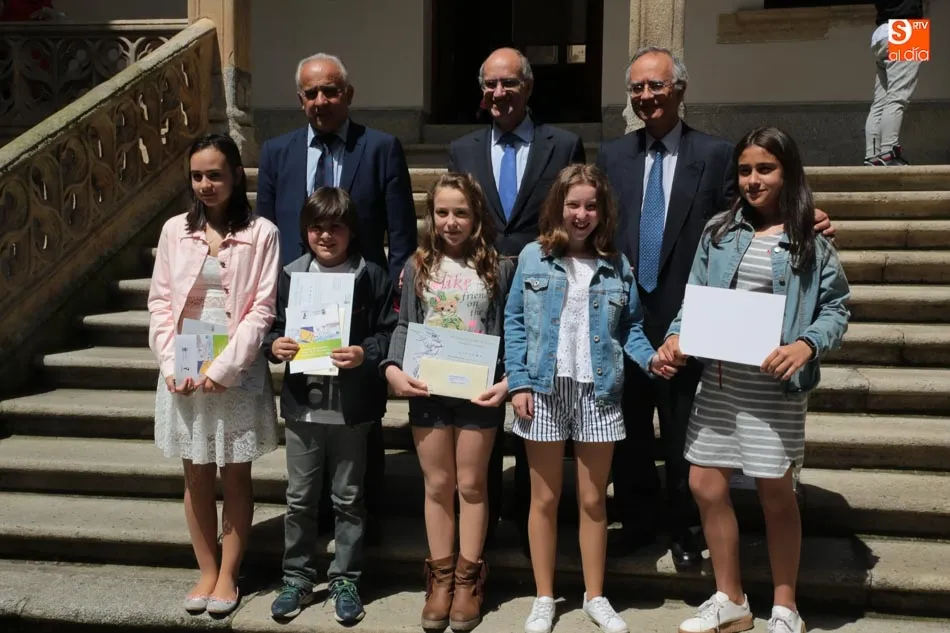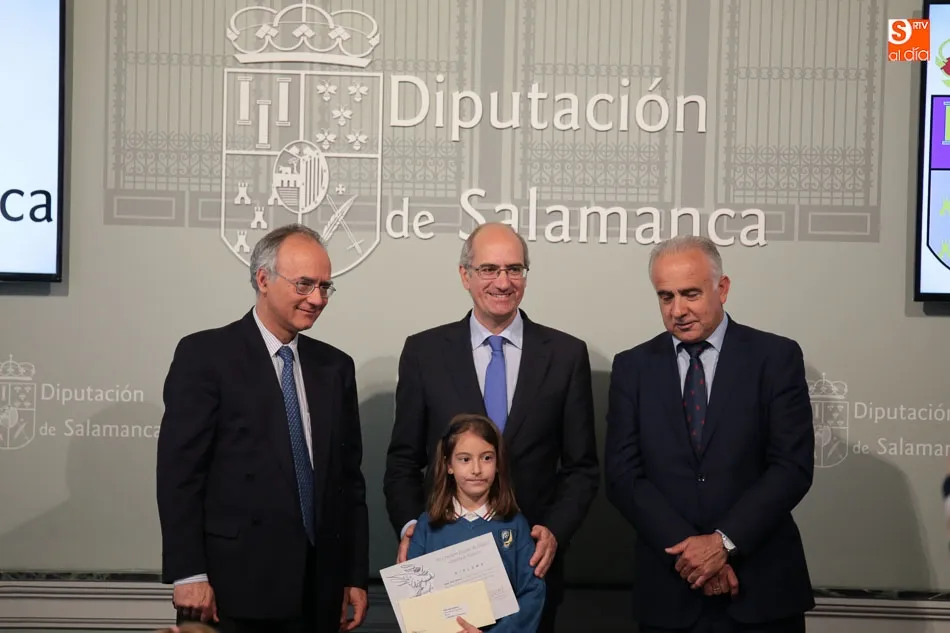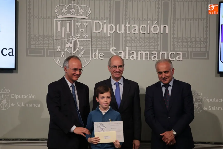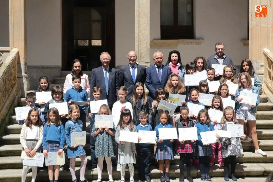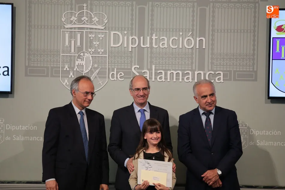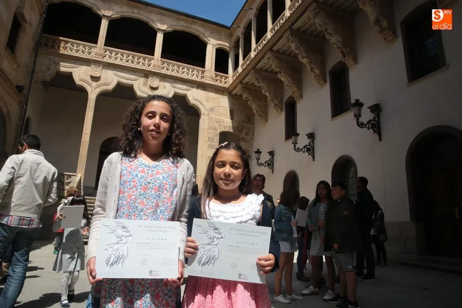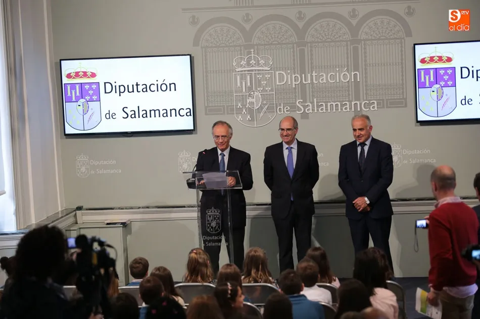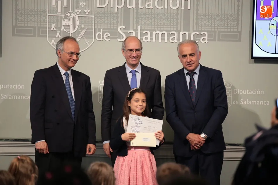 El presidente de la Diputación de Salamanca, Javier Iglesias, junto a Francisco Blanco, en representación de la Fundación Venancio Blanco, han entregado este martes, en el Patio de La Salina los premios del XVI Concurso de Dibujo Escolar ?Venancio Blanco?.