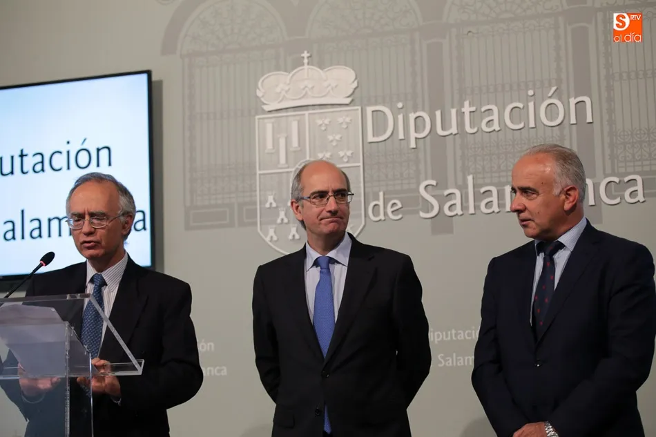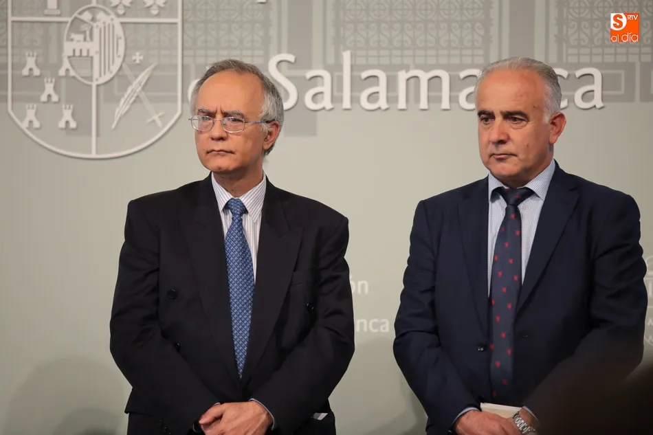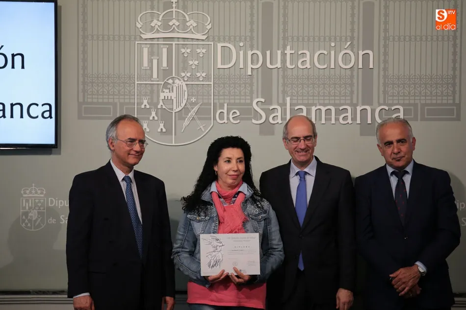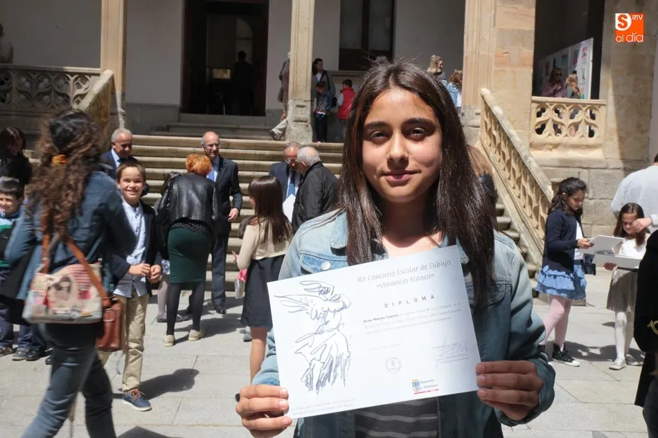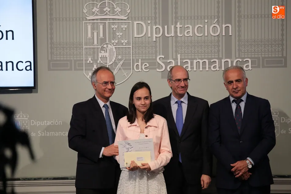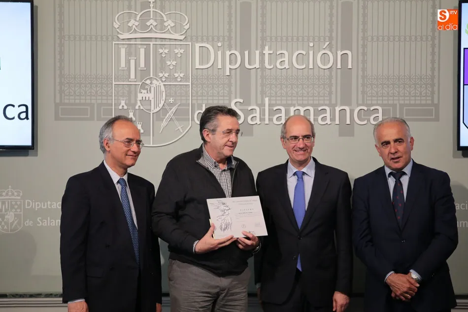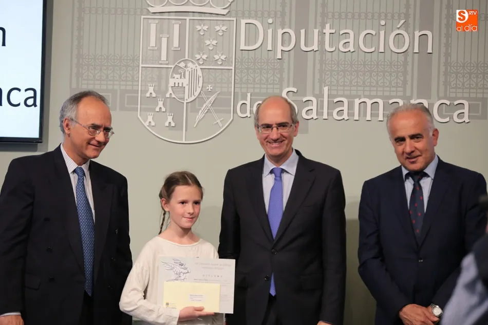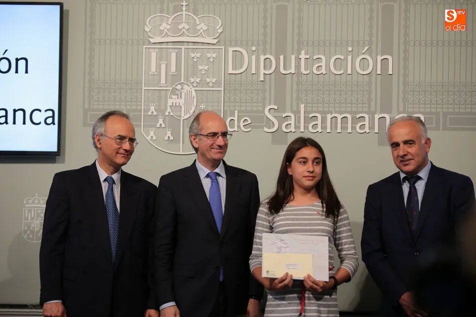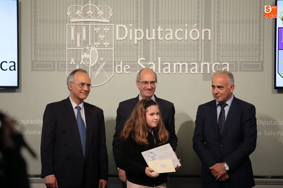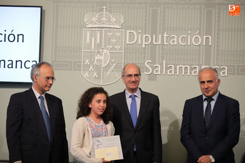 El presidente de la Diputación de Salamanca, Javier Iglesias, junto a Francisco Blanco, en representación de la Fundación Venancio Blanco, han entregado este martes, en el Patio de La Salina los premios del XVI Concurso de Dibujo Escolar ?Venancio Blanco?.