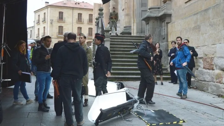 Junto al edificio histórico de la UPSA, en la calle Compañía, se ha grabado alguna escena de esta producción ambientada en la España de 1936