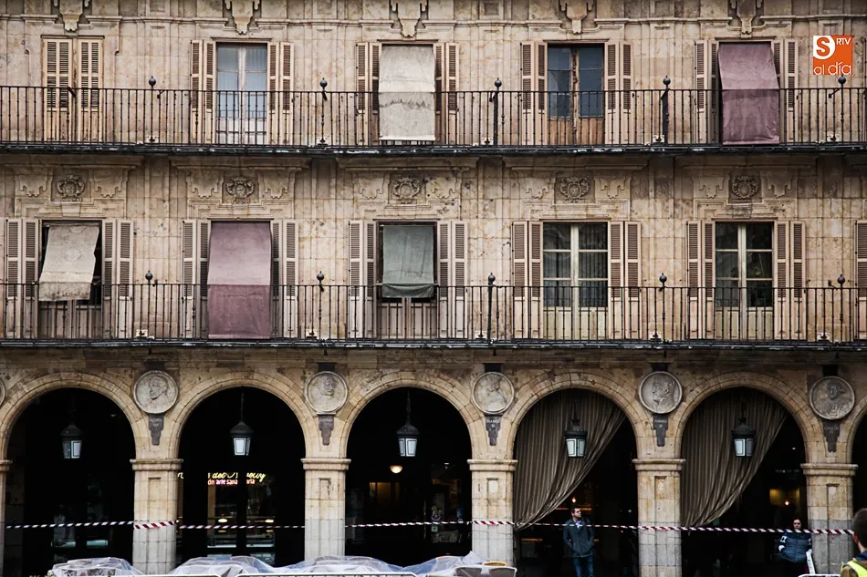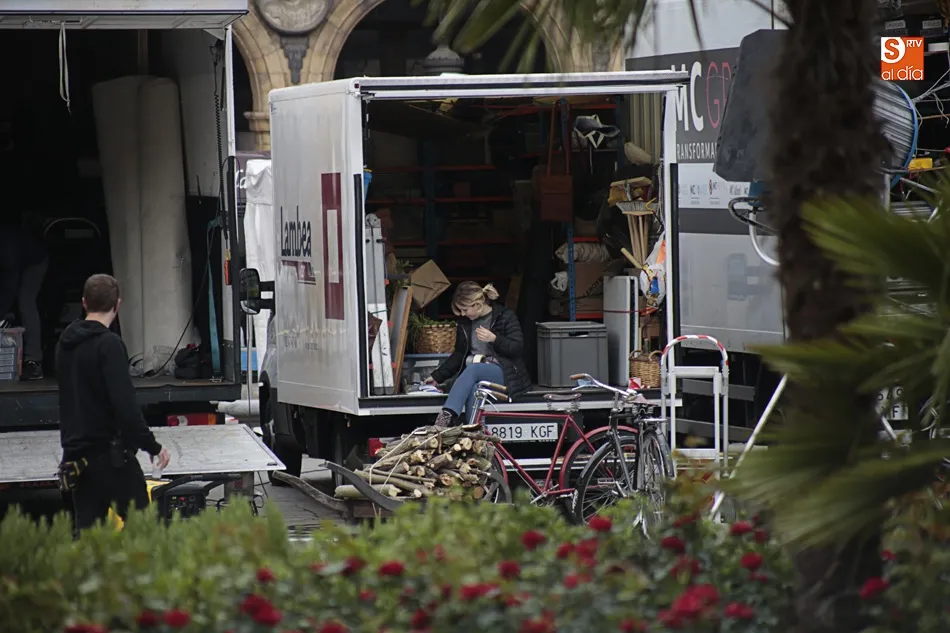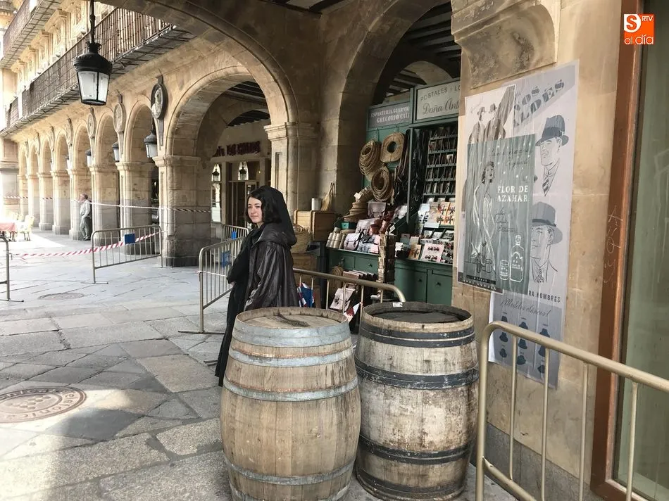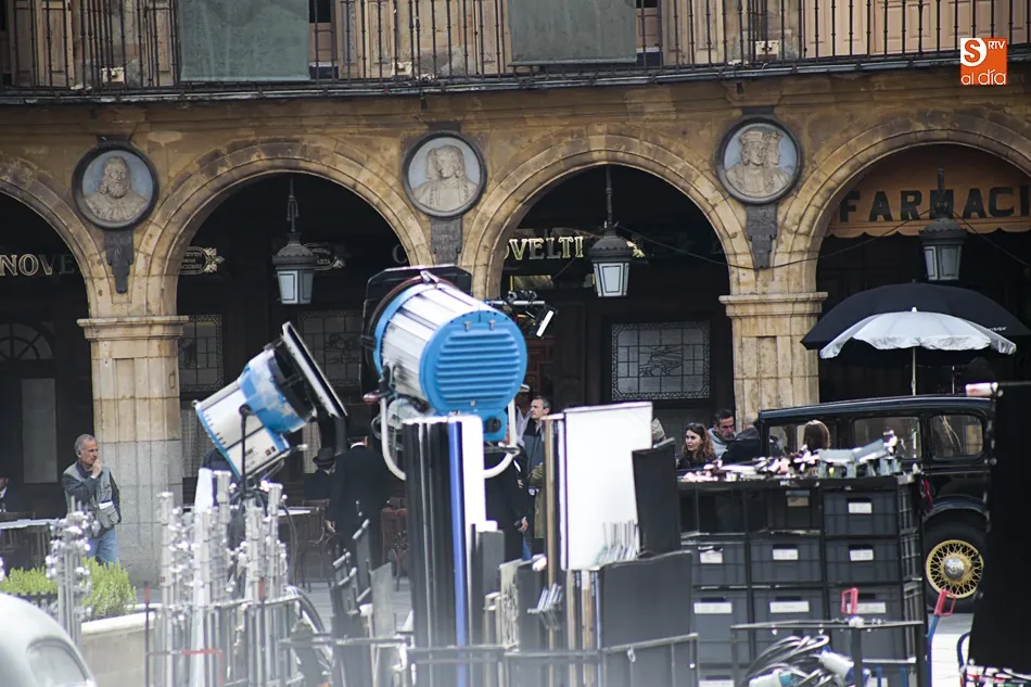 La estética de la Plaza Mayor se ha adecuado a la década de los años 30 del siglo pasado. Estas intervenciones han consistido, entre otras, en la recreación de un local de la época y en la instalación de un parterre que simula parte de los jardines que existían en la Plaza Mayor en el tiempo histórico en el que se ambienta el filme.