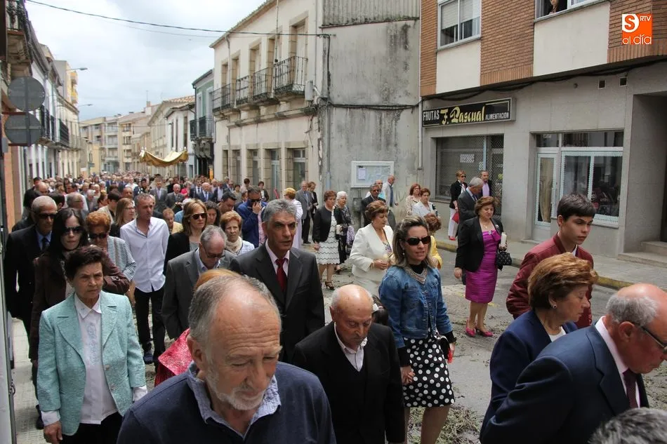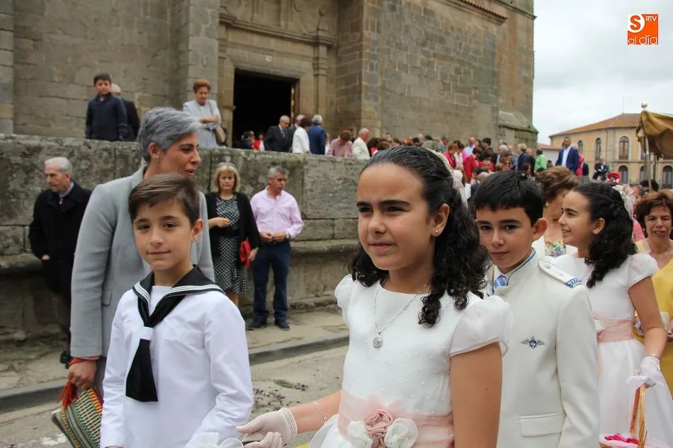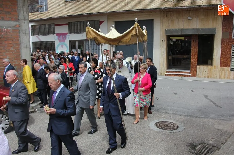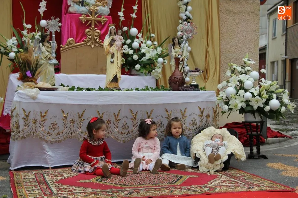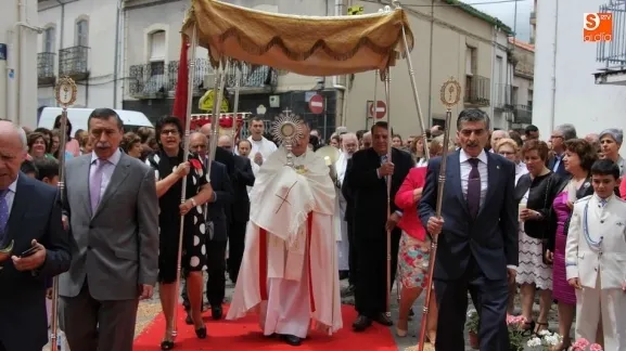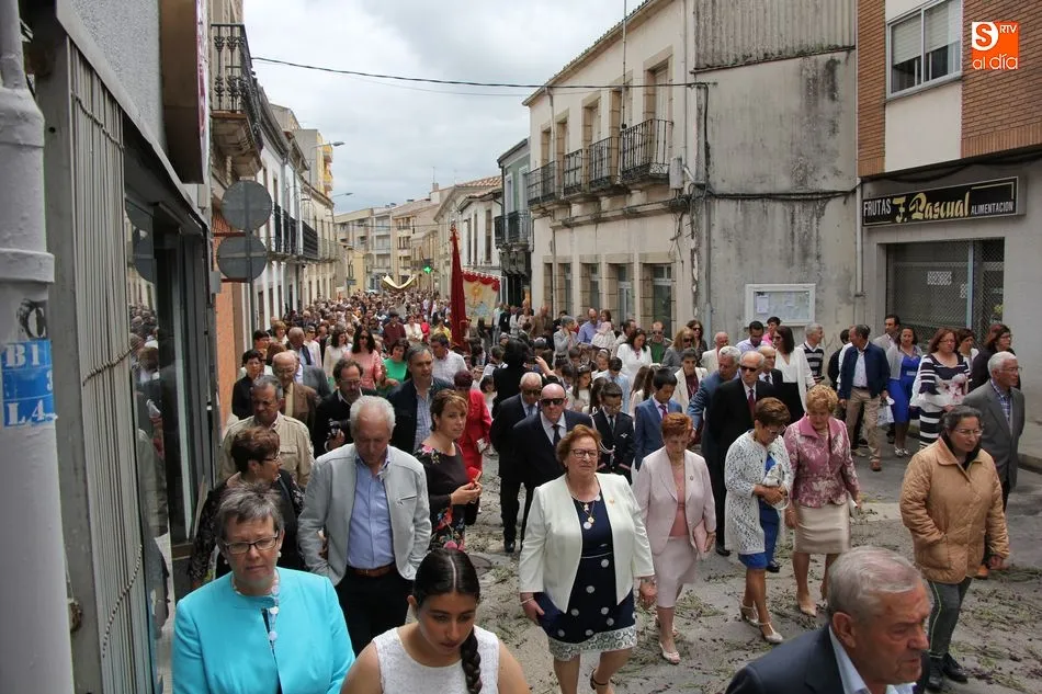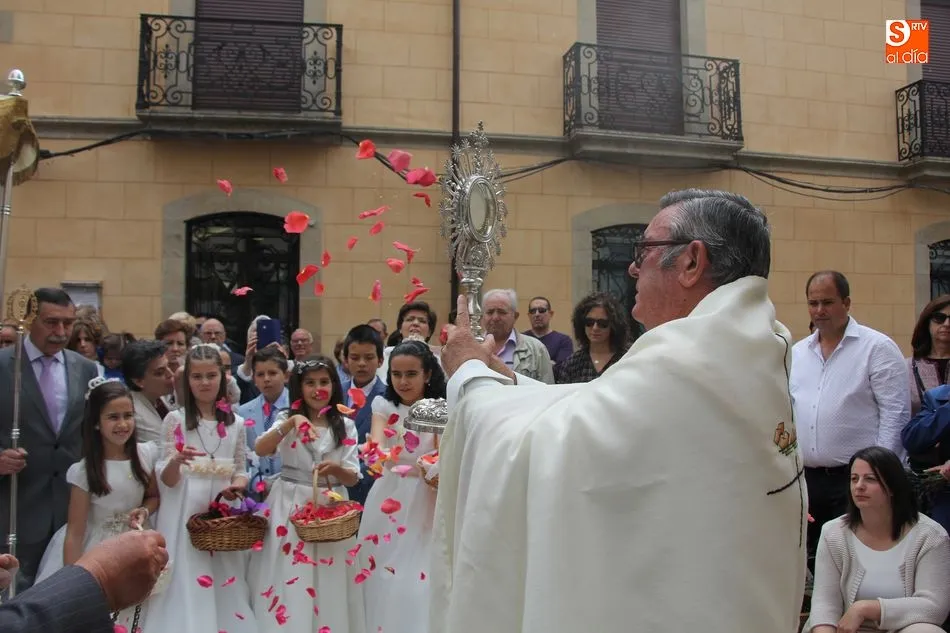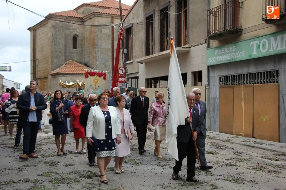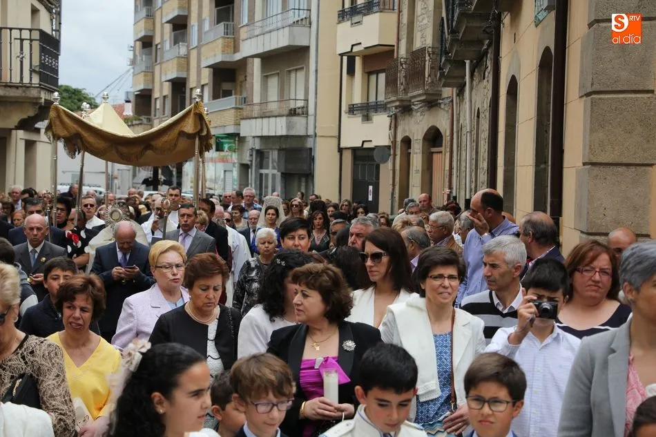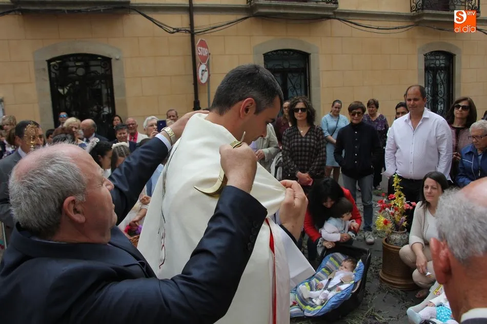 Después de la Eucaristía, en la que intervinieron varios sacerdotes, entre ellos los naturales de esta villa, Juan José Calles y Daniel Sevillano, además de Jesús Florencio González, Bernabé Marcos y los párrocos de Vitigudino Francisco Fraile y José Antonio Andújar, los cofrades salían del templo guiando el palio y la Custodia del Santísimo para dirigirse por la calle San Roque con dirección a Cuatro Calles, lugar donde les aguardaba el primero de los altares con cuatro niños, y después continuar la procesión por la calle del Centro Cultural para llegar al chaflán de la calle Pedro Velasco, lugar donde se encontraba instalado el altar realizado por la Cofradía Sacramental ?Villa de Vitigudino?, y en el que esperaban tres bebés para recibir la bendición sacerdotal.