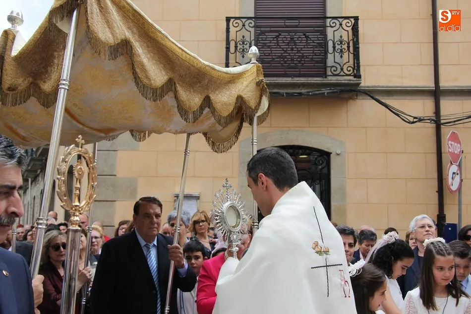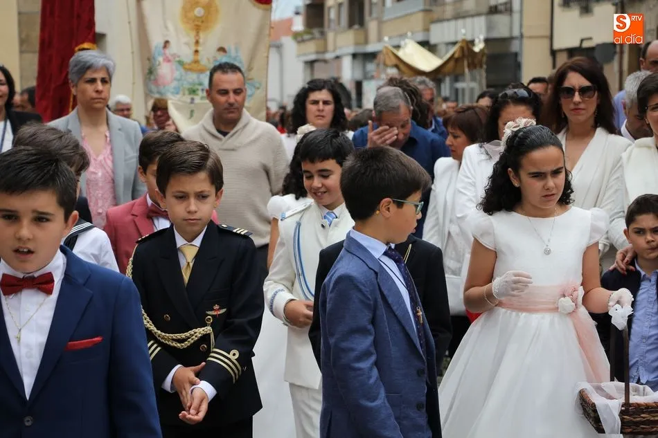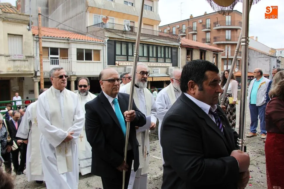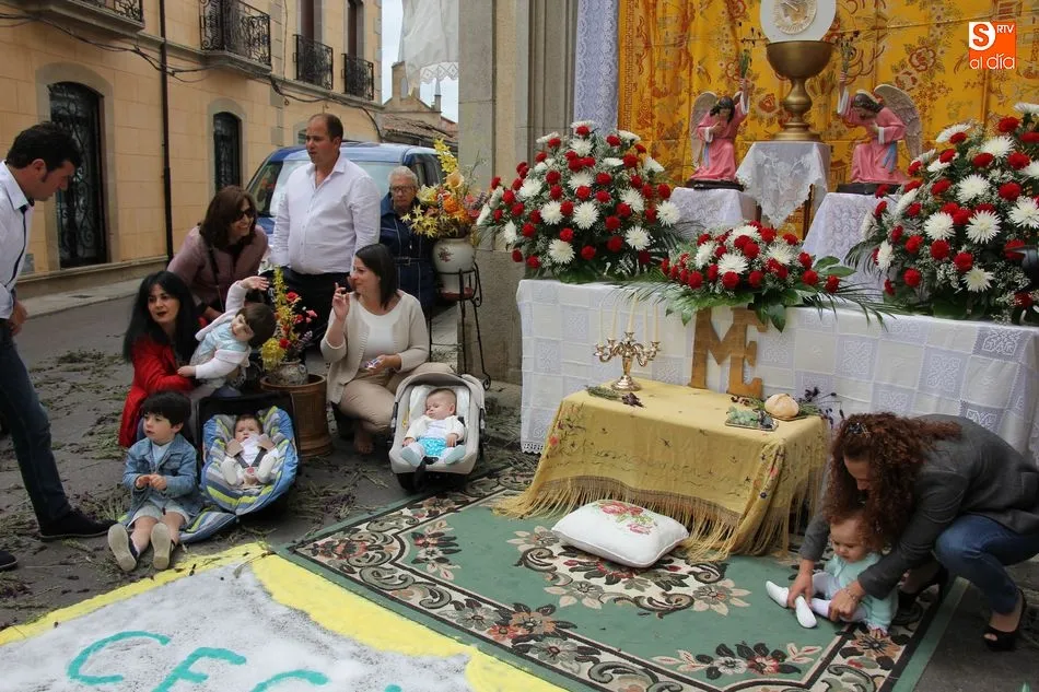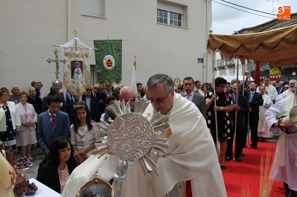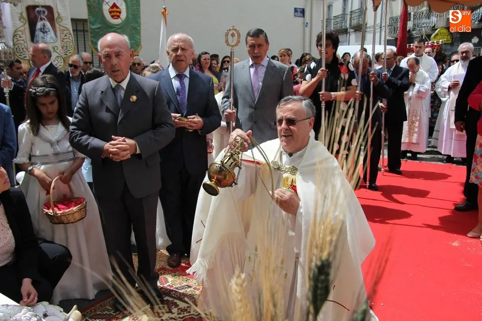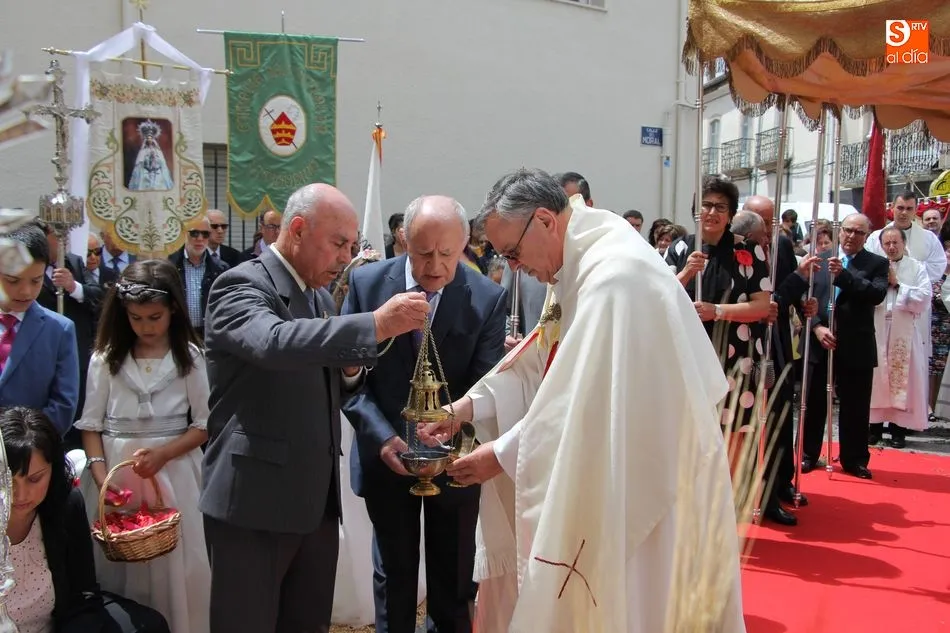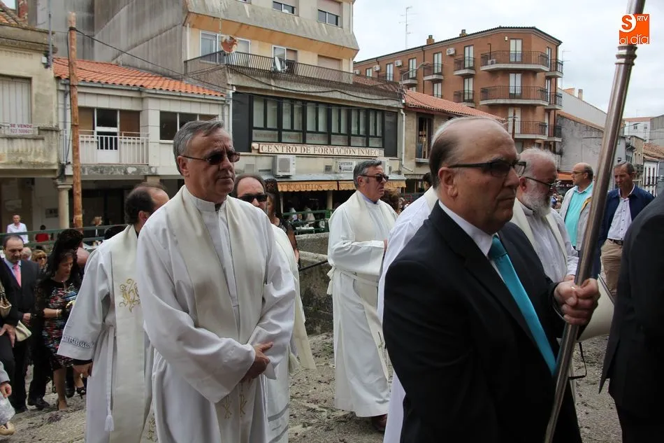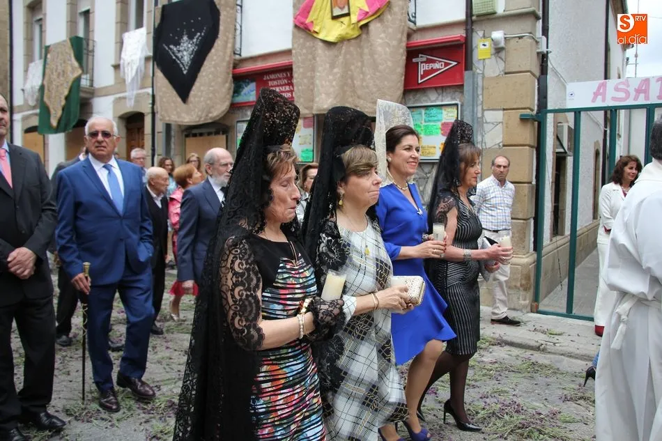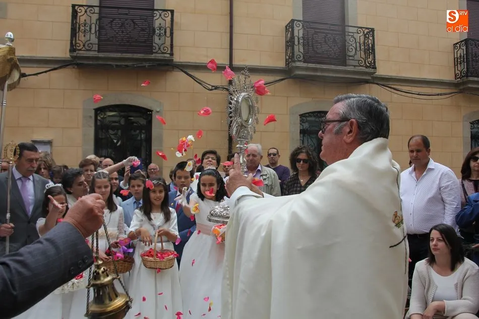 Después de la Eucaristía, en la que intervinieron varios sacerdotes, entre ellos los naturales de esta villa, Juan José Calles y Daniel Sevillano, además de Jesús Florencio González, Bernabé Marcos y los párrocos de Vitigudino Francisco Fraile y José Antonio Andújar, los cofrades salían del templo guiando el palio y la Custodia del Santísimo para dirigirse por la calle San Roque con dirección a Cuatro Calles, lugar donde les aguardaba el primero de los altares con cuatro niños, y después continuar la procesión por la calle del Centro Cultural para llegar al chaflán de la calle Pedro Velasco, lugar donde se encontraba instalado el altar realizado por la Cofradía Sacramental ?Villa de Vitigudino?, y en el que esperaban tres bebés para recibir la bendición sacerdotal.