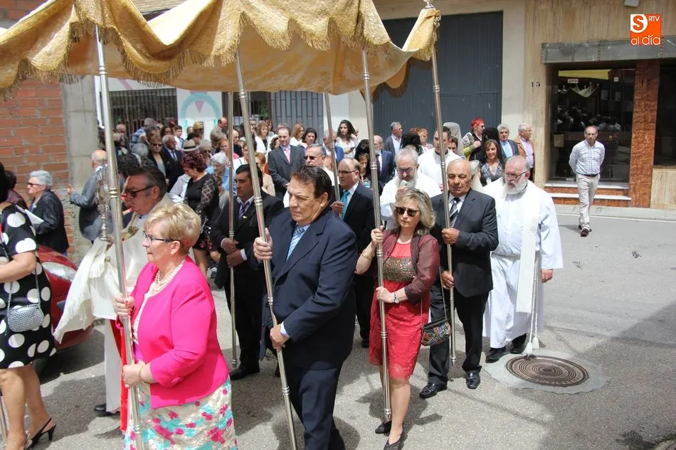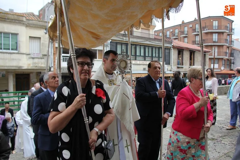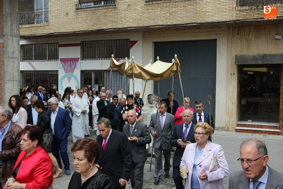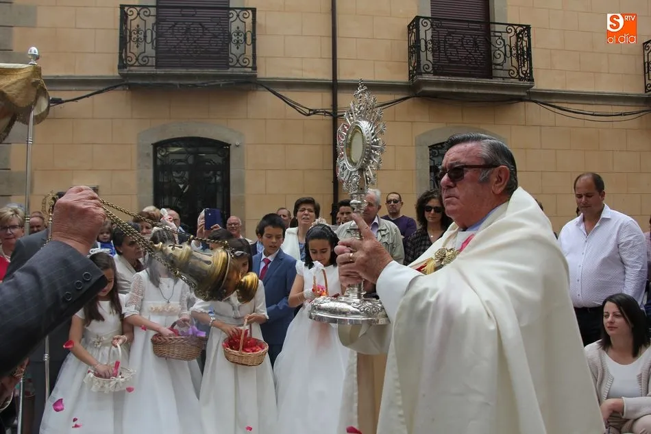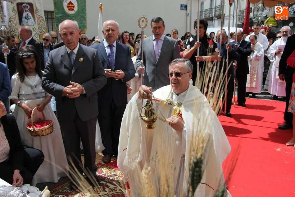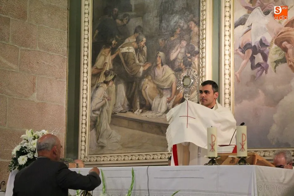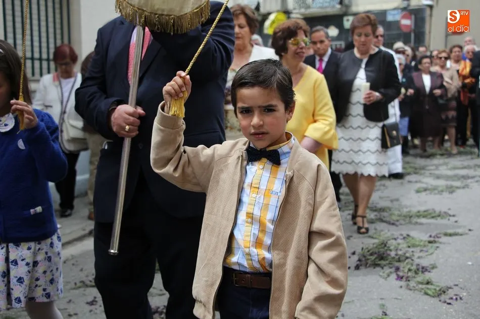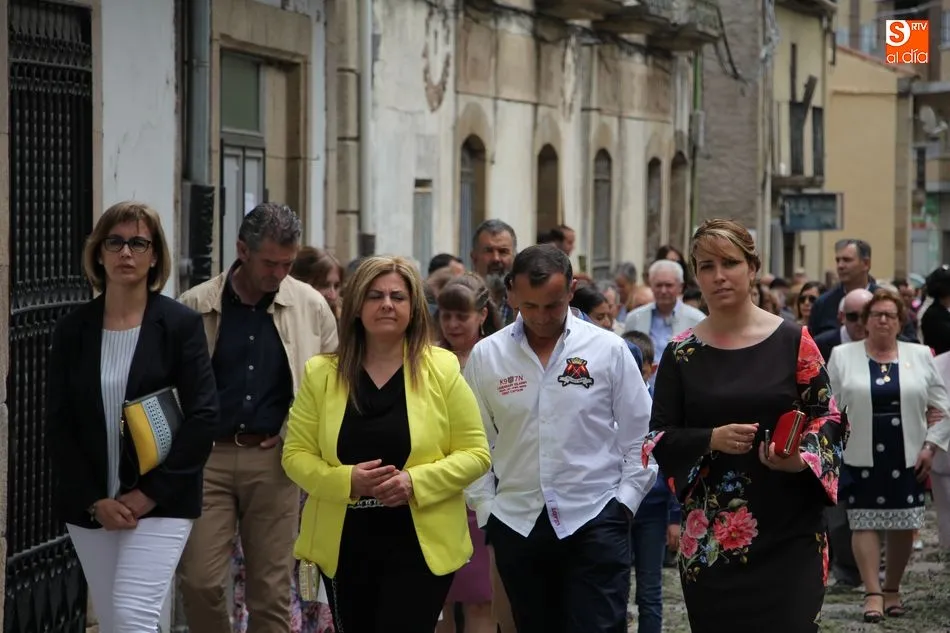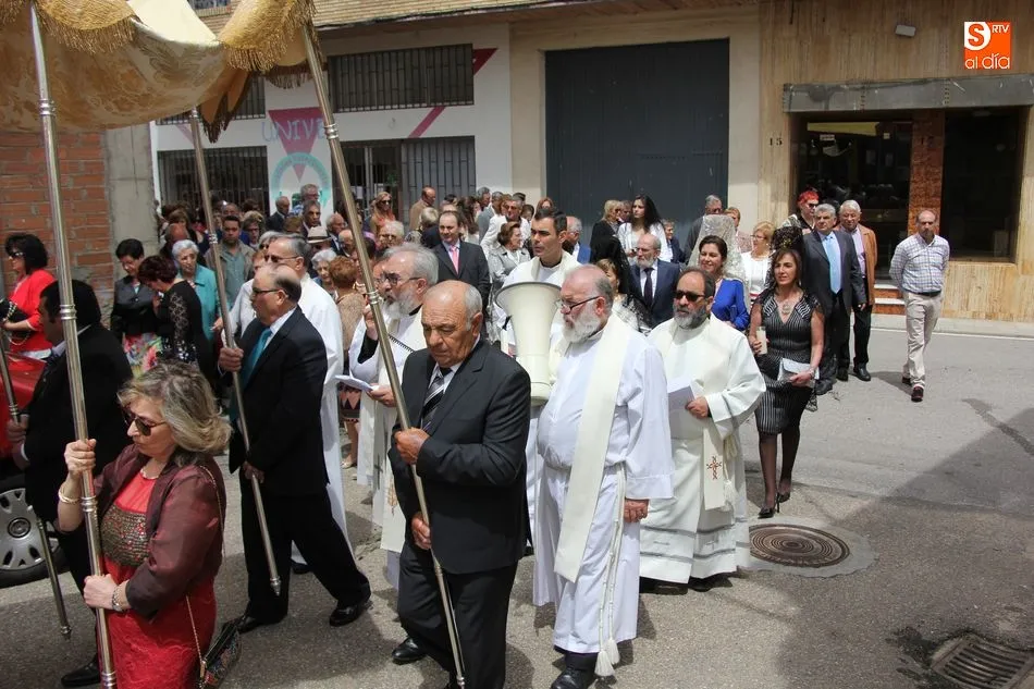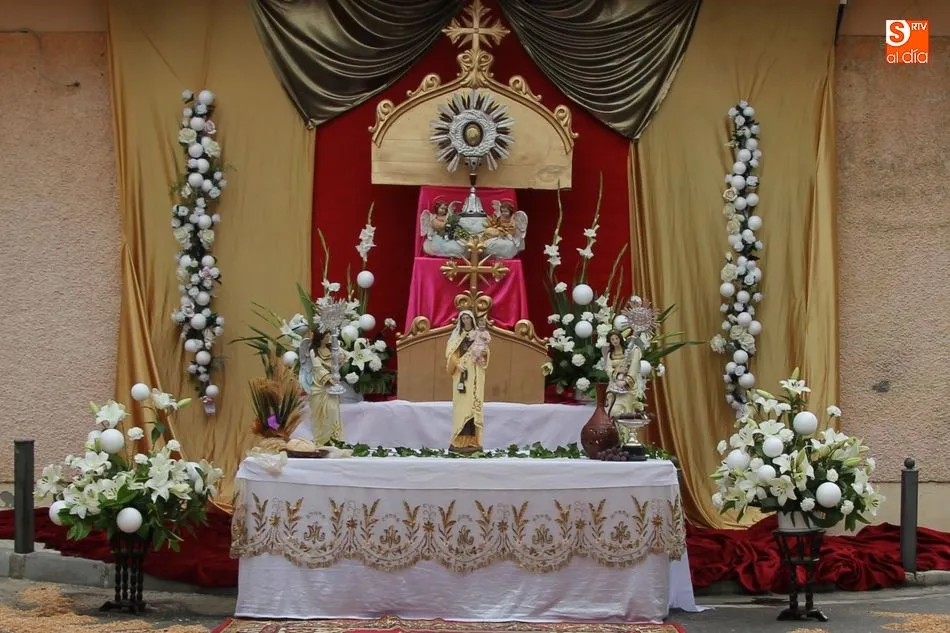 Después de la Eucaristía, en la que intervinieron varios sacerdotes, entre ellos los naturales de esta villa, Juan José Calles y Daniel Sevillano, además de Jesús Florencio González, Bernabé Marcos y los párrocos de Vitigudino Francisco Fraile y José Antonio Andújar, los cofrades salían del templo guiando el palio y la Custodia del Santísimo para dirigirse por la calle San Roque con dirección a Cuatro Calles, lugar donde les aguardaba el primero de los altares con cuatro niños, y después continuar la procesión por la calle del Centro Cultural para llegar al chaflán de la calle Pedro Velasco, lugar donde se encontraba instalado el altar realizado por la Cofradía Sacramental ?Villa de Vitigudino?, y en el que esperaban tres bebés para recibir la bendición sacerdotal.